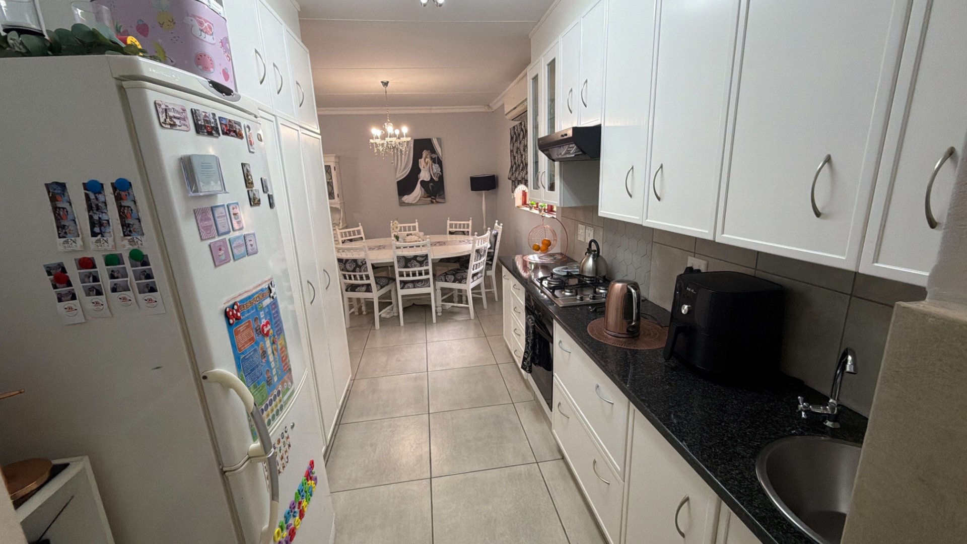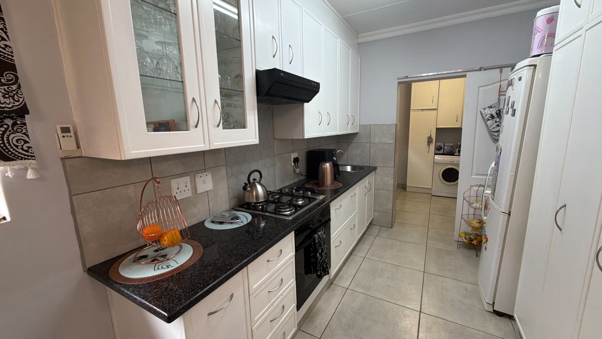 - Functional and modern white kitchen with separate scullery.