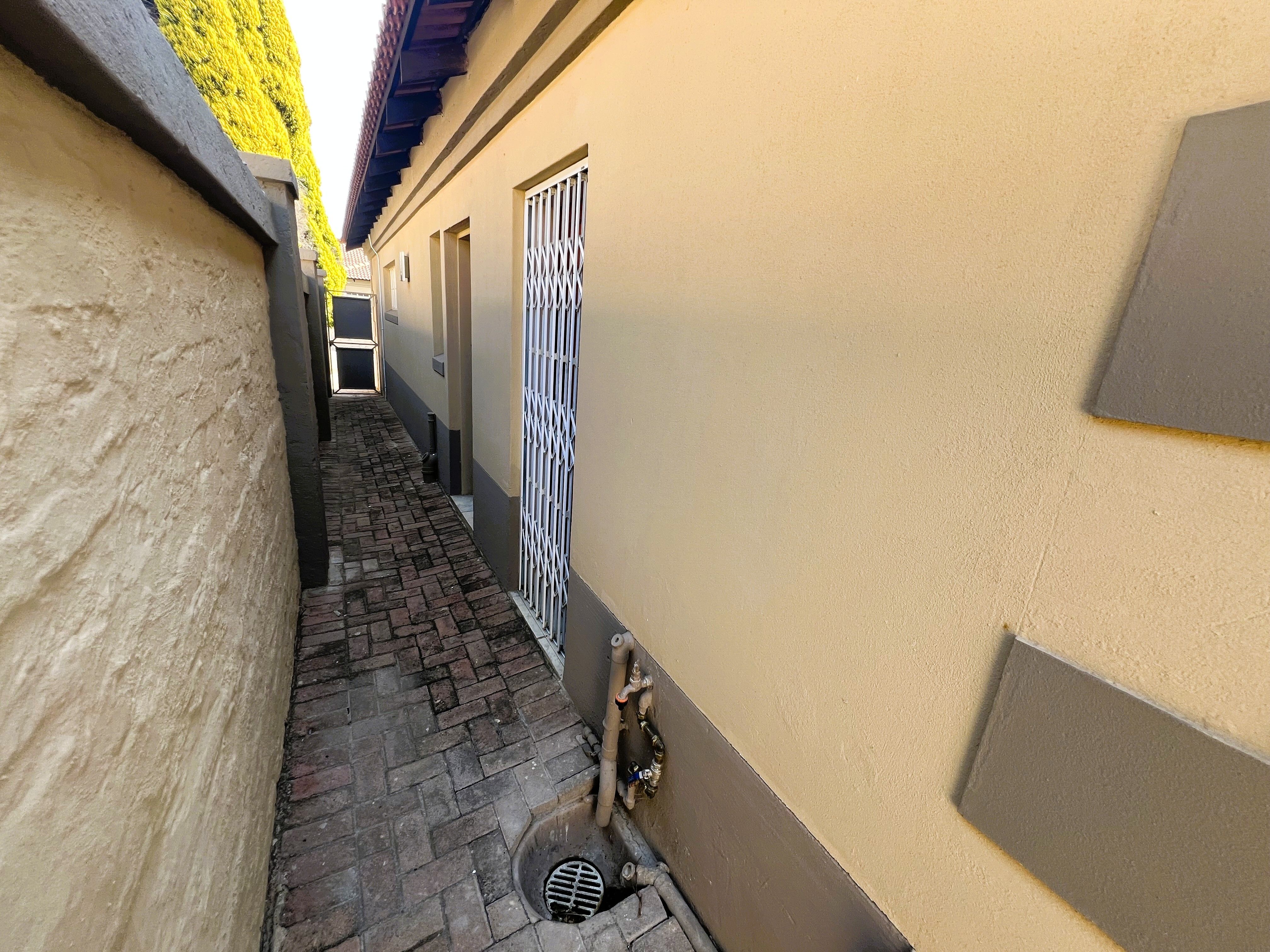 This townhouse also boasts essential modern conveniences, including air conditioning for year-round comfort, burglar bars for added security, and a domestic bathroom to cater to all your needs. The property features a double garage and paved driveway, ensuring ample parking and easy access. There are also damp vents installed to ensure no moisture creeps up underneath the paint, keeping your home beautiful for years to come!