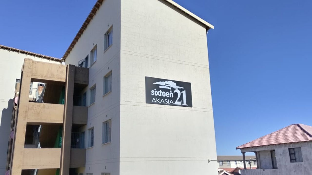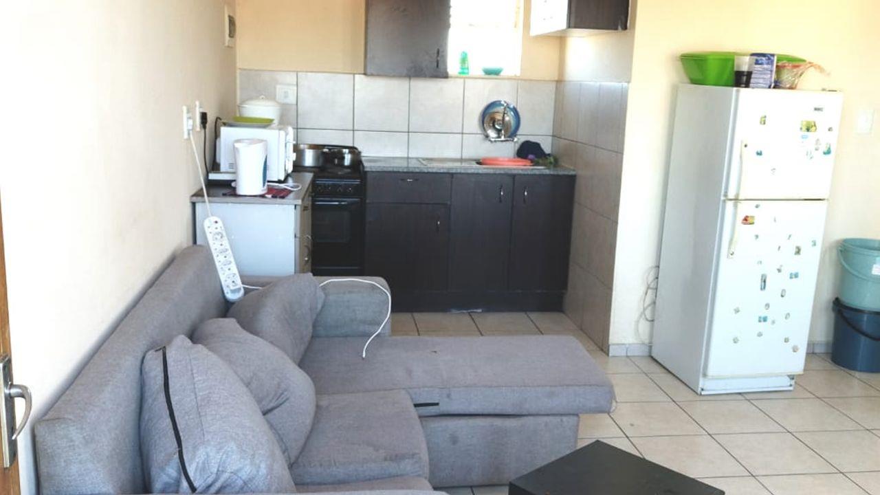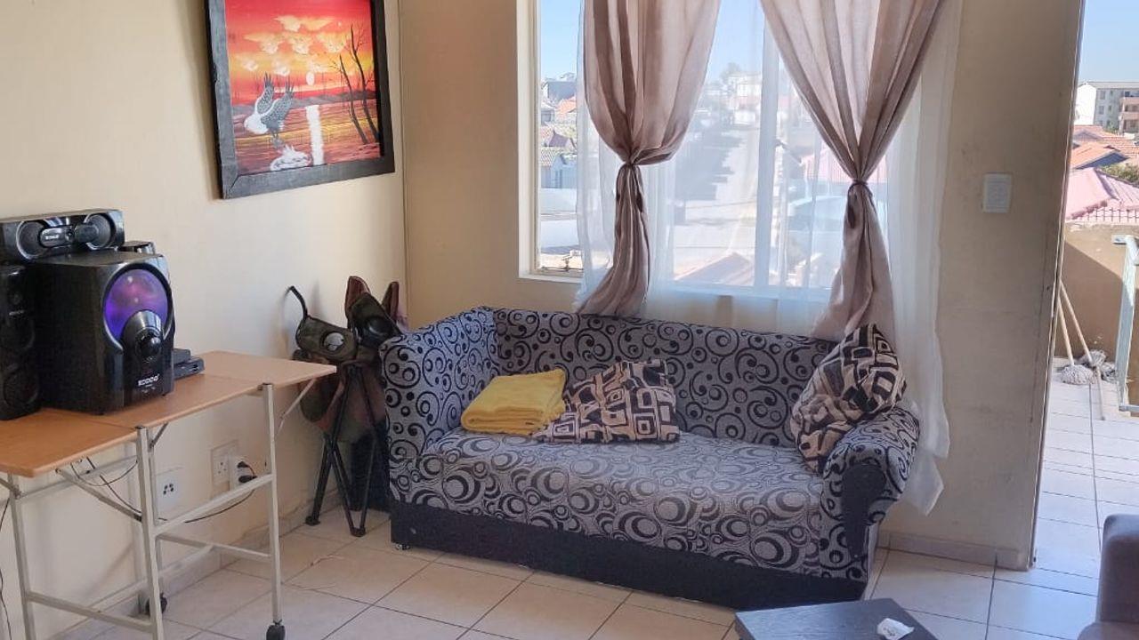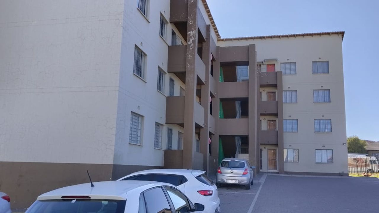 This lovely apartment in Fleurhof features an open-plan lounge and kitchen, both with tiled floors, creating a seamless and modern living space.