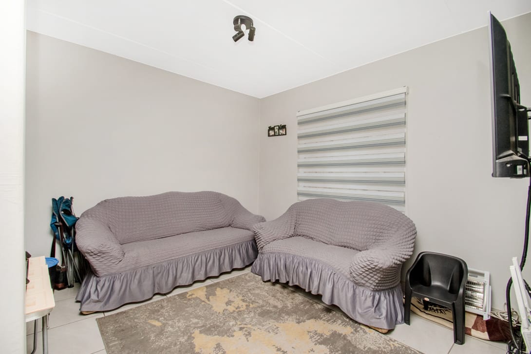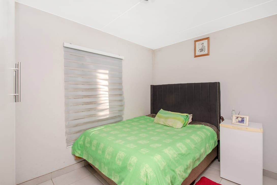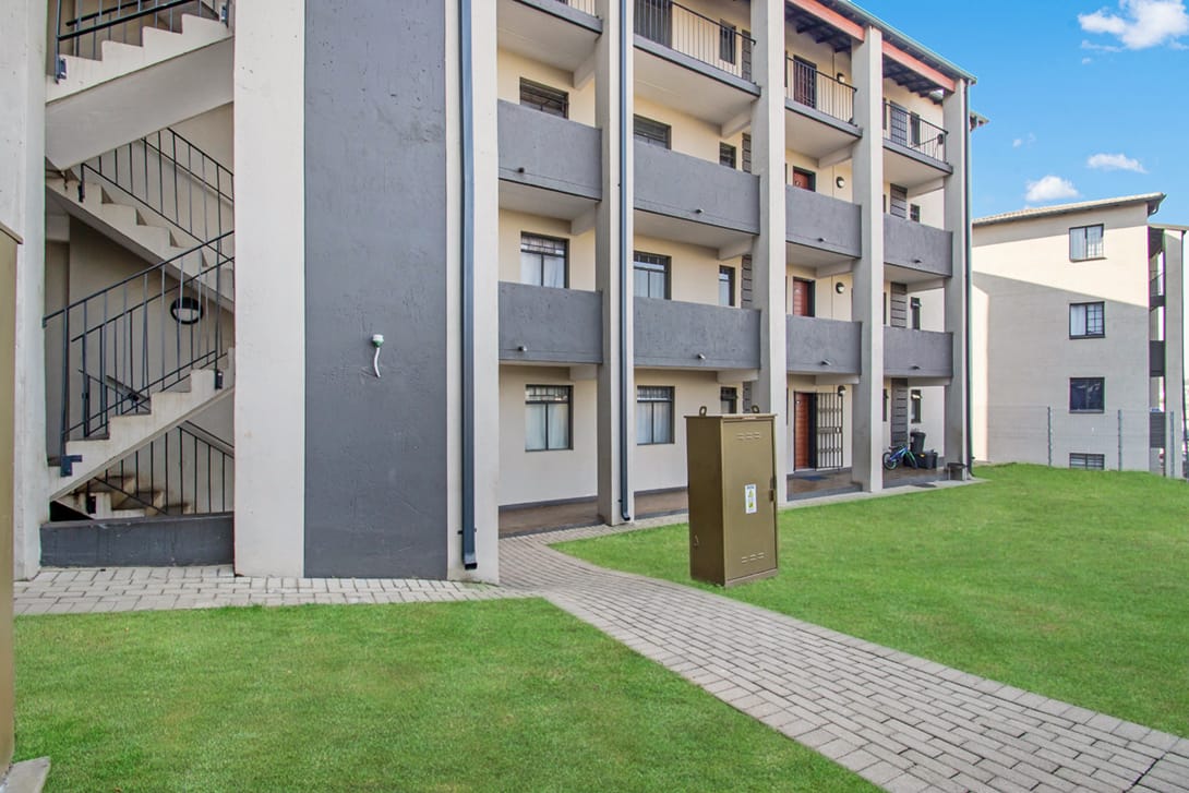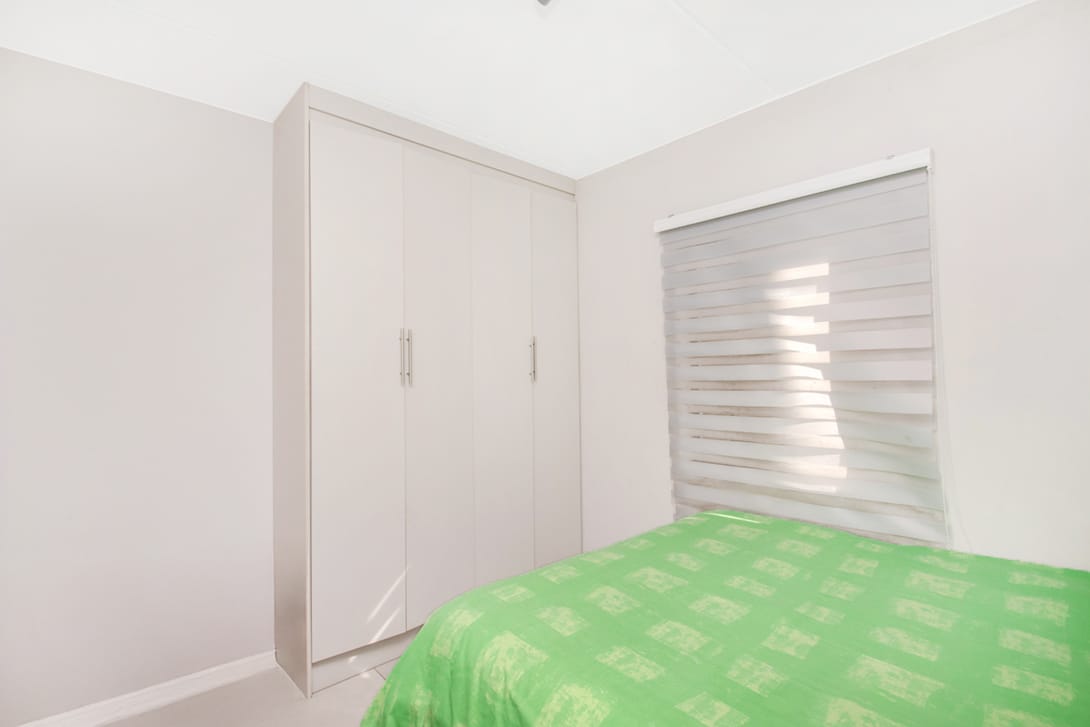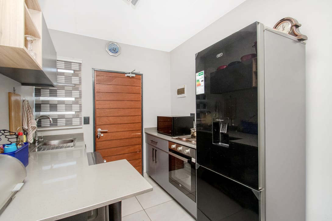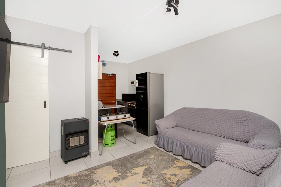 The home features an open-plan lounge and a sleek, modern kitchen with stylish porcelain tiles throughout the living area. There are two well-sized bedrooms with tiled floors, and the main bedroom includes built-in cupboards. The bathroom has been tastefully renovated with quality finishes. The unit includes one covered parking bay and one open parking space. Ideal for first-time buyers, small families, or investors seeking a secure, lock-up-and-go property.