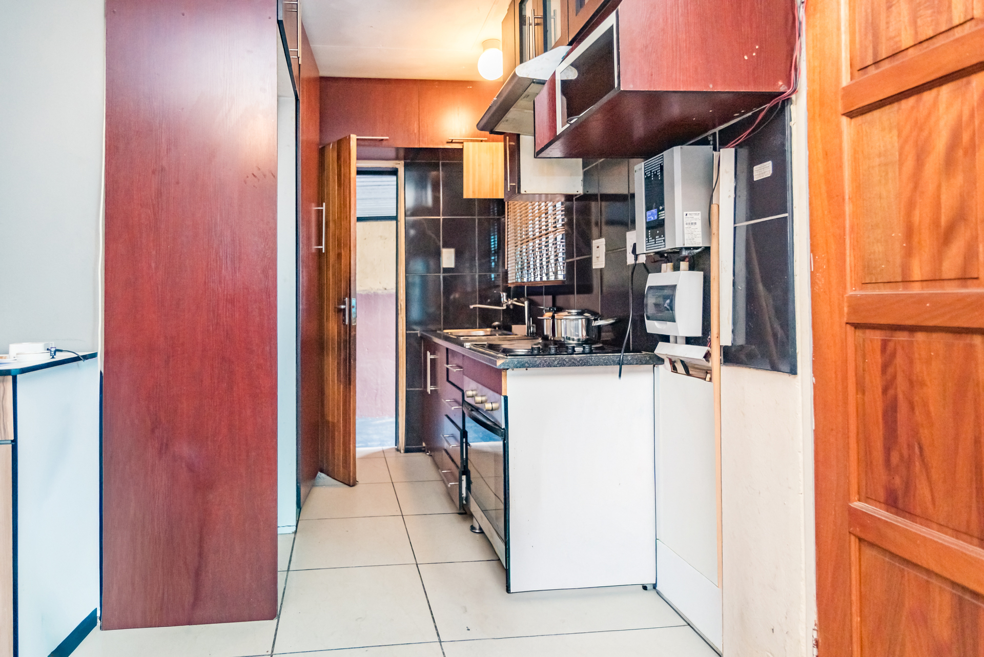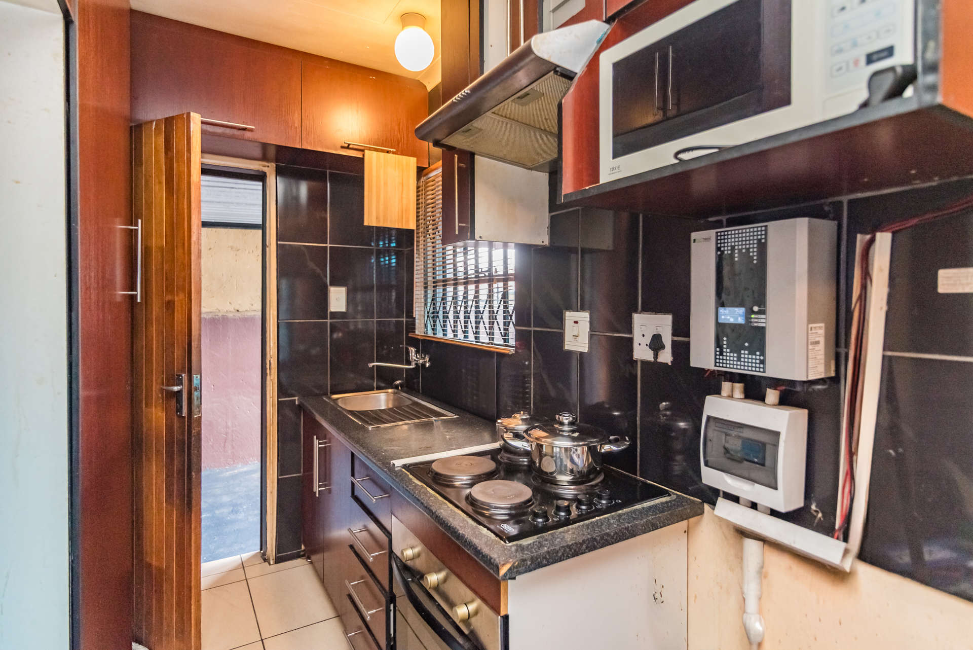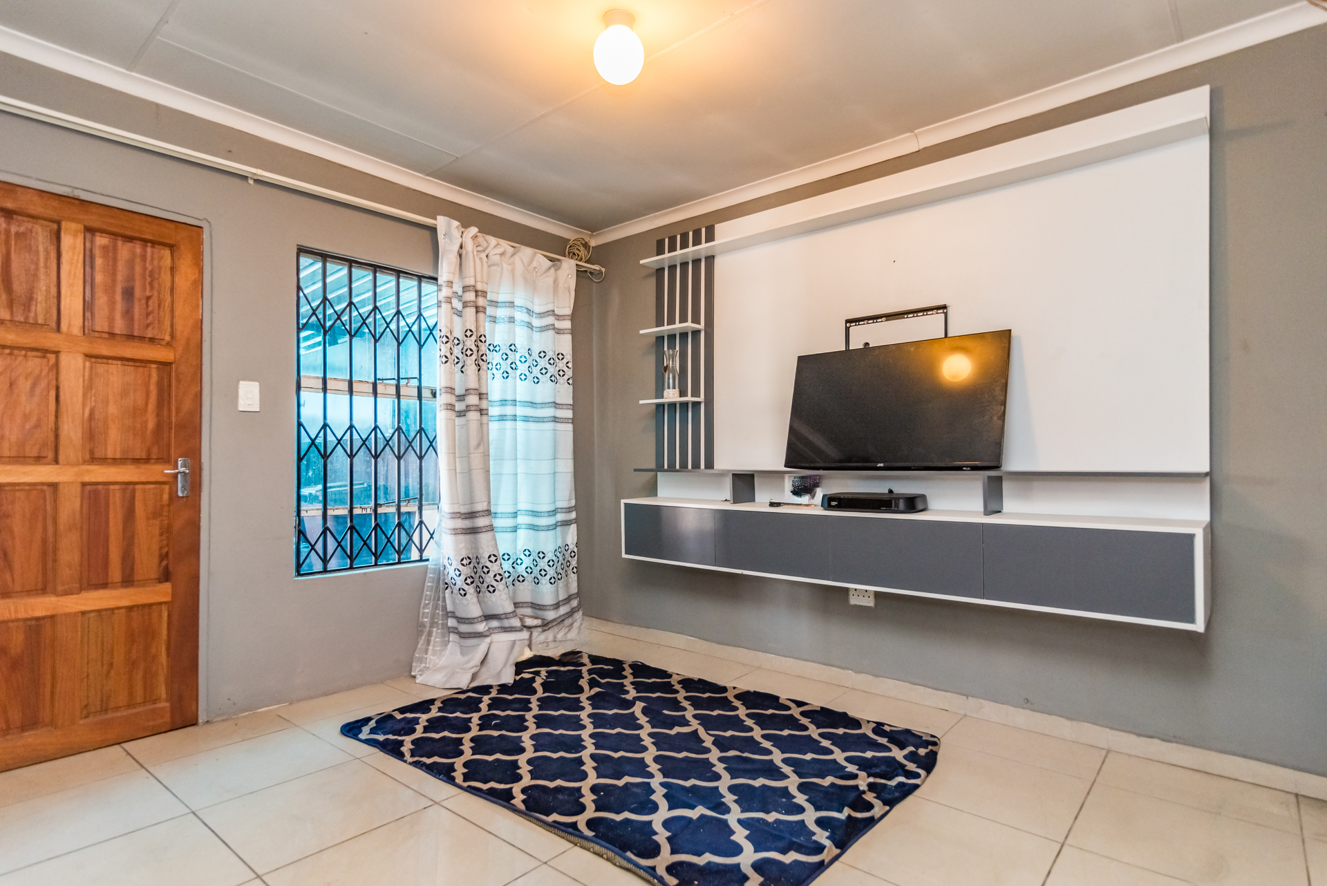 Set on a ±111 sqm stand, the property offers two tiled bedrooms, a practical bathroom with a shower, and an open-plan lounge fitted with a TV stand that makes everyday living easy and comfortable. The kitchen is fully wall-tiled and fitted with a stove, extractor fan, and plumbing for a washing machine, simple, functional, and low maintenance.