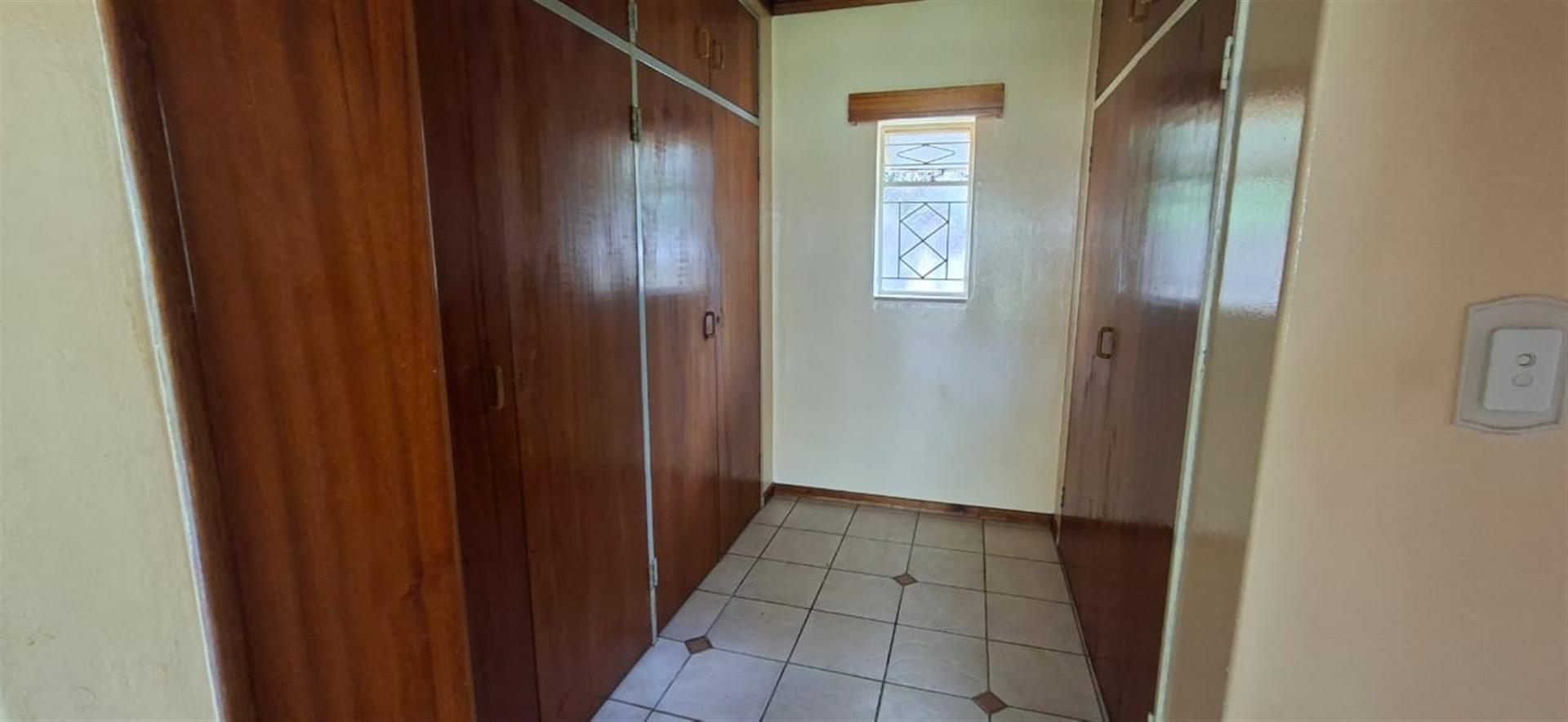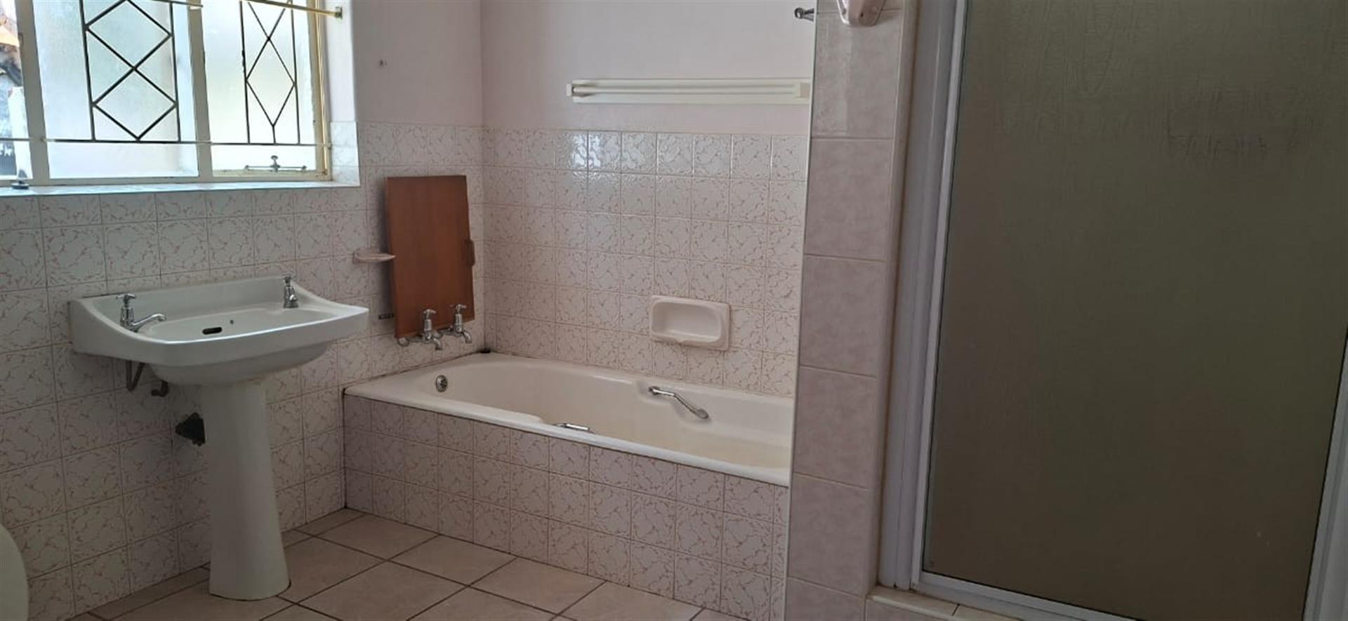The main house features four spacious bedrooms, all with built-in cupboards and fully tiled floors. There are two full bathrooms, including a main en-suite with bath, shower, basin, and toilet, plus a separate guest toilet for convenience.