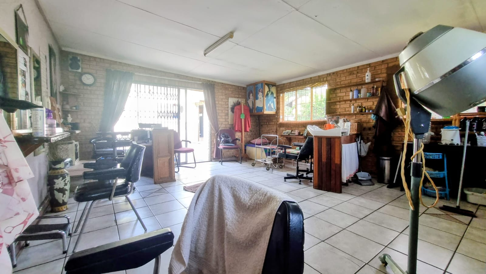 Outdoor living is a breeze, thanks to the inviting lapa, perfect for braais or entertainment. An outside building, currently utilized as a hair salon that can easily be converted into a flat, offers endless possibilities for creative pursuits or additional living space. An outside toilet adds convenience. The property also features an irrigation system.