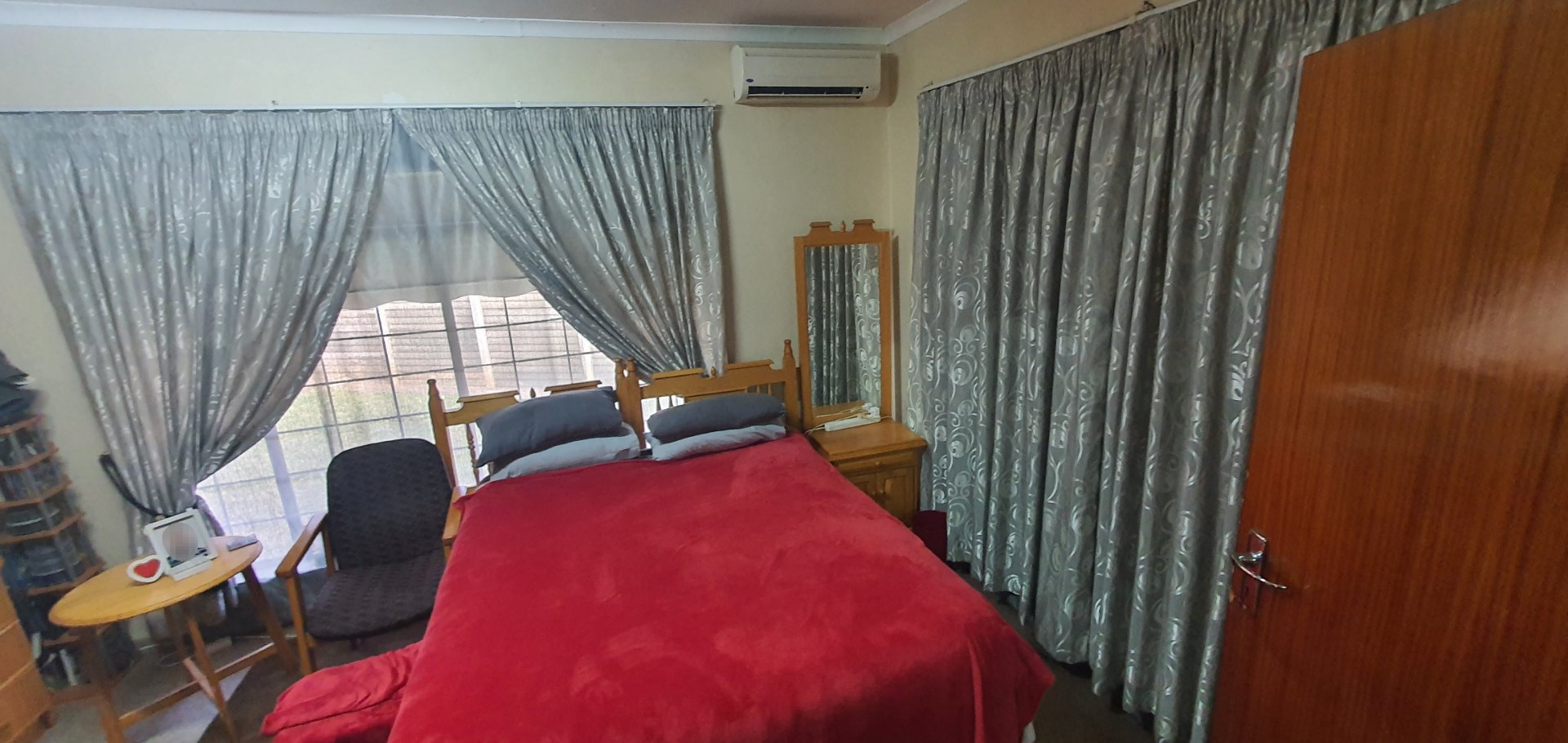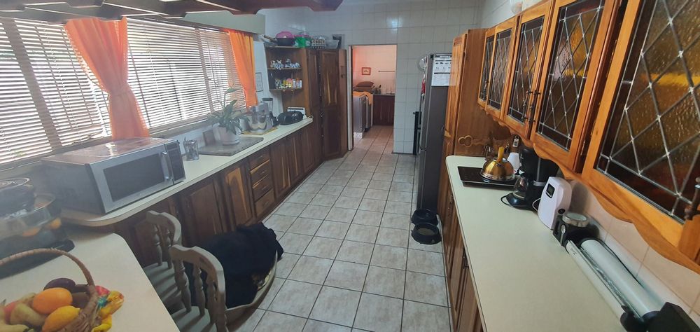 Wooden cupboards in the kitchen with separate scullery/laundry a backdoor leads to a build in braai, gated swimming pool and a lapa.