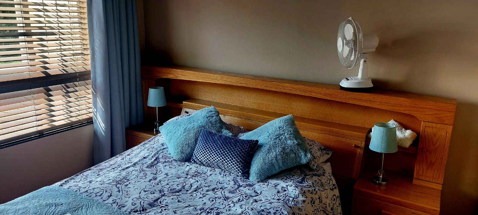 Three spacious bedrooms with tiled floors and build-in cupboards.