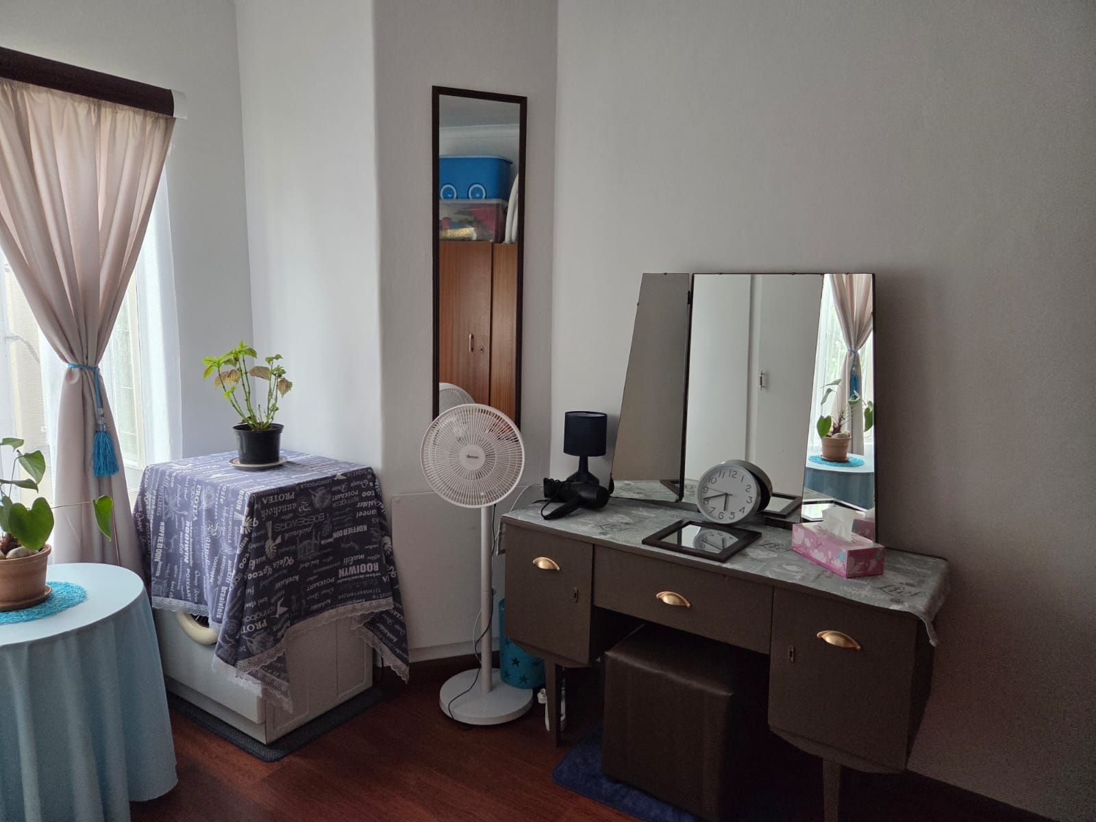 The main bedroom features built-in cupboards, an air-conditioning system, and an en-suite bathroom fitted with a shower, toilet, and basin. The remaining two bedrooms, both with built-in cupboards, share a full bathroom comprising a bath, toilet, and basin.