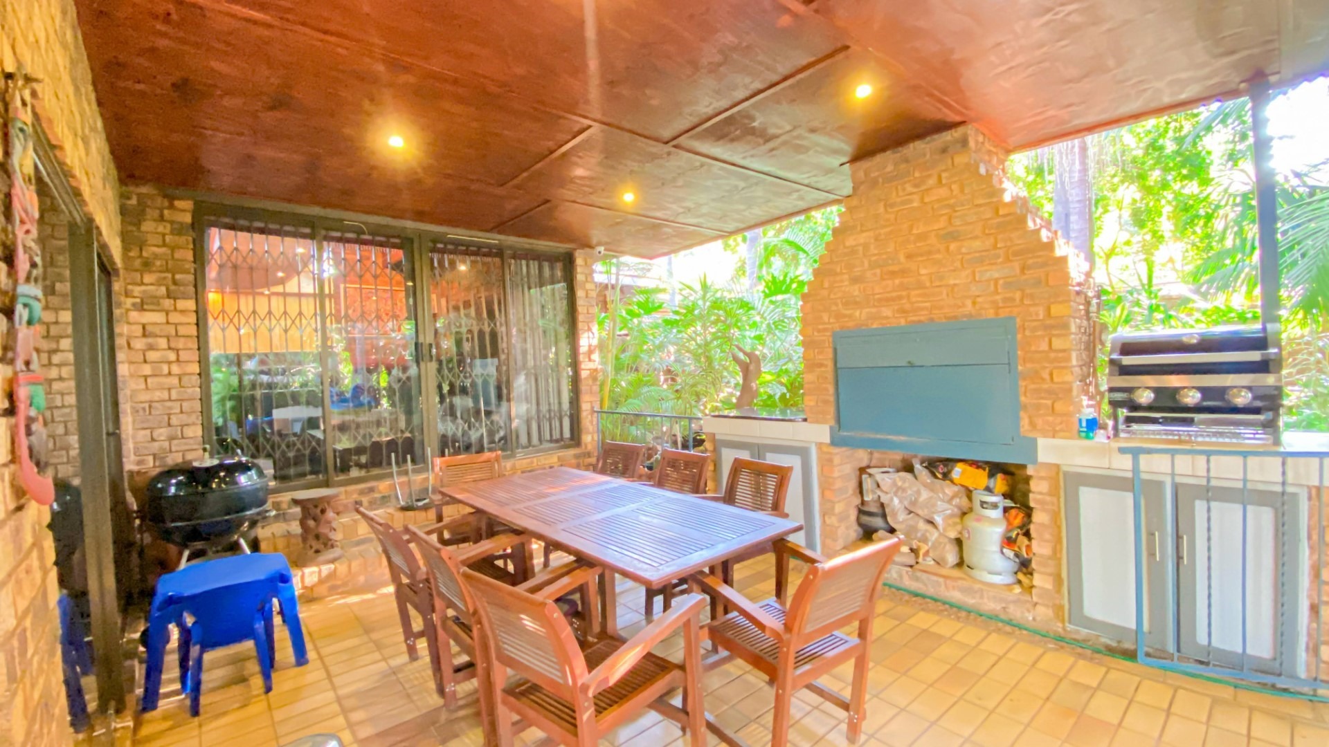- The outside bigger entertainment area has its own dining place, lounge leading to the swimming pool