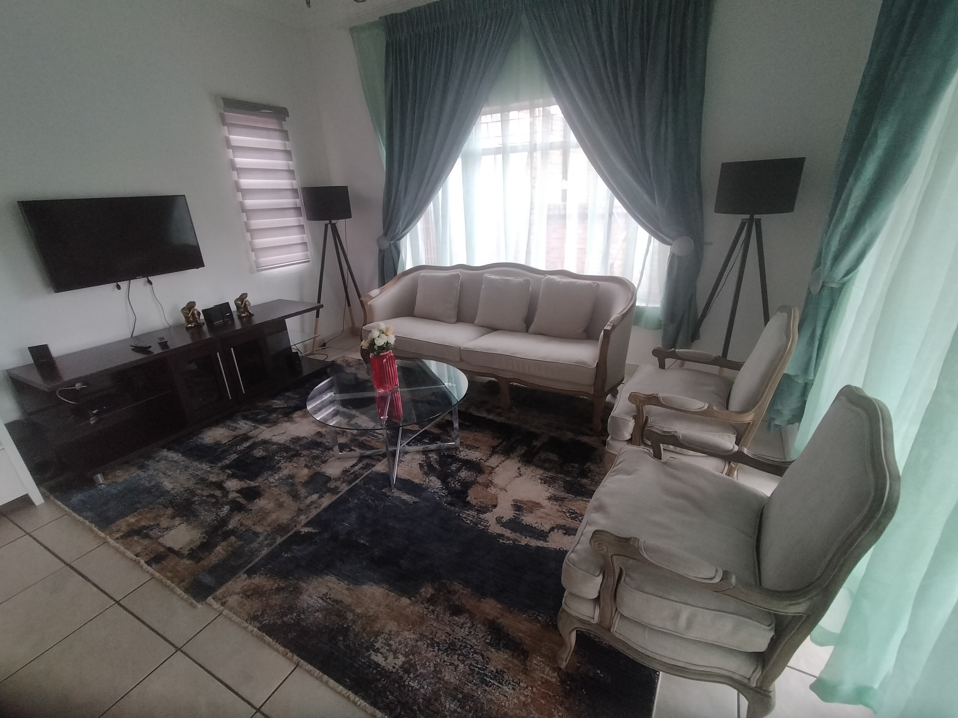 Nestled in the tranquil suburb of Florauna, this modern 202m2 facebrick home on a 766m2 stand offers a perfect blend of comfort and convenience. Featuring 3 spacious bedrooms, 2 bathrooms, and a study, this move-in-ready property boasts large living areas, including a lounge, dining room, and TV room, seamlessly flowing into an open-plan kitchen. An aluminum sliding door opens onto an enclosed patio, overlooking a beautifully maintained, low-maintenance garden, ideal for relaxing or entertaining.