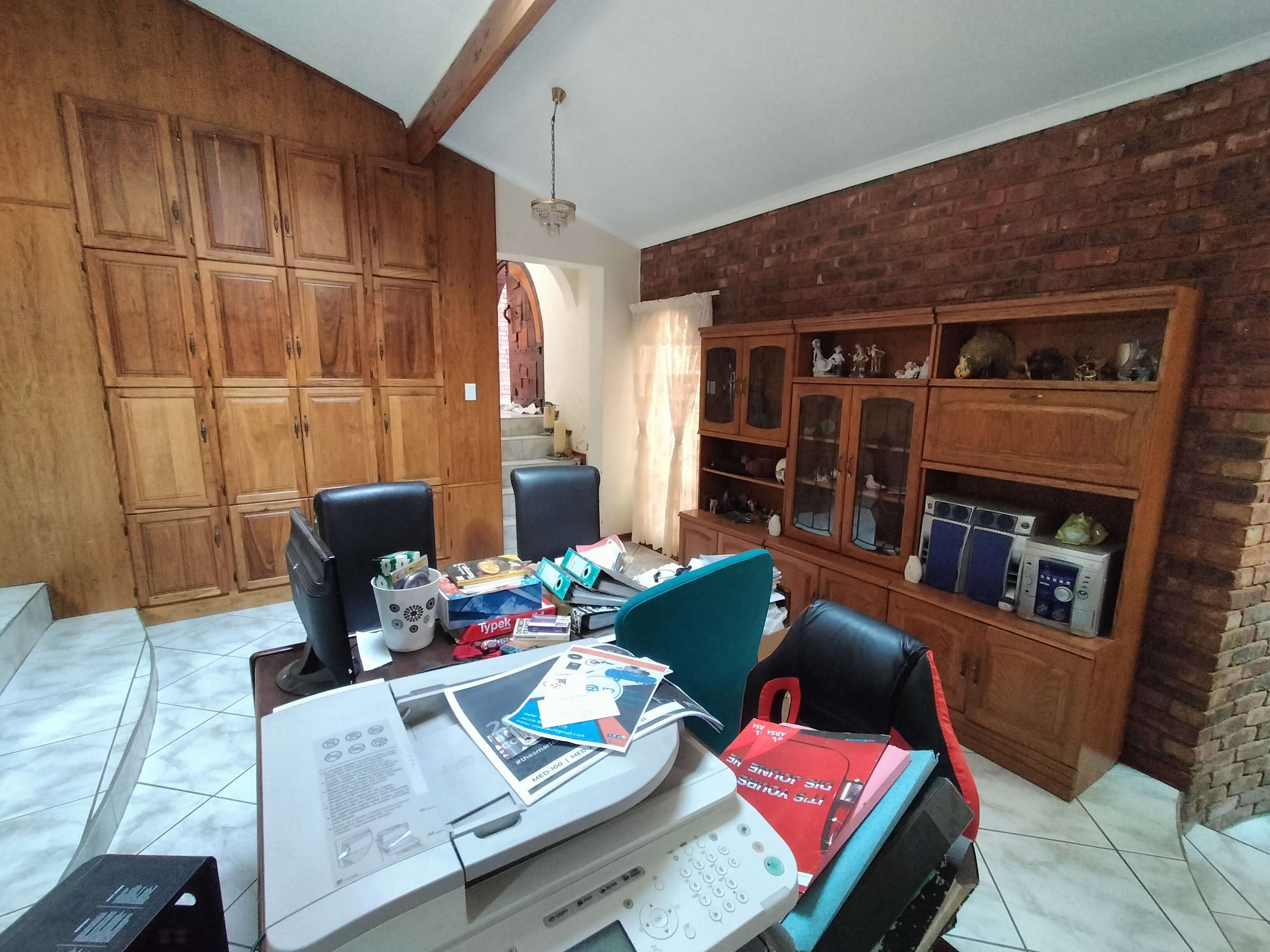 Are you searching for a prime investment opportunity or your dream home in Florauna, South Africa? This unique property offers a captivating blend of potential and space, set on a generous 2104 square meter stand. The multilevel house features five bedrooms with walk-in wardrobes and en-suite bathrooms, two additional bathrooms, and a spacious open-plan lounge and dining area. Enjoy the large foyer, ideal for an office or study, a generous kitchen with oak cupboards and pantry, and outside laundry facilities. The home also boasts two double garages with automated doors, skylights for abundant natural light, and prepaid electricity for convenience.