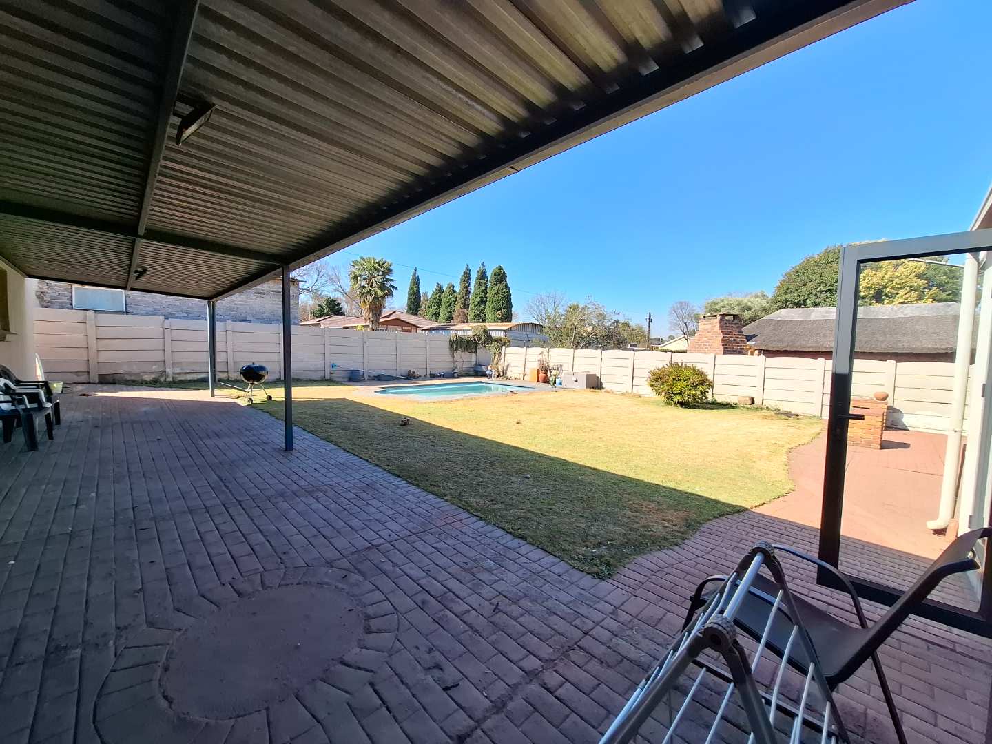 This spacious residence features 3 generous bedrooms and 2 modern bathrooms, all designed to create a warm and inviting atmosphere. The heart of the home is the open-plan lounge and dining/TV area, seamlessly connected to a sleek, contemporary kitchen that flows into an entertainer’s dream: a stylish bar and indoor braai area with stacker doors that open directly onto a sparkling pool and outdoor entertainment space — perfect for hosting friends and making family memories.