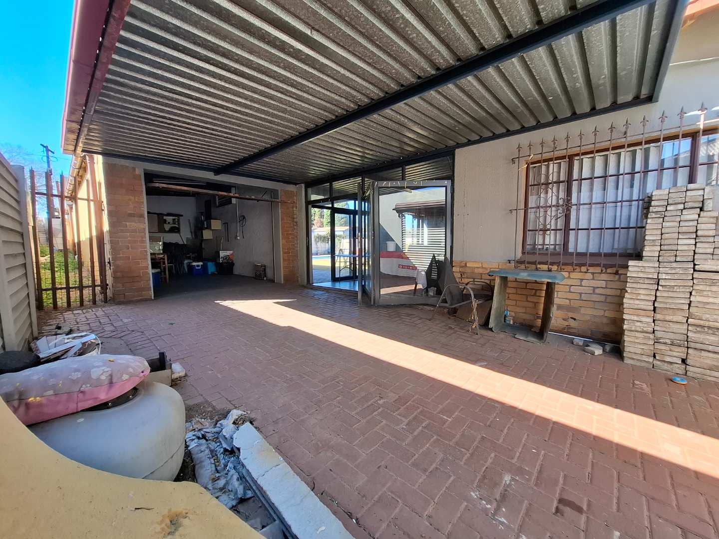 Single garage with additional covered carport