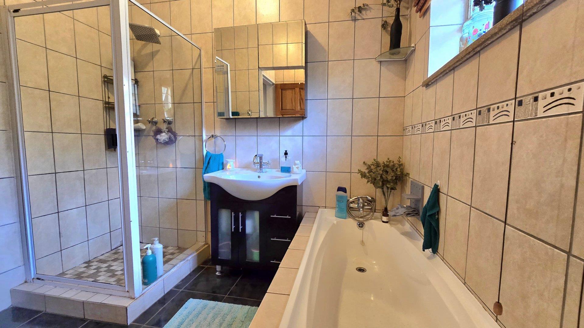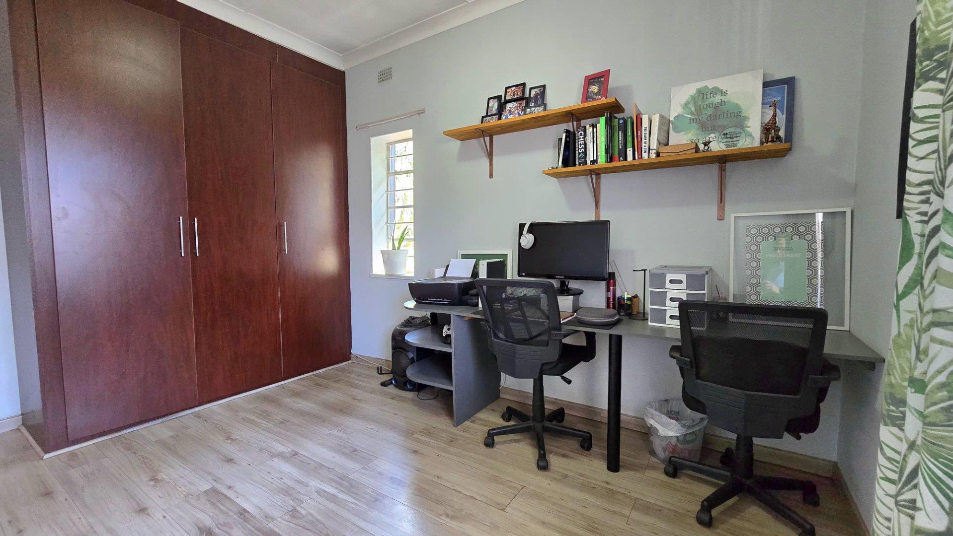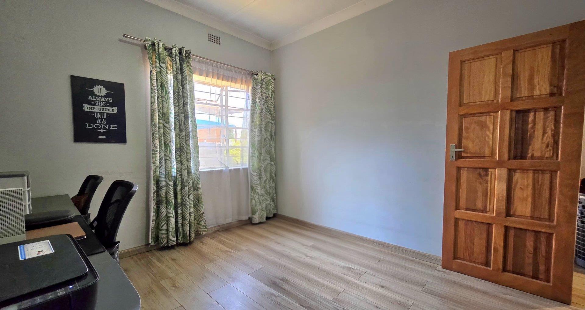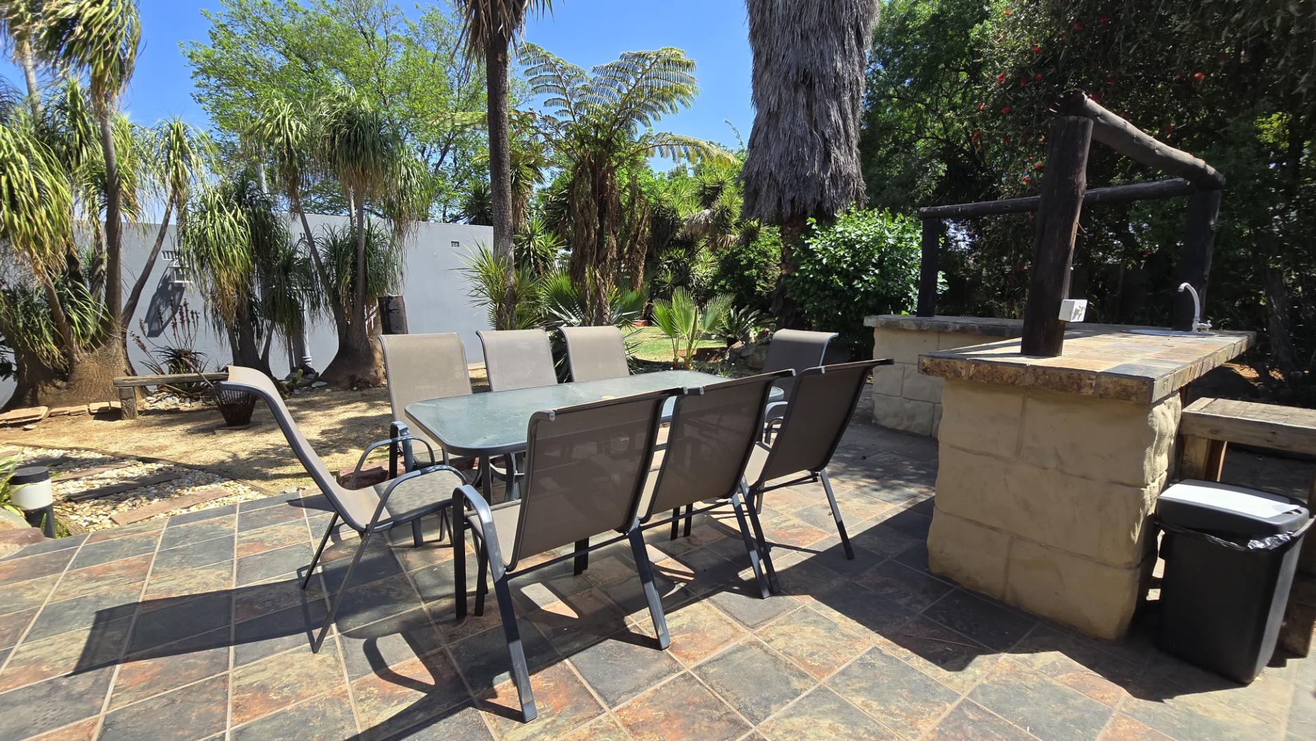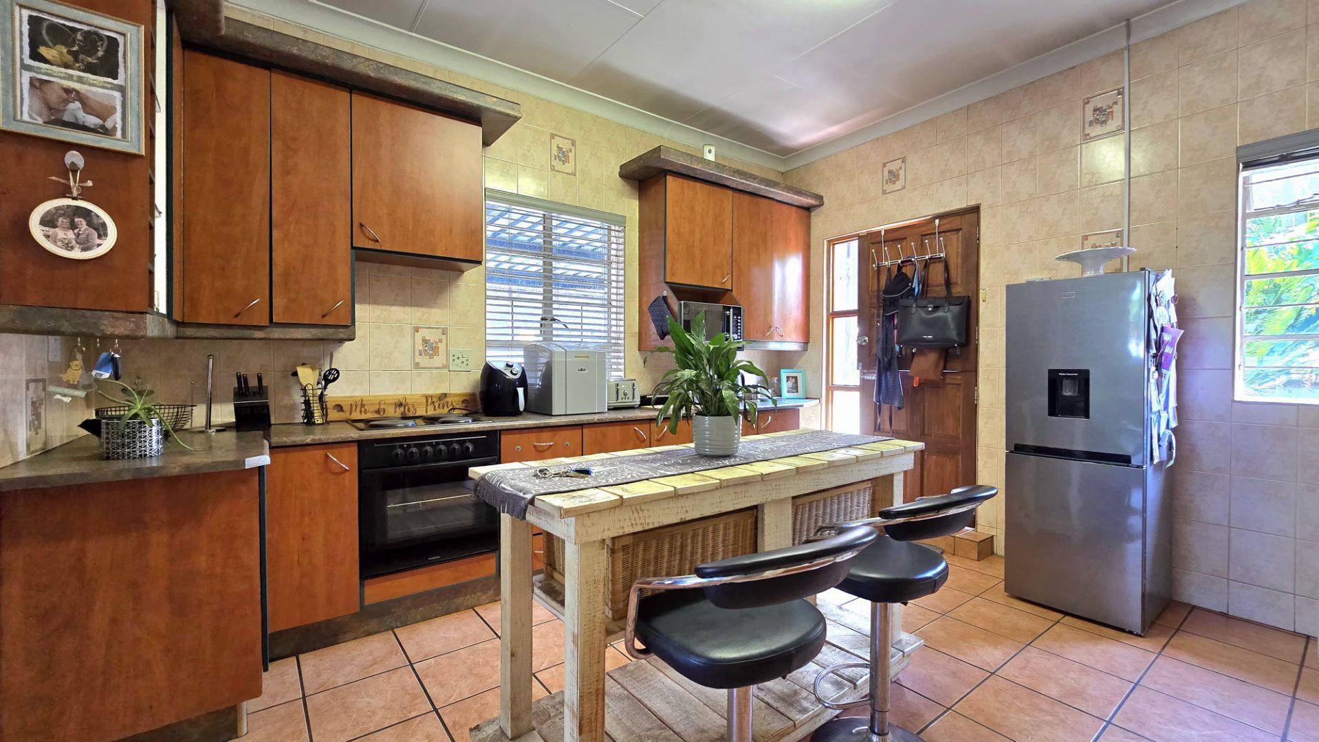 Outside, the servant's quarters offer extra storage space. The expansive garden serves as your personal oasis, featuring an open patio with a built-in Braai—ideal for entertaining family and friends on warm summer evenings.