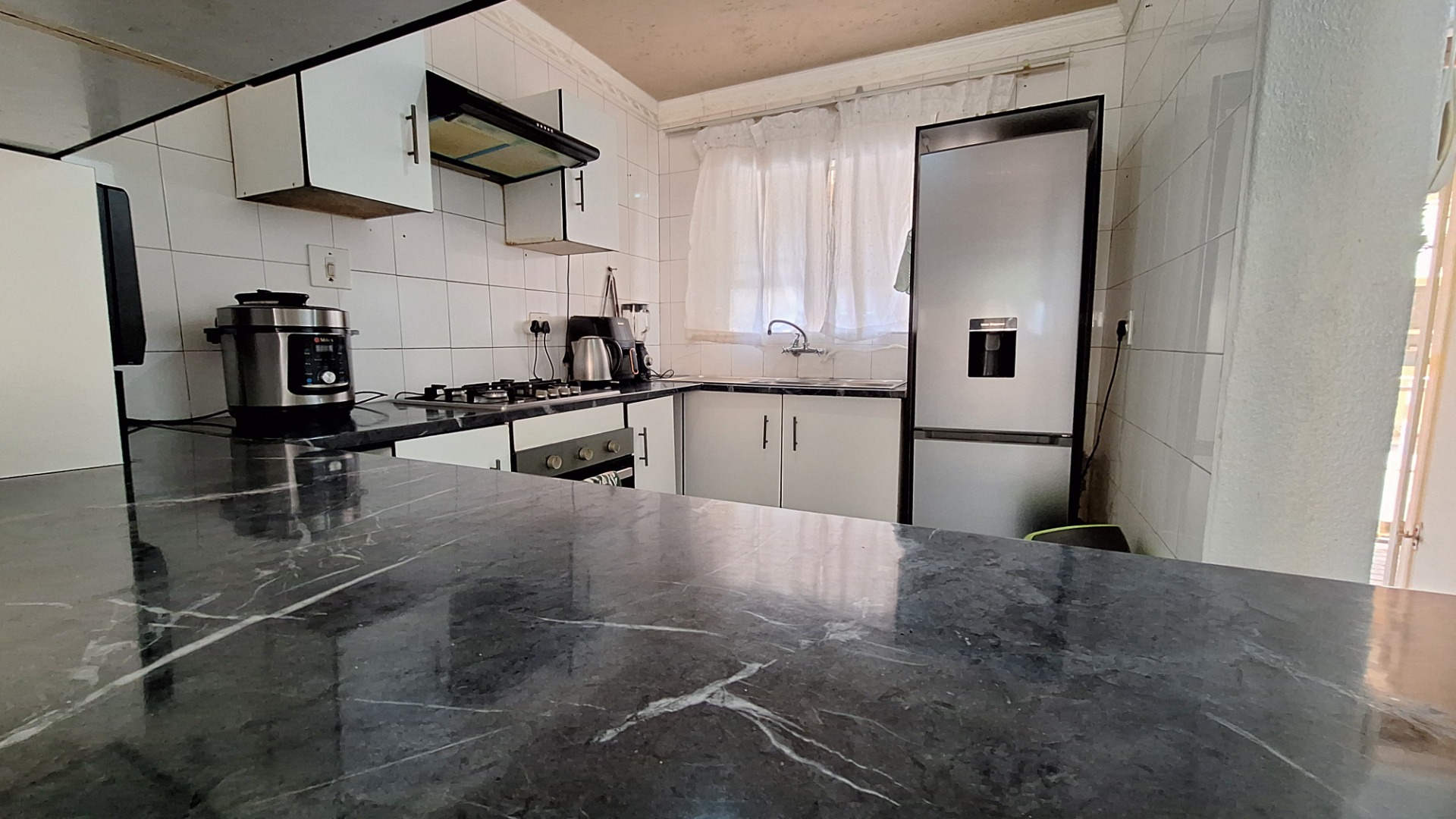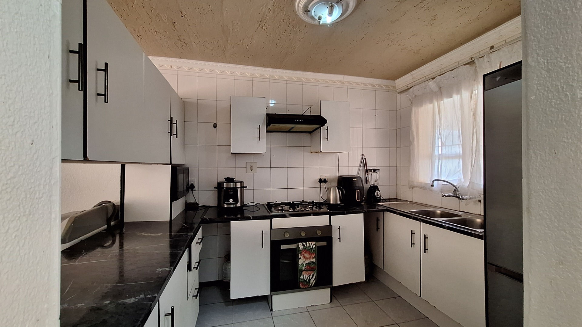 A practical kitchen with ample cupboard space, offering convenience for cooking and storage