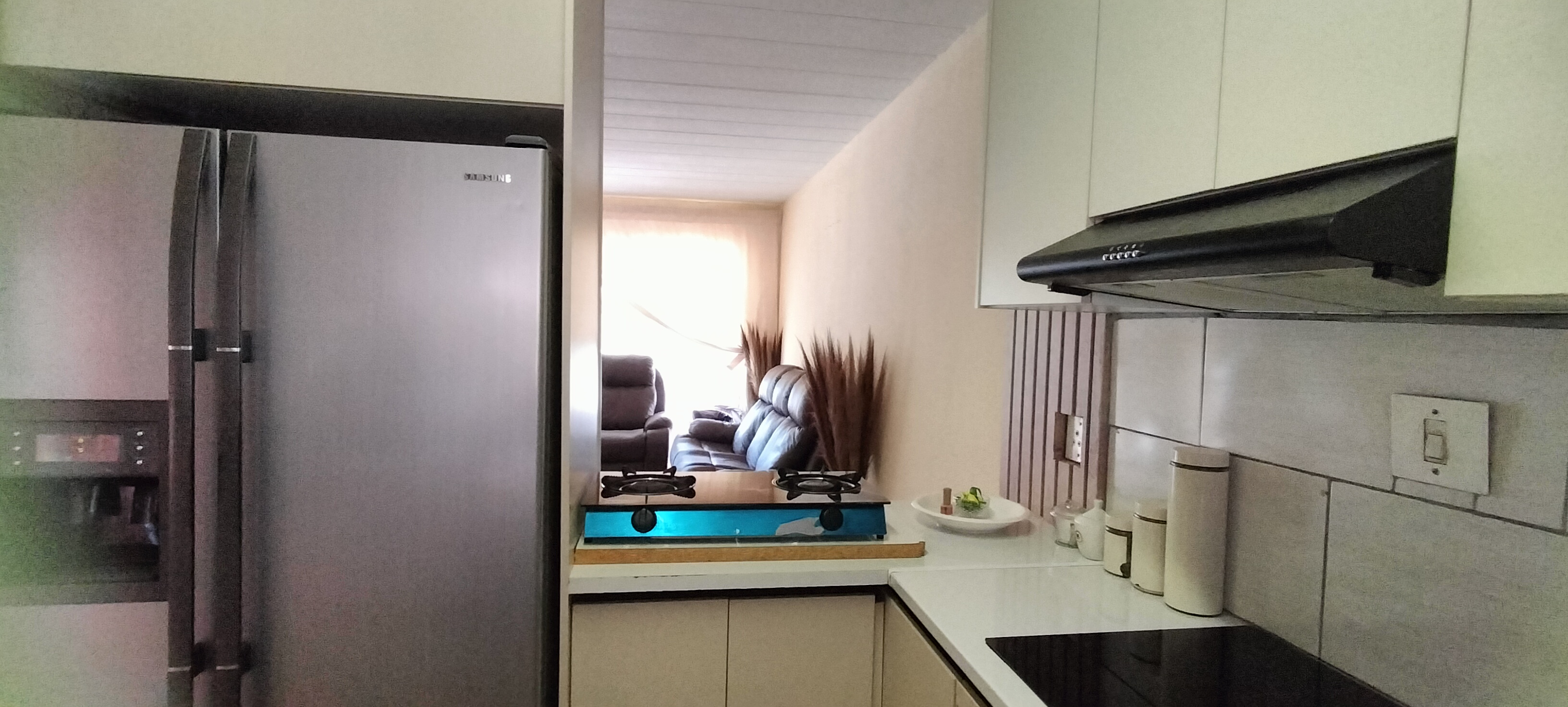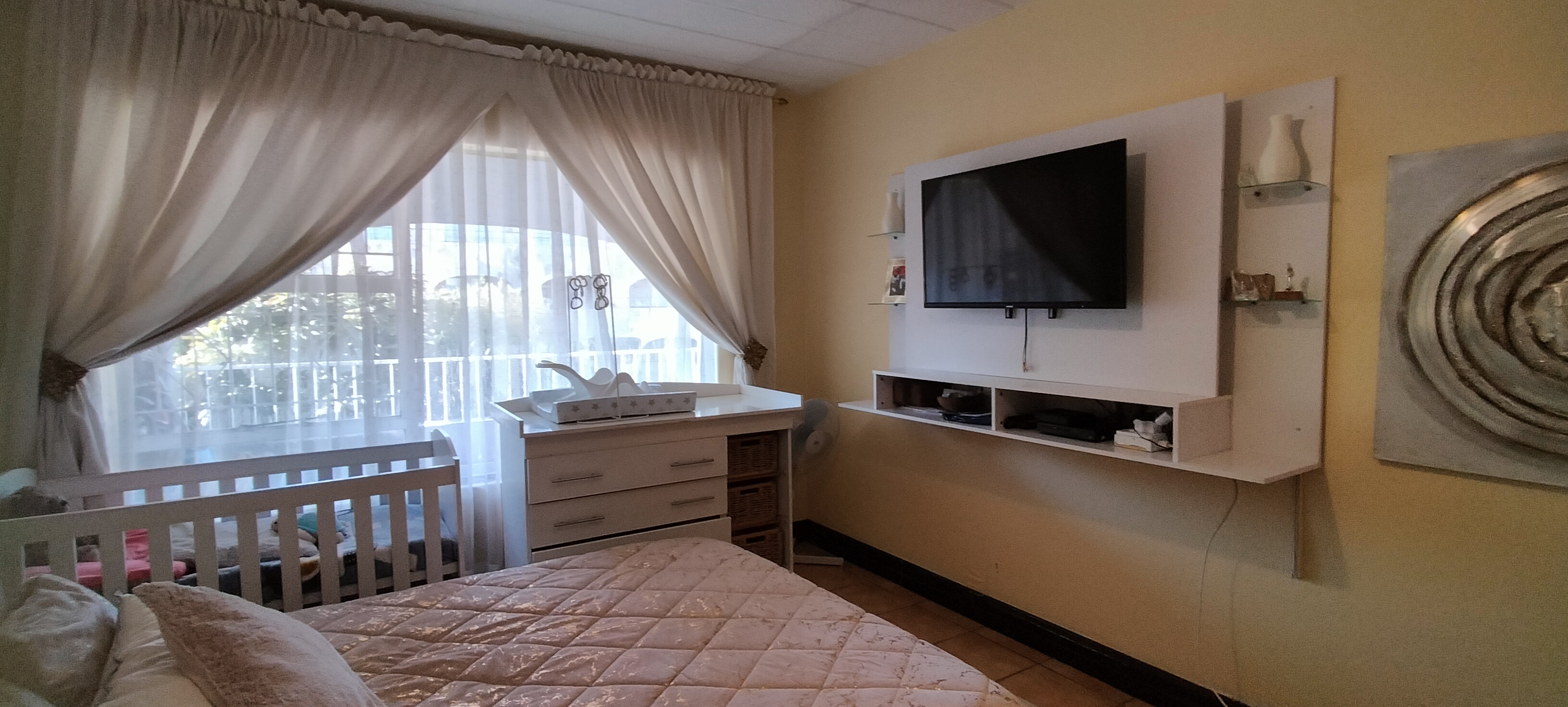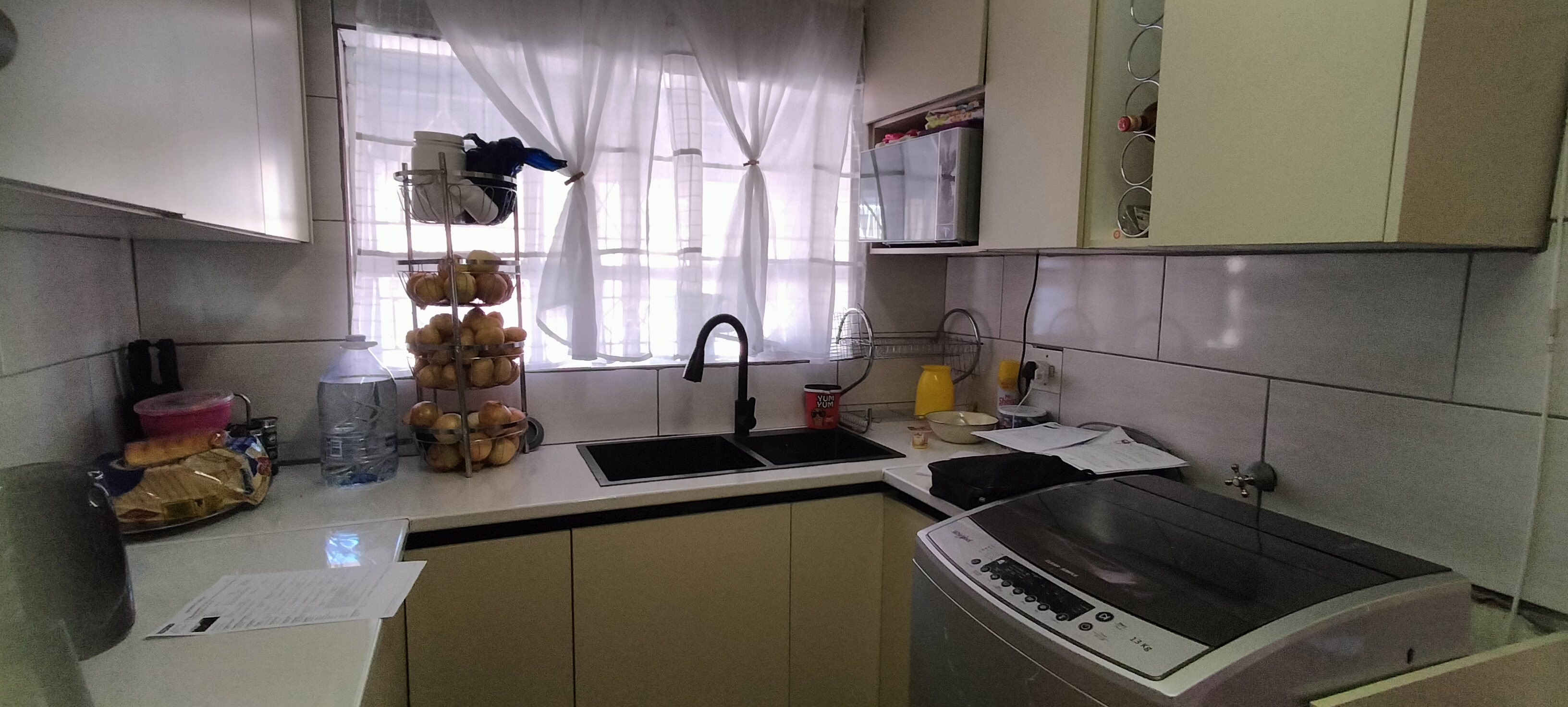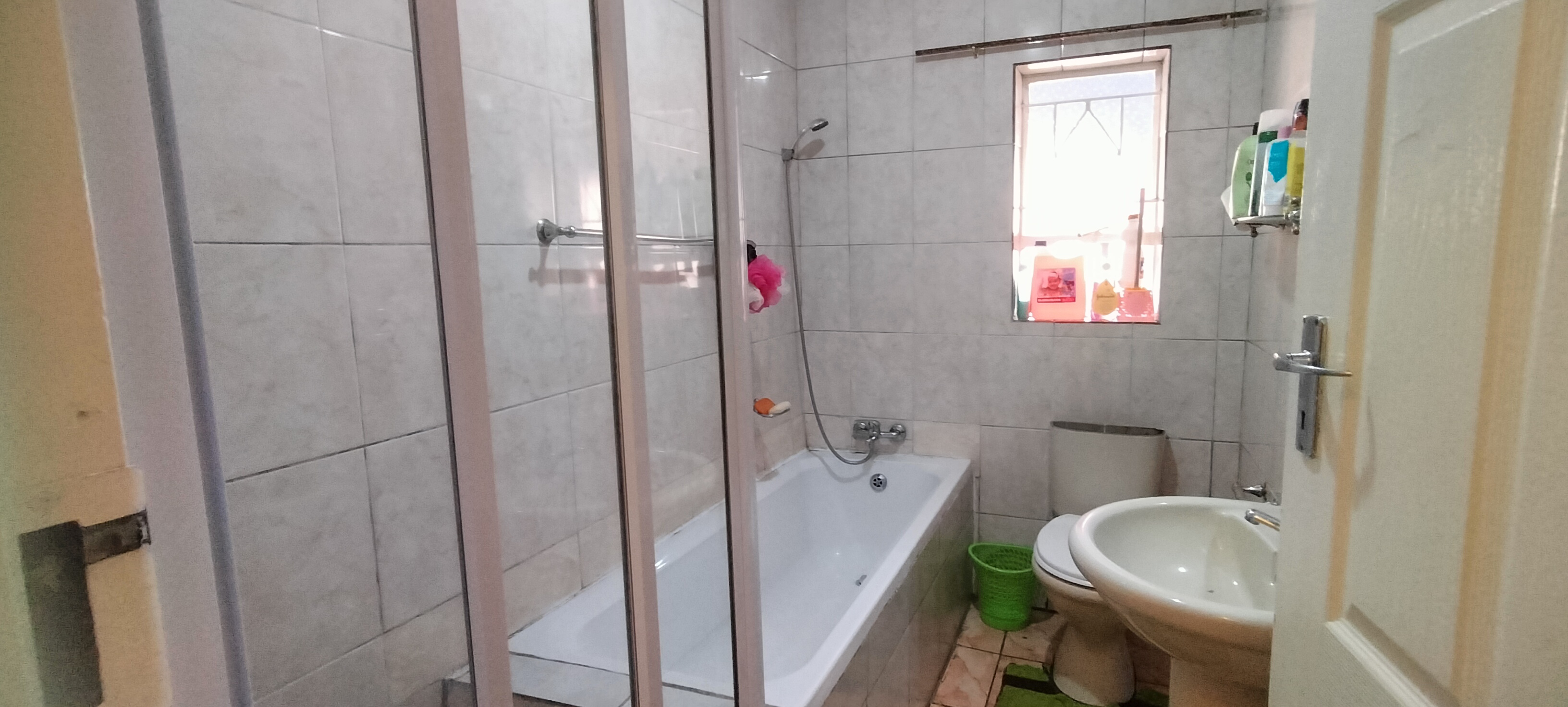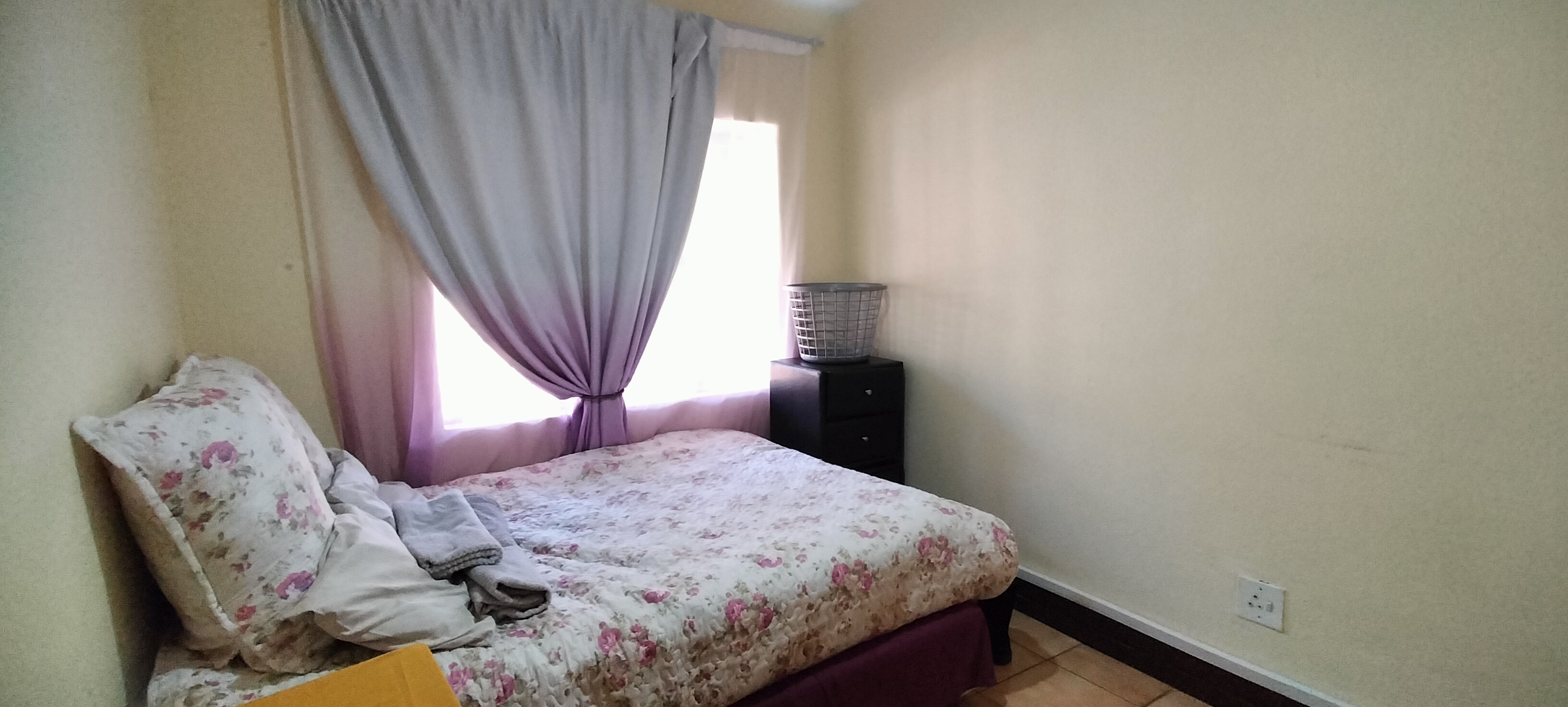 Two spacious bedrooms offering ample space for furniture and relaxation. It is equipped with essential facilities for a comfortable lifestyle. Tiled floors and hand held shower over the bath. Large built in cupboards.