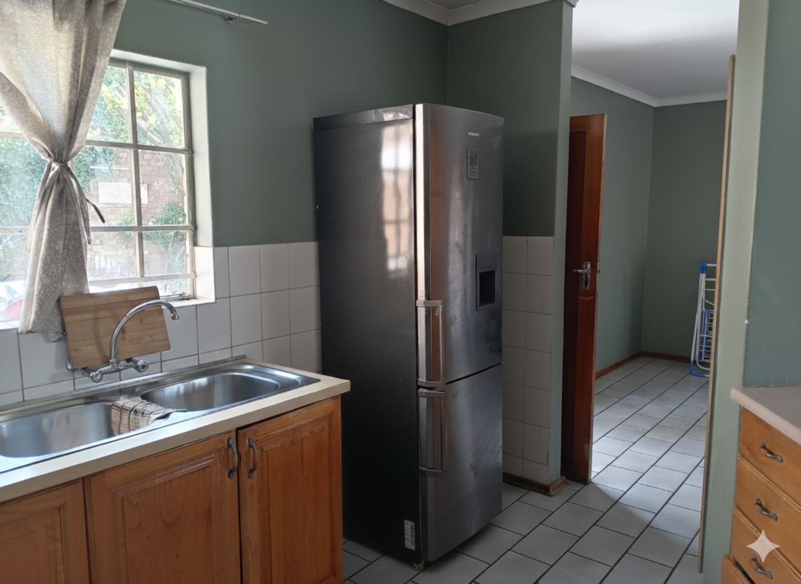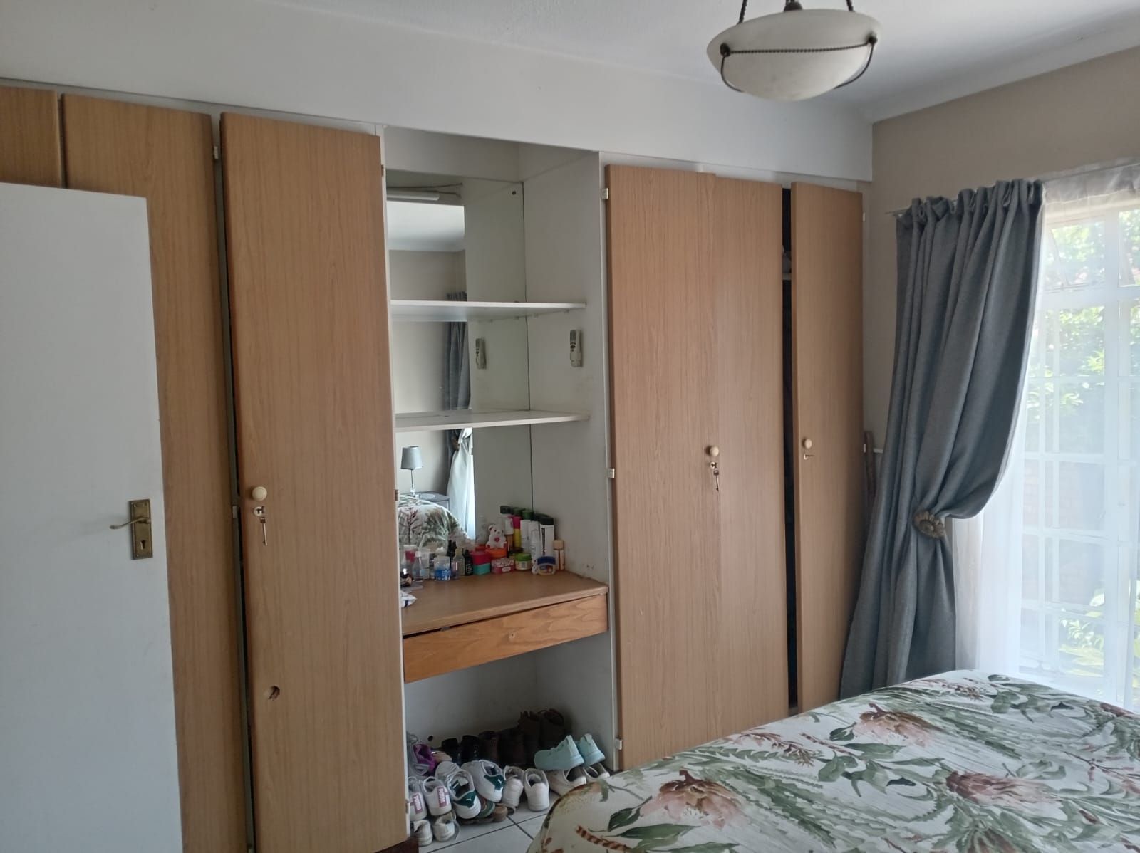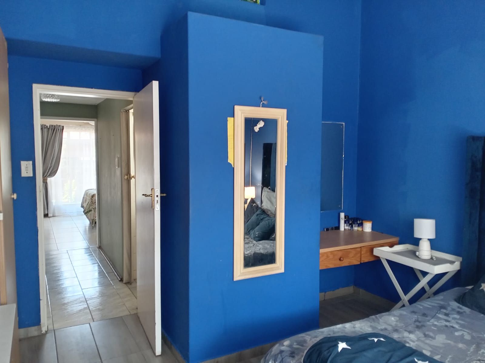 Two majestic bedrooms, both tiled and fitted with ample cabinetry. The main bedroom offers an elegant en-suite bathroom, while the second bathroom serves as a guest cloakroom.