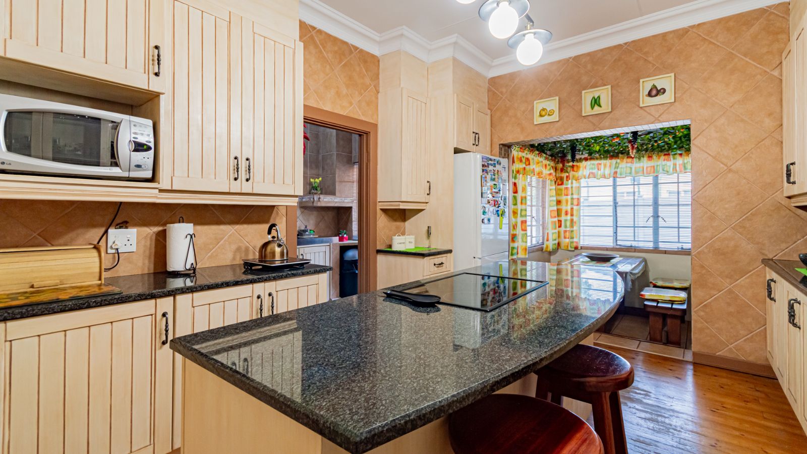 Outside, a larger-than-average backyard showcases a well-established garden, offering plenty of space for children, pets, and outdoor living. The inviting lapa creates the perfect setting for weekend braais, family gatherings, or quiet afternoons outdoors.