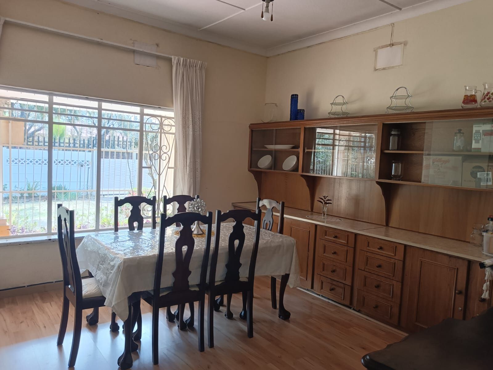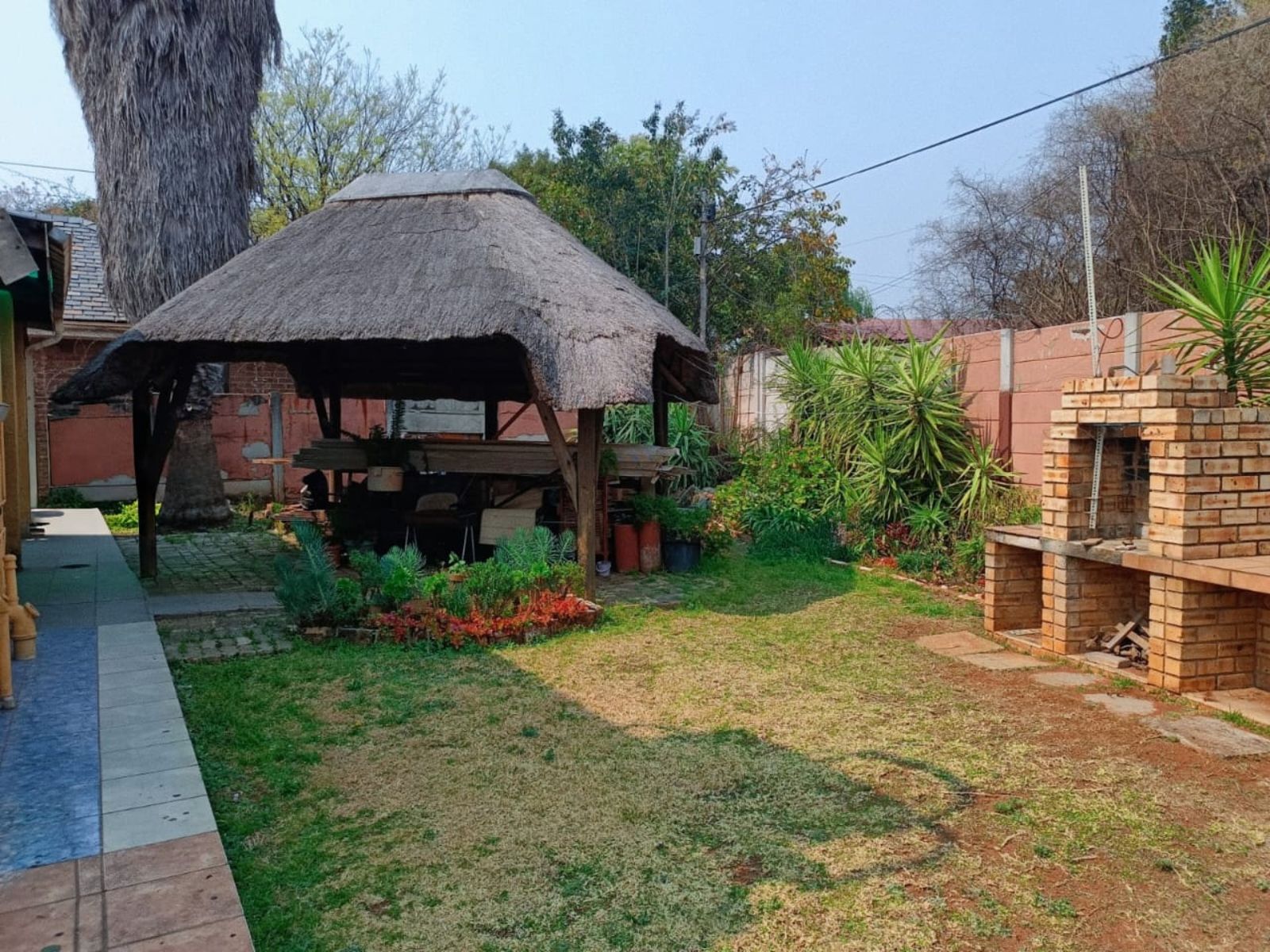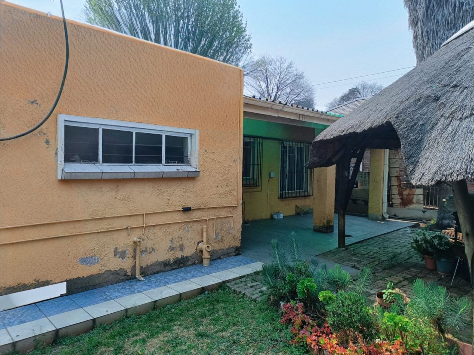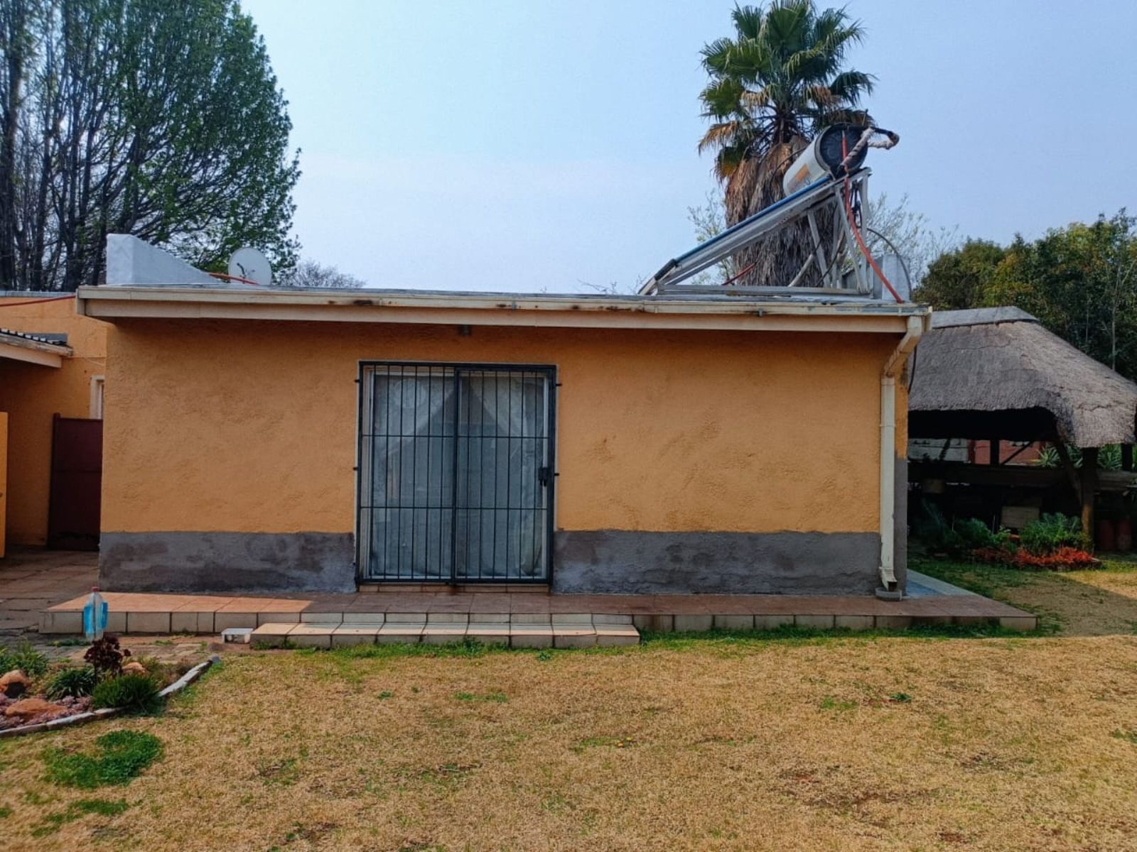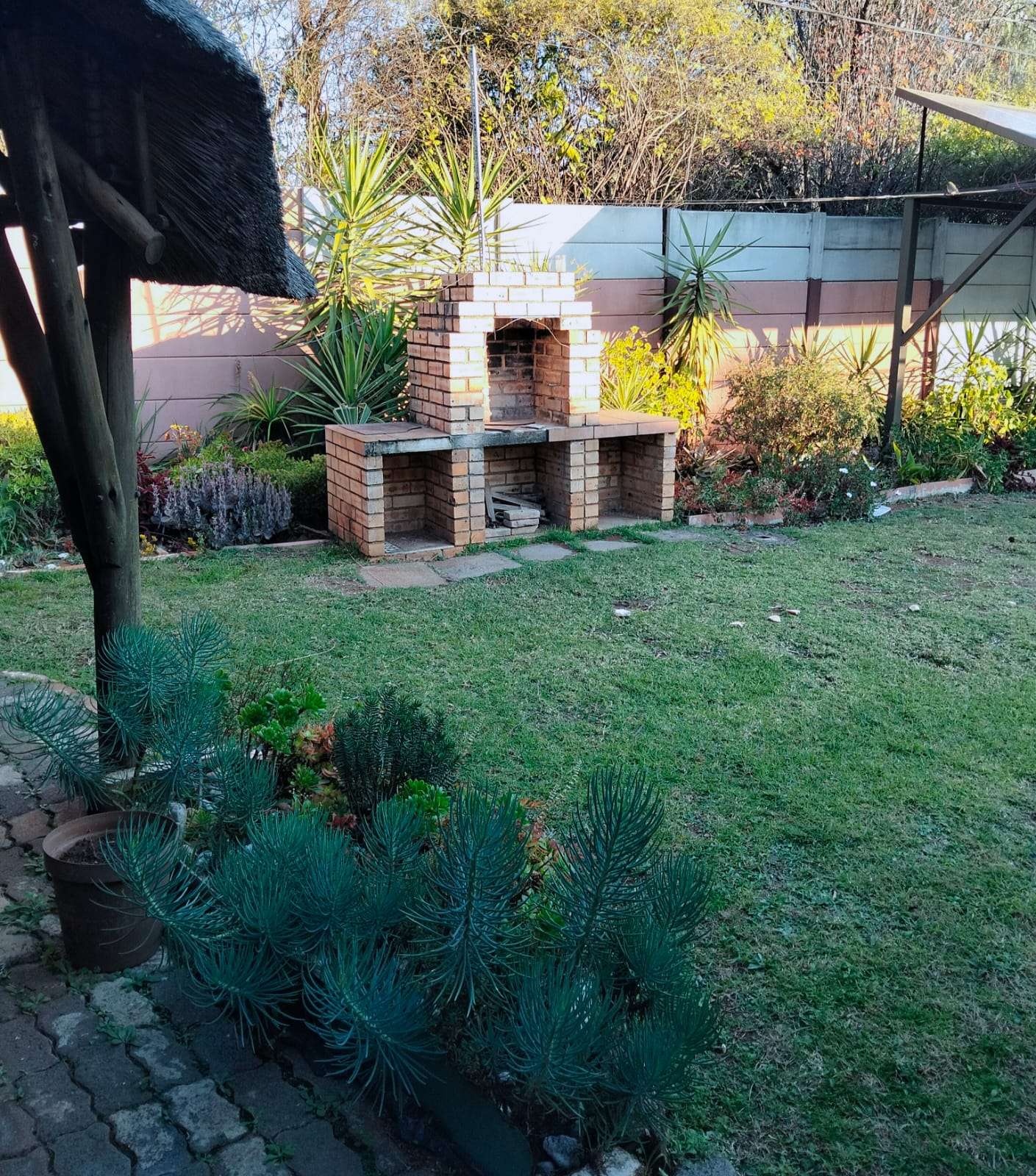 The Main House has three bedrooms, 1.5 bathroom, lounge, kitchen and dining room, all spacious rooms. The First Cottage has a lounge, three bedrooms two bathrooms, kitchen and outside covered patio. The Second Cottage has a kitchen, lounge/dining room, bedroom and bathroom with shower. So if an extended family buys it, they can accommodate all the family – or one can get a great rental income from the cottages. Cottage 1 can bring in R10 000 per month and Cottage 2 can add another R5500 per month.