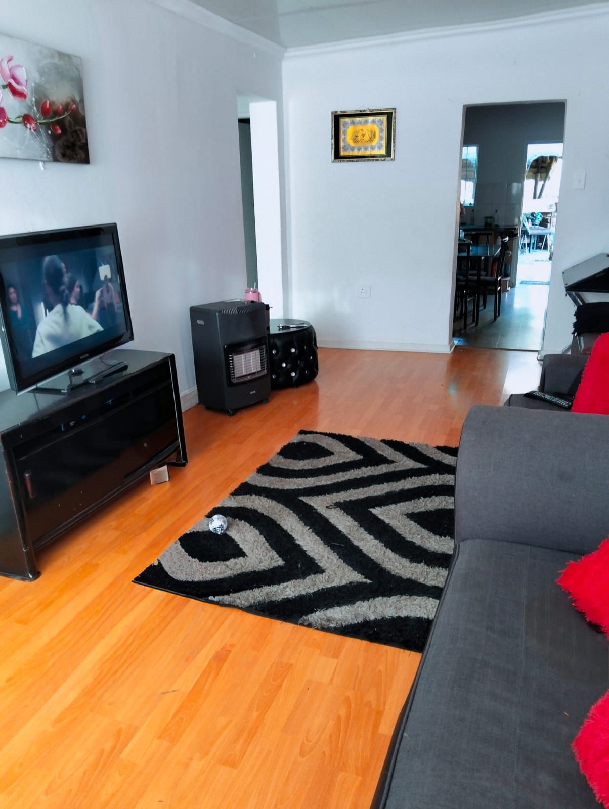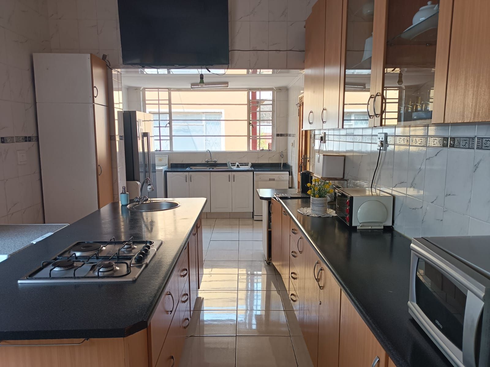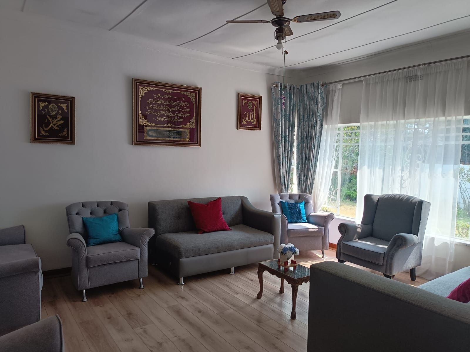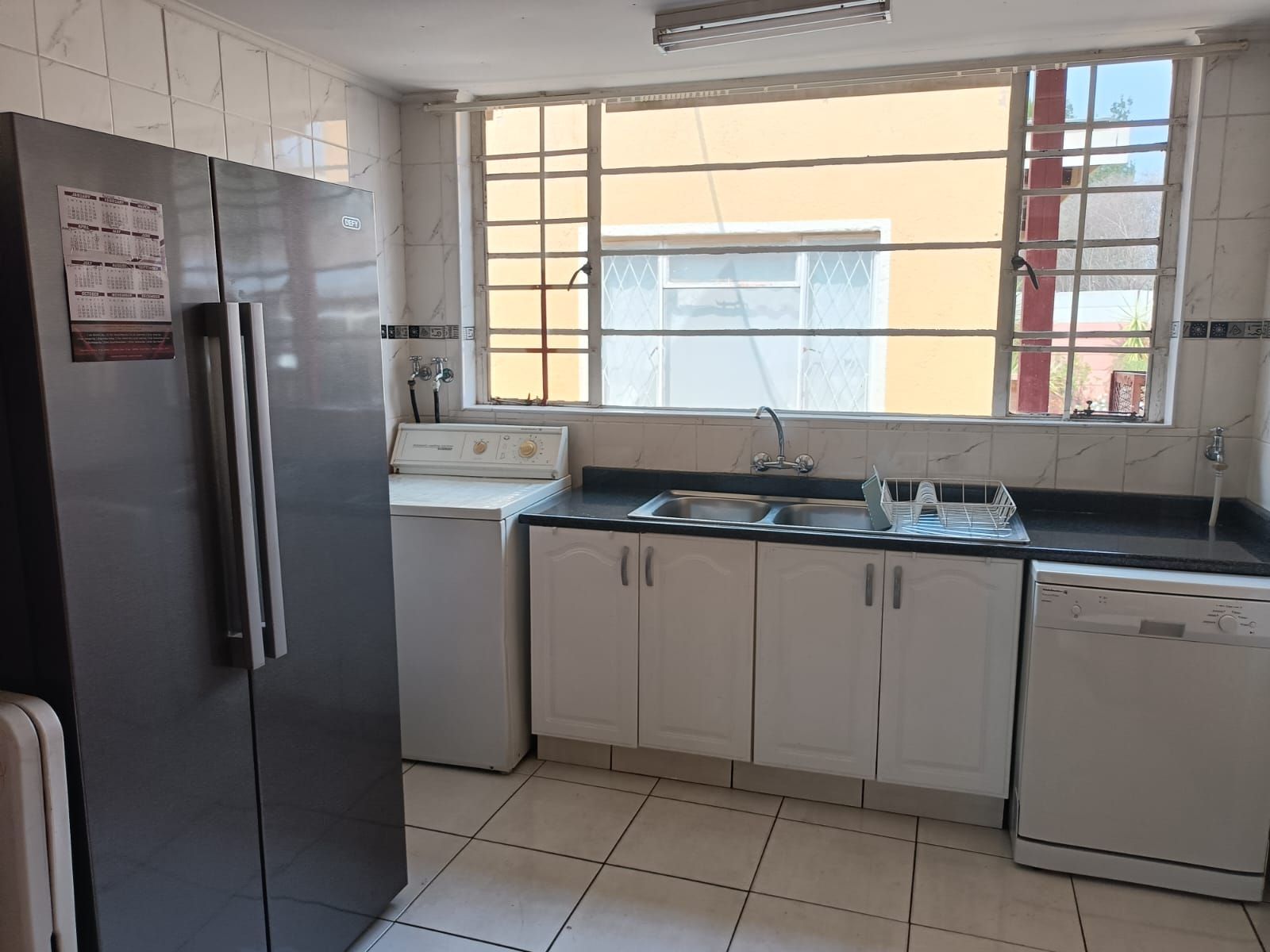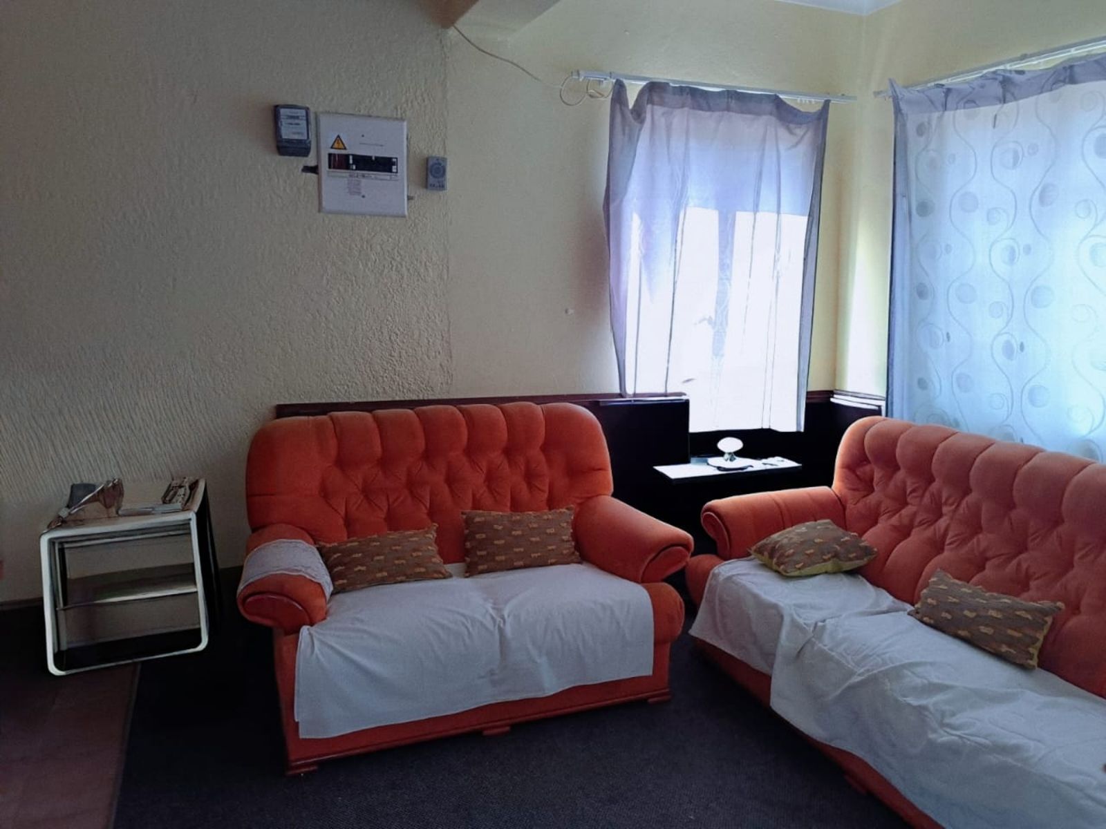 The Main House has three bedrooms, 1.5 bathroom, lounge, kitchen and dining room, all spacious rooms. The First Cottage has a lounge, three bedrooms two bathrooms, kitchen and outside covered patio. The Second Cottage has a kitchen, lounge/dining room, bedroom and bathroom with shower. So if an extended family buys it, they can accommodate all the family – or one can get a great rental income from the cottages. Cottage 1 can bring in R10 000 per month and Cottage 2 can add another R5500 per month.