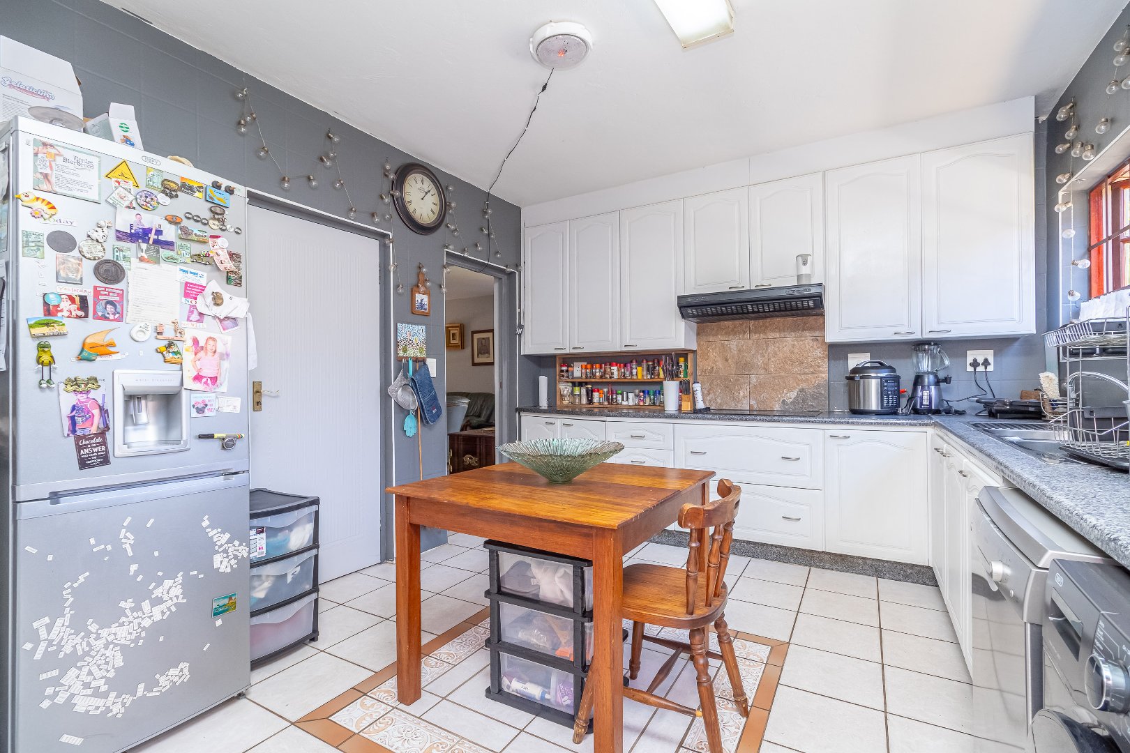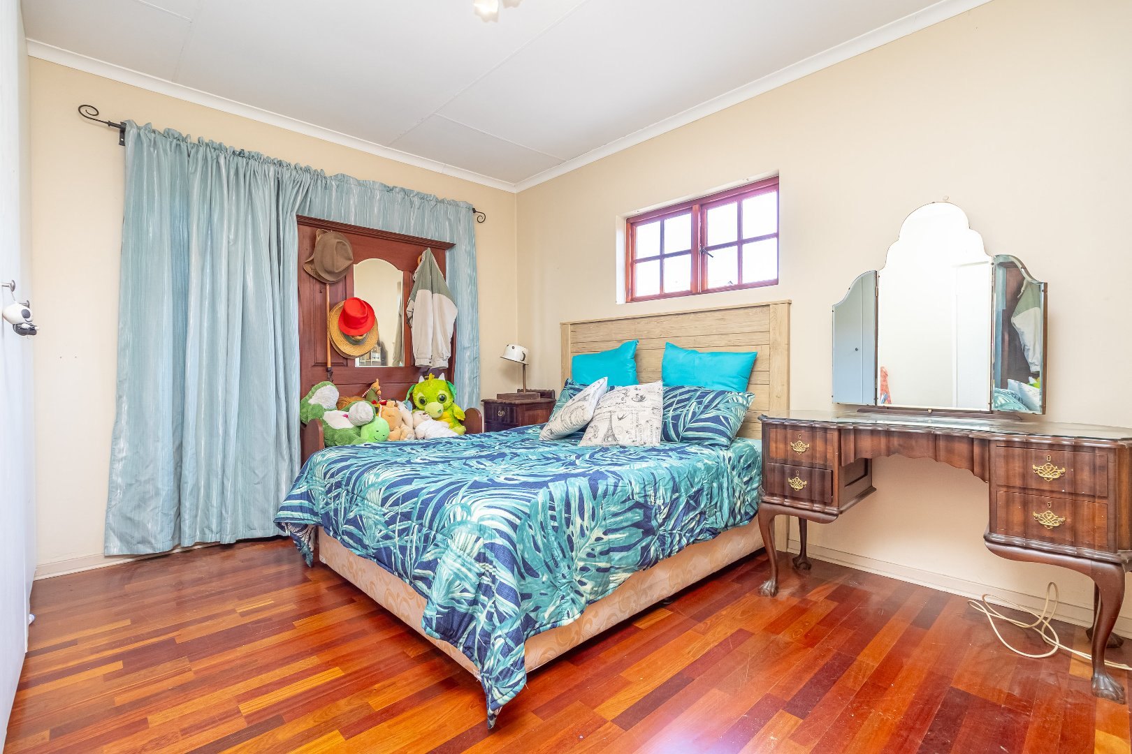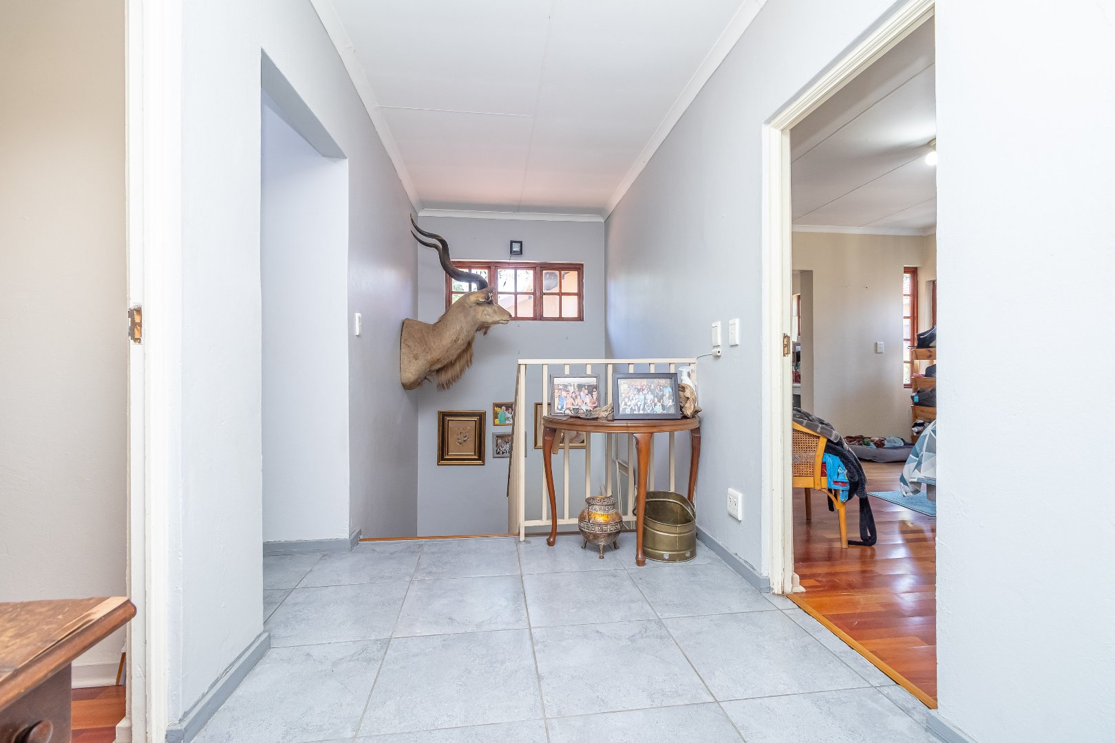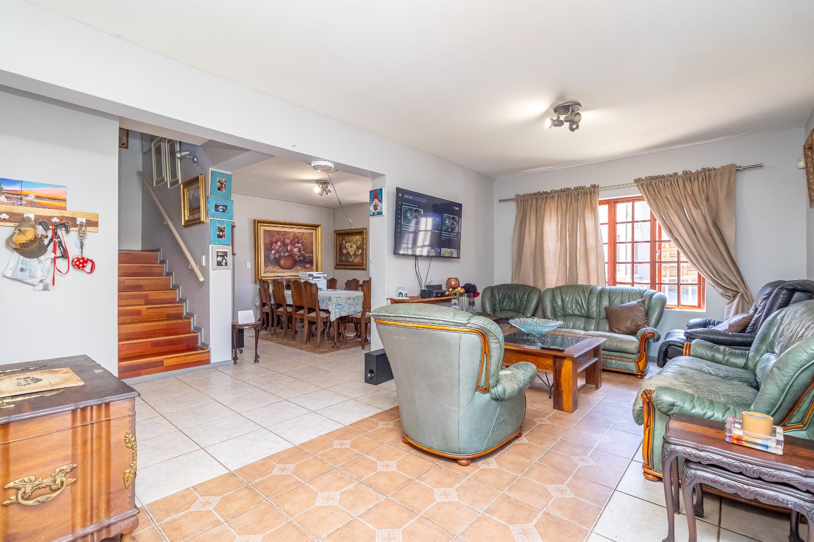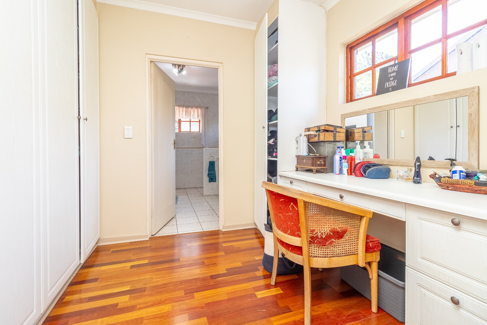 The floor plan encircles with three upstairs bedrooms, complete with built-in cupboards and 2.5 bathrooms (guest loo downstairs). Spacious, upstairs linen cupboard and storage room.