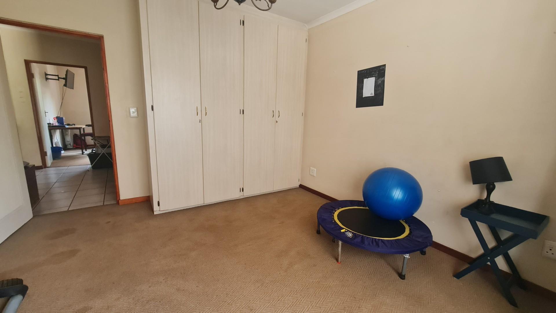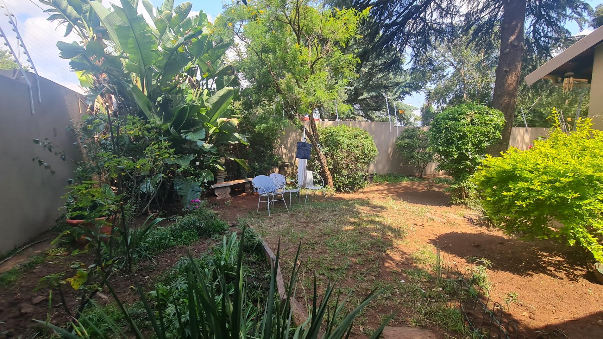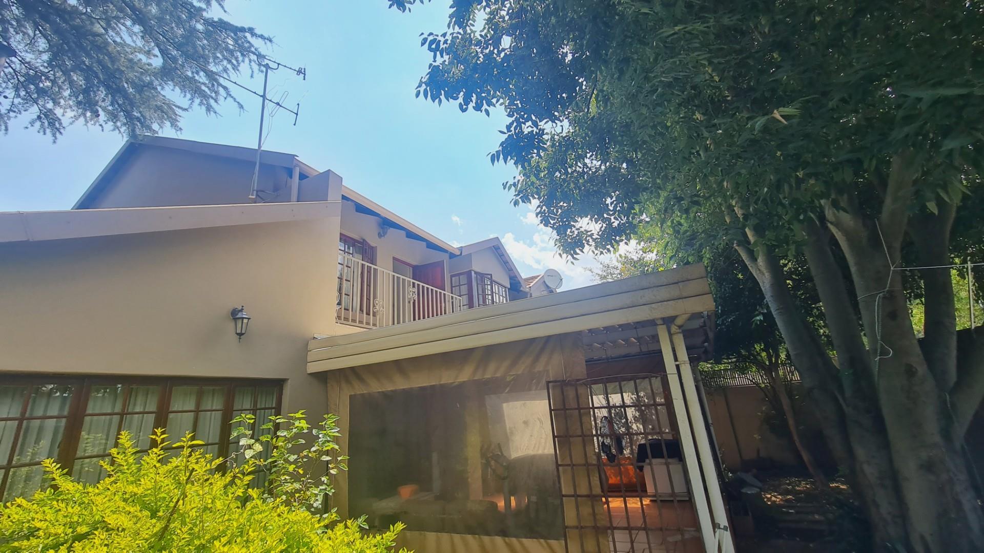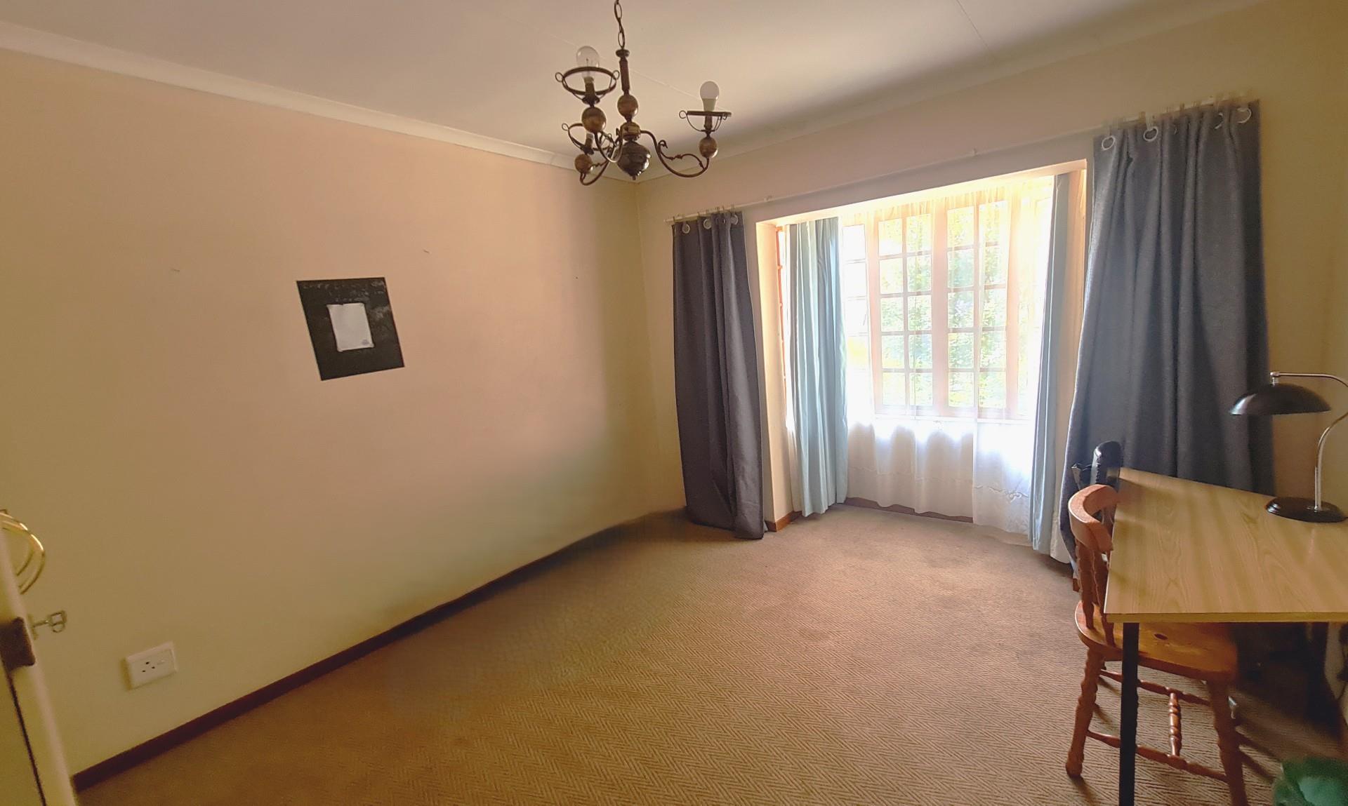 The downstairs area offers an open plan dining, TV Room/study area with fireplace, the perfect office space for a work from home professional and a spacious lounge. This area flows seamlessly onto an enclosed patio, with louvered roof that can open and close to allow for adjustable shading and protection from rain, perfect for entertaining family and friends. The spacious and well-kept garden provides a safe space for kids and pets to run and play. The modern kitchen offers ample work and storage space, hob and undercounter oven, double basin, connections for a dishwasher and washing machine, space for a fridge and a pantry. From the kitchen there is access to a small courtyard with washing lines.