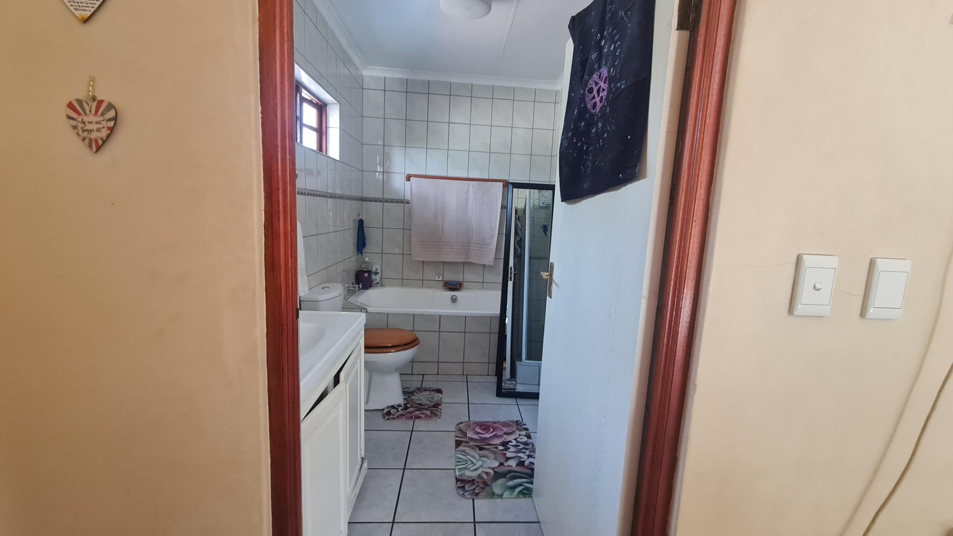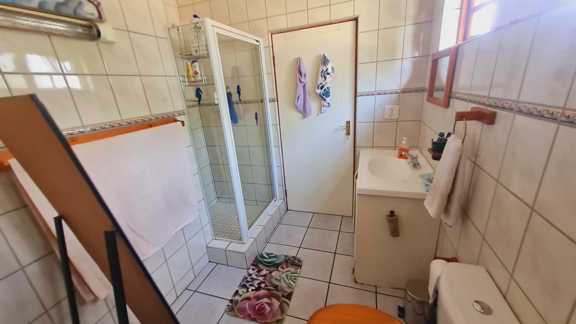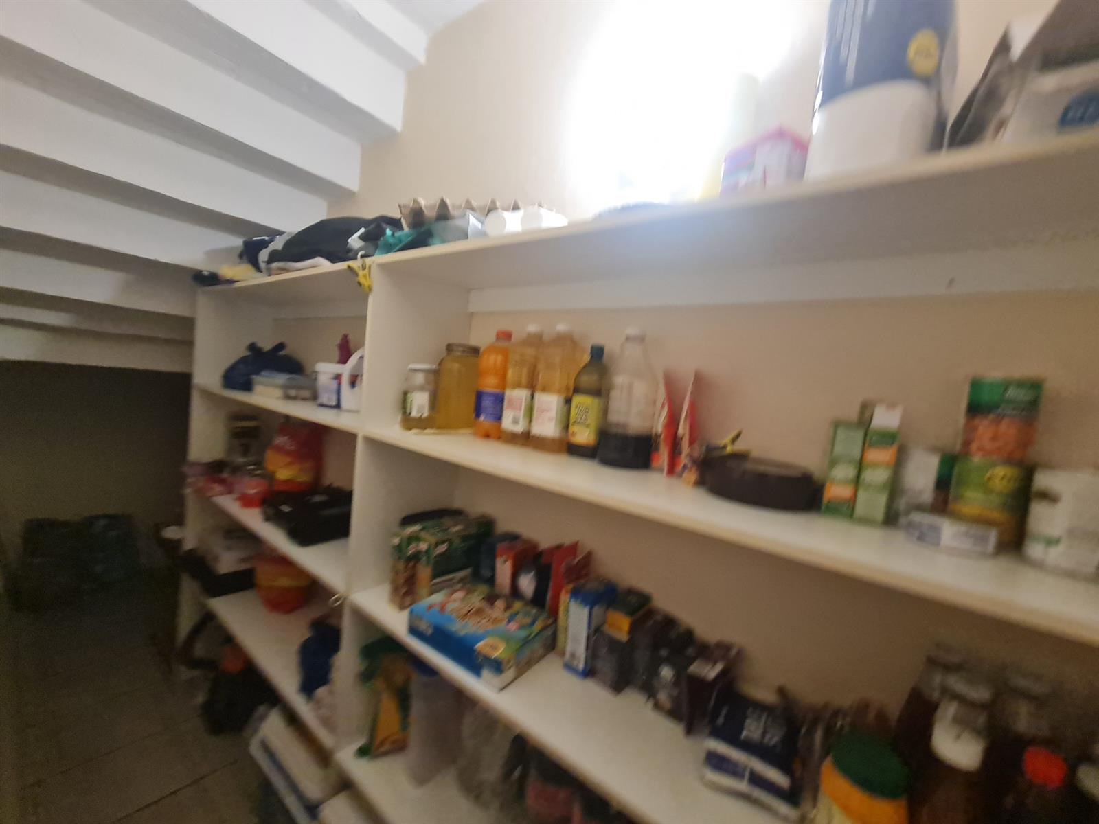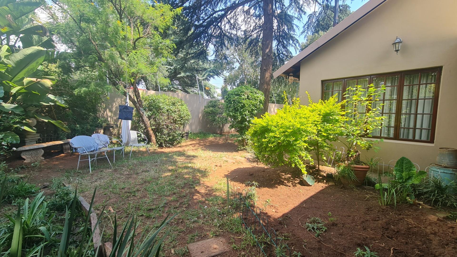 The downstairs area offers an open plan dining, TV Room/study area with fireplace, the perfect office space for a work from home professional and a spacious lounge. This area flows seamlessly onto an enclosed patio, with louvered roof that can open and close to allow for adjustable shading and protection from rain, perfect for entertaining family and friends. The spacious and well-kept garden provides a safe space for kids and pets to run and play. The modern kitchen offers ample work and storage space, hob and undercounter oven, double basin, connections for a dishwasher and washing machine, space for a fridge and a pantry. From the kitchen there is access to a small courtyard with washing lines.