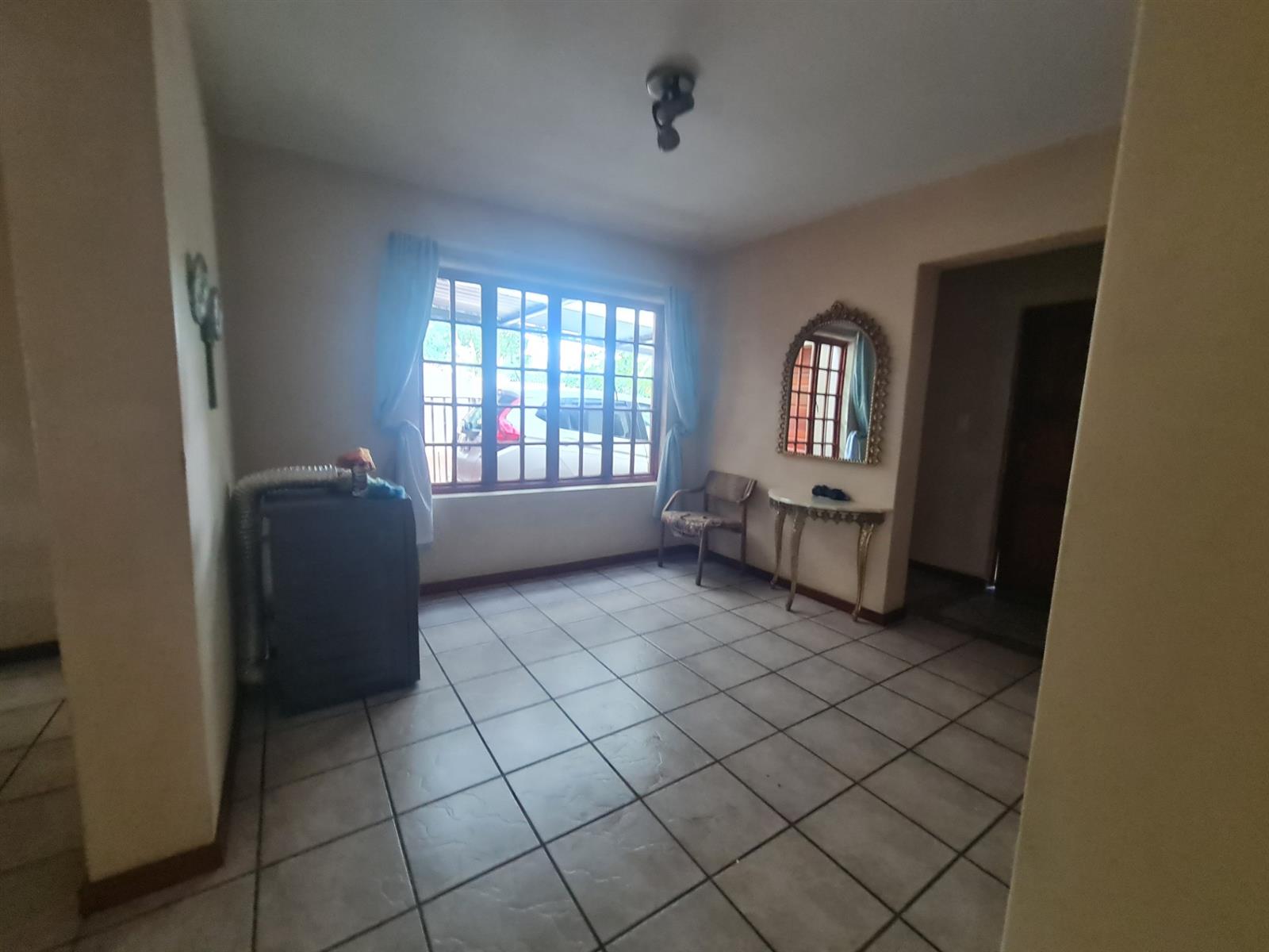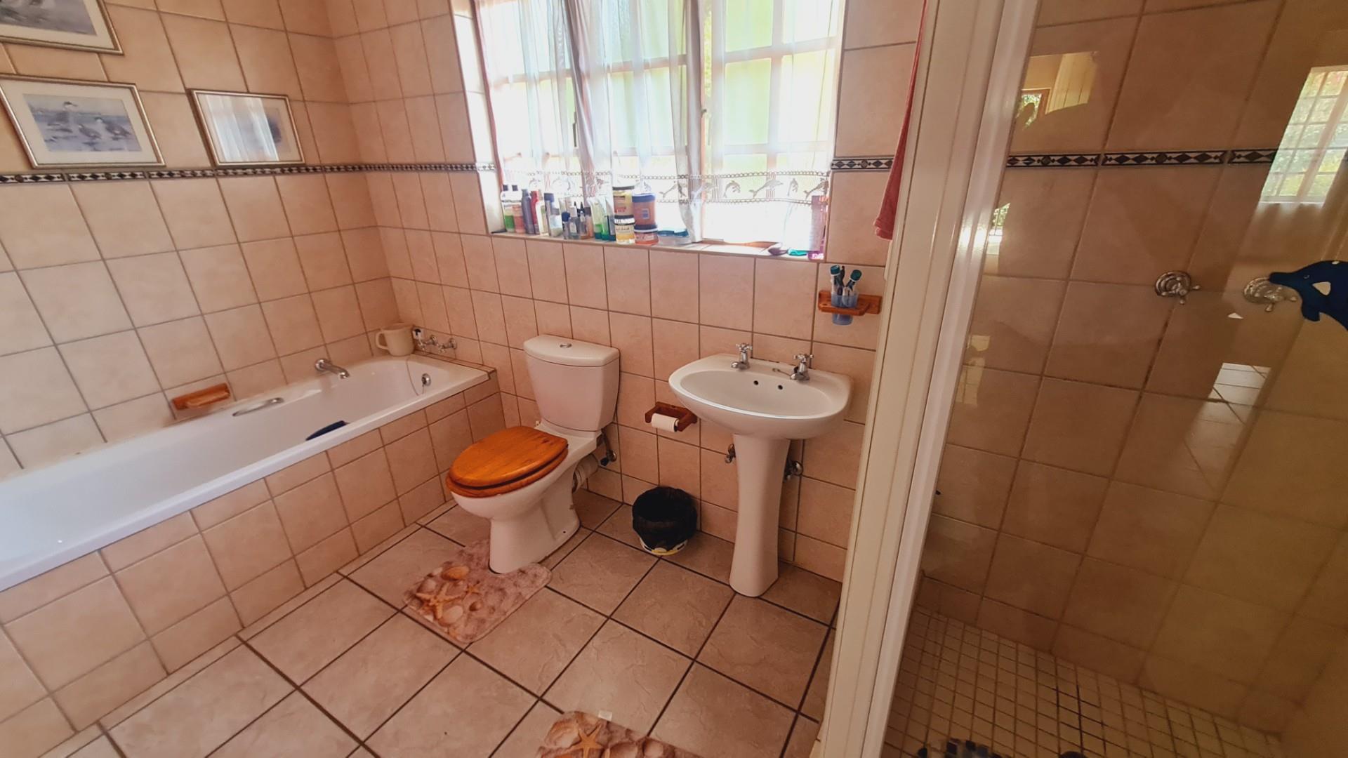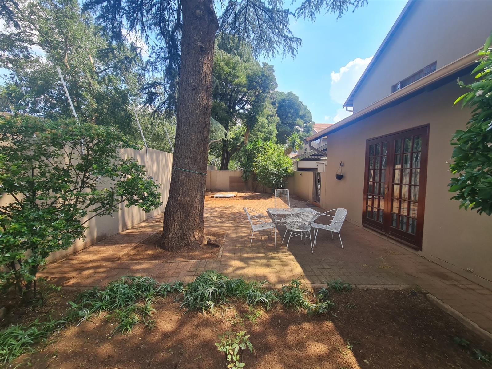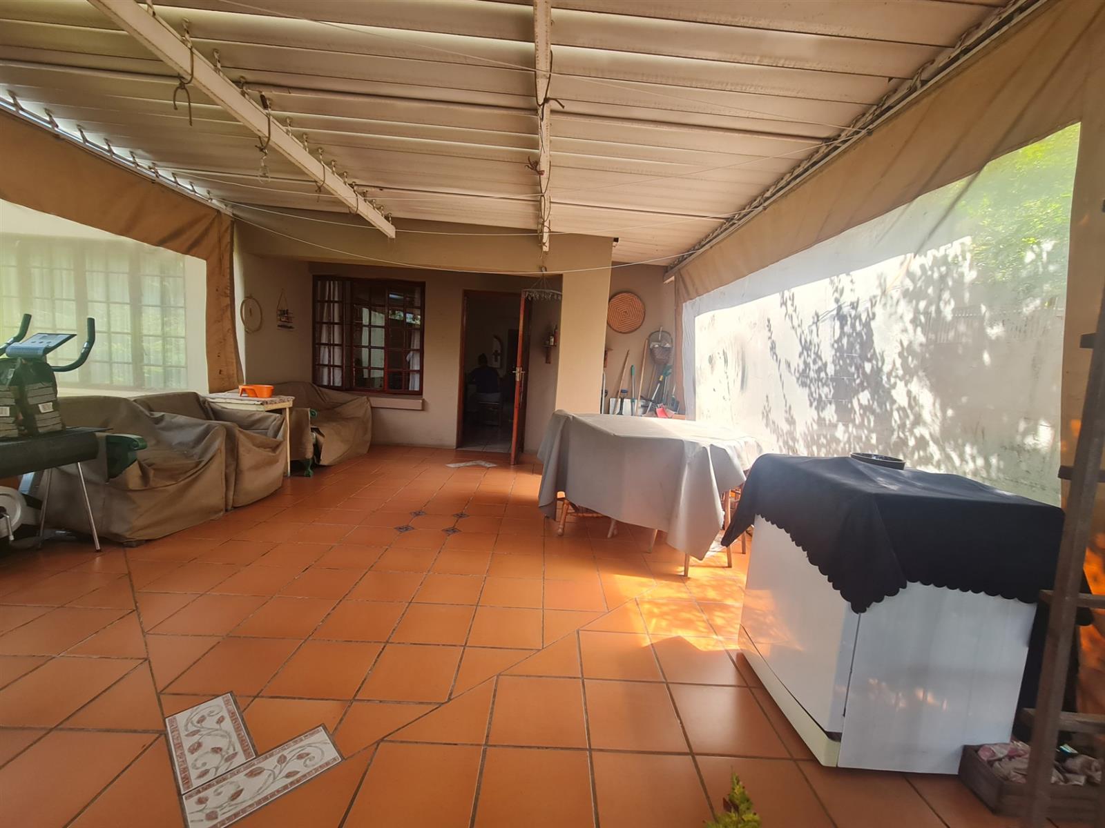 The downstairs area offers an open plan dining, TV Room/study area with fireplace, the perfect office space for a work from home professional and a spacious lounge. This area flows seamlessly onto an enclosed patio, with louvered roof that can open and close to allow for adjustable shading and protection from rain, perfect for entertaining family and friends. The spacious and well-kept garden provides a safe space for kids and pets to run and play. The modern kitchen offers ample work and storage space, hob and undercounter oven, double basin, connections for a dishwasher and washing machine, space for a fridge and a pantry. From the kitchen there is access to a small courtyard with washing lines.