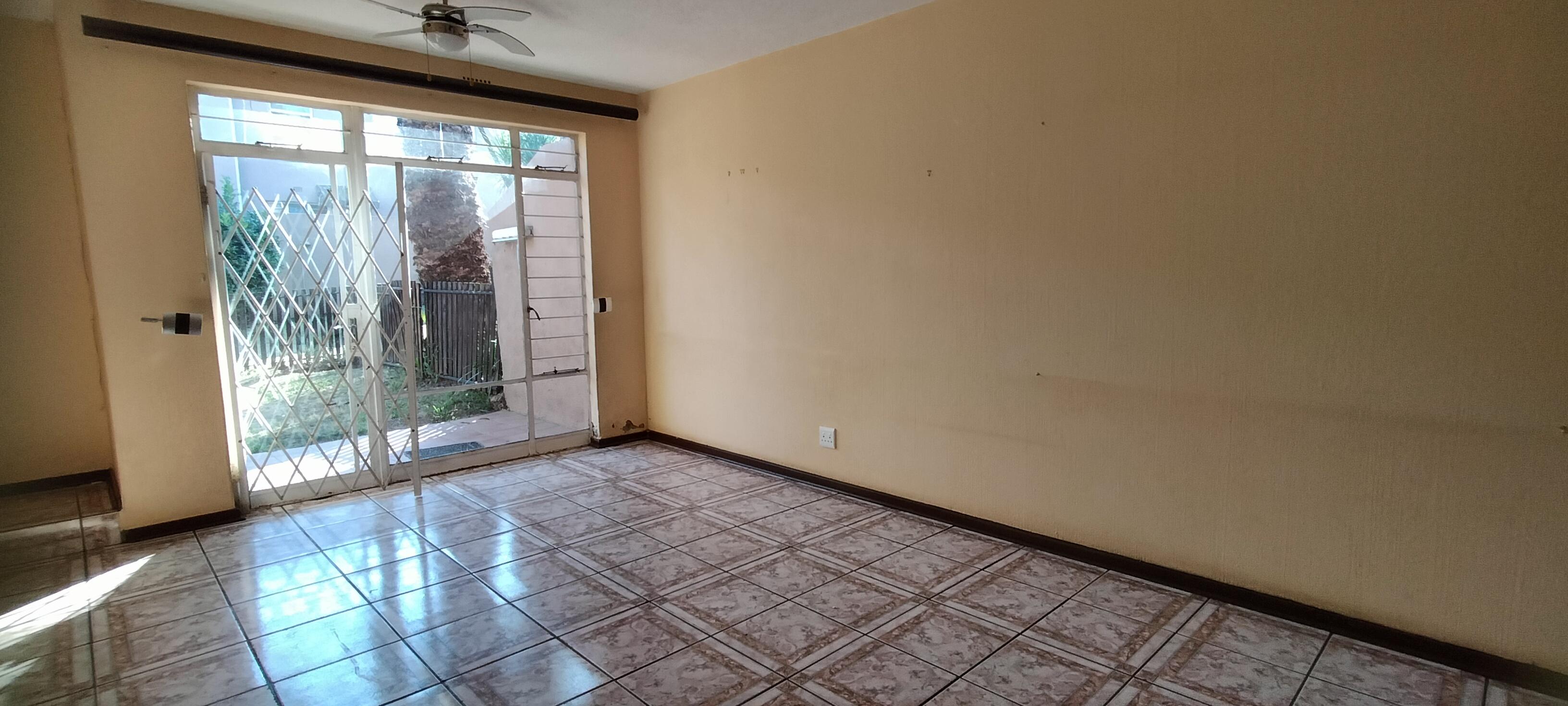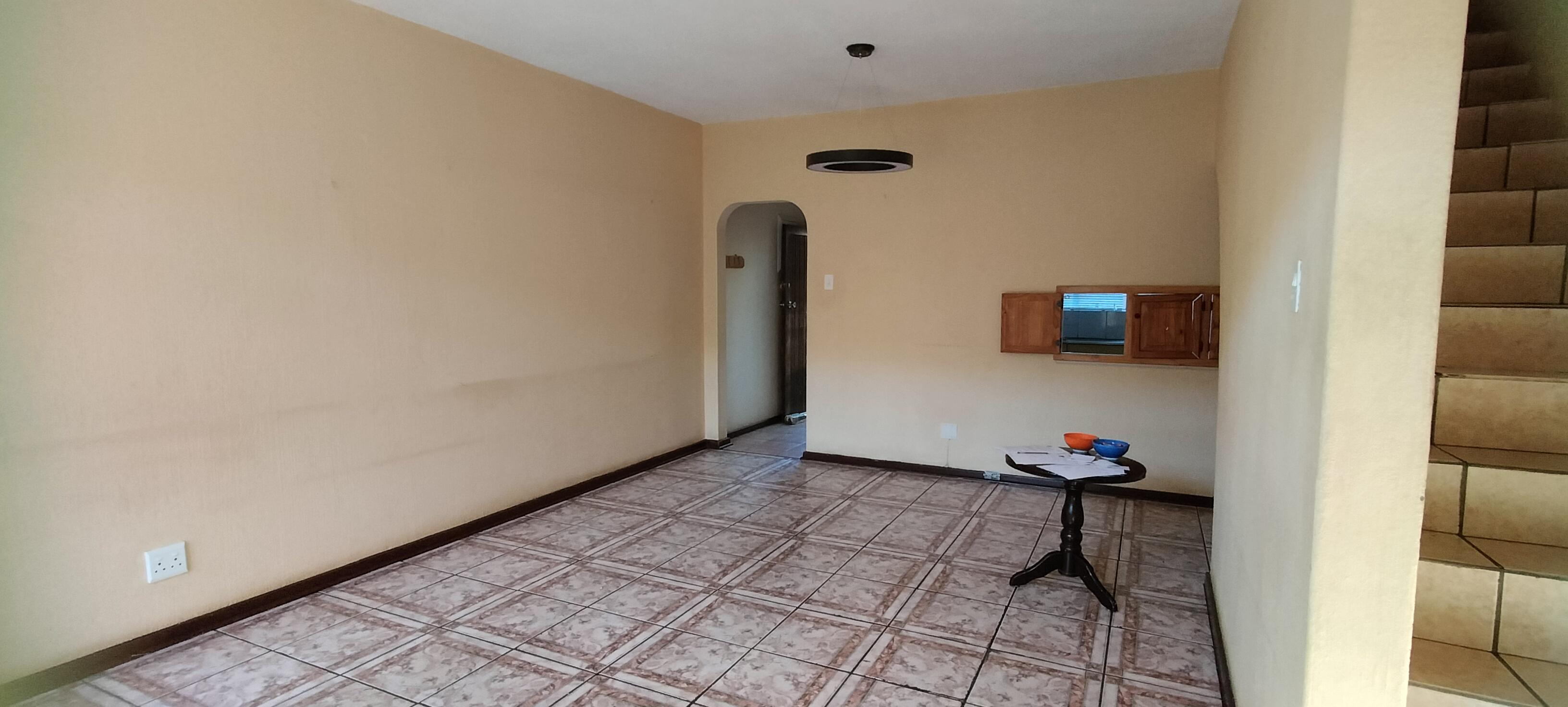 A spacious 2 bedroom, lounge ,dining room townhouse for sale. Tiles downstairs and carpets and built in cupboards in both rooms. A bath, toilet and basin for the family.