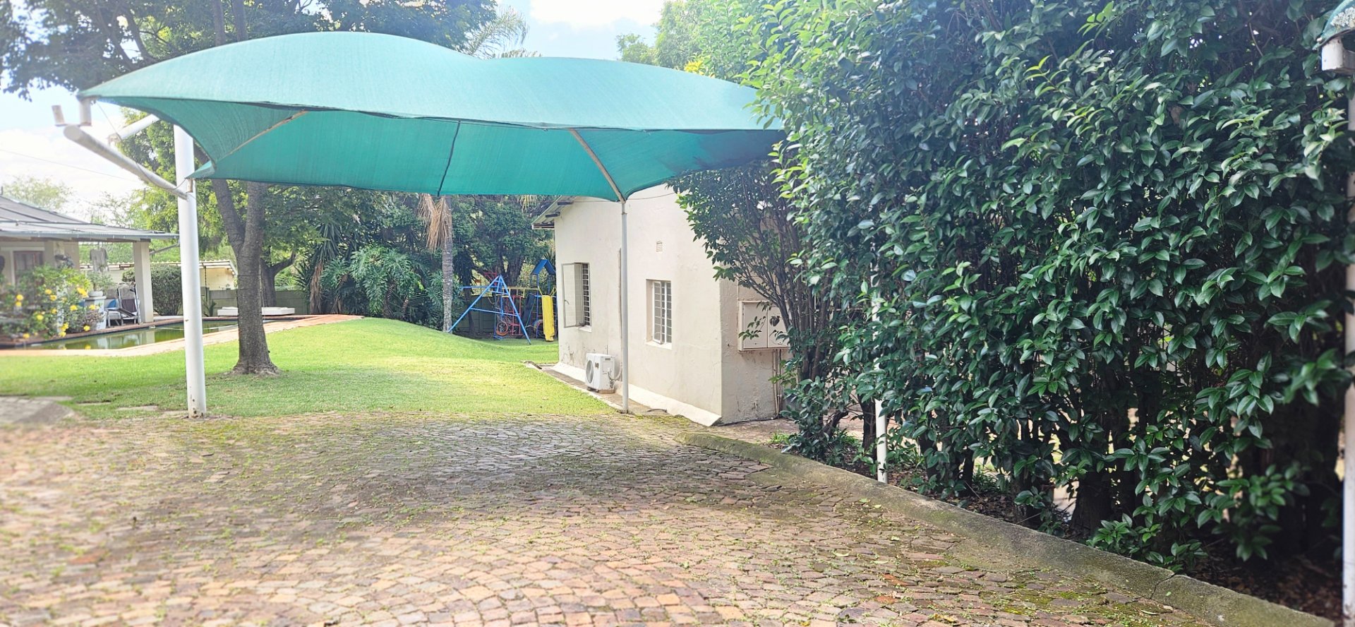 Spacious and private 1.5 bedroom garden cottage offering an en-suite full bathroom, a large kitchen, and a generously sized lounge. The unit opens onto a small private patio and includes two shaded parking bays under shade netting.