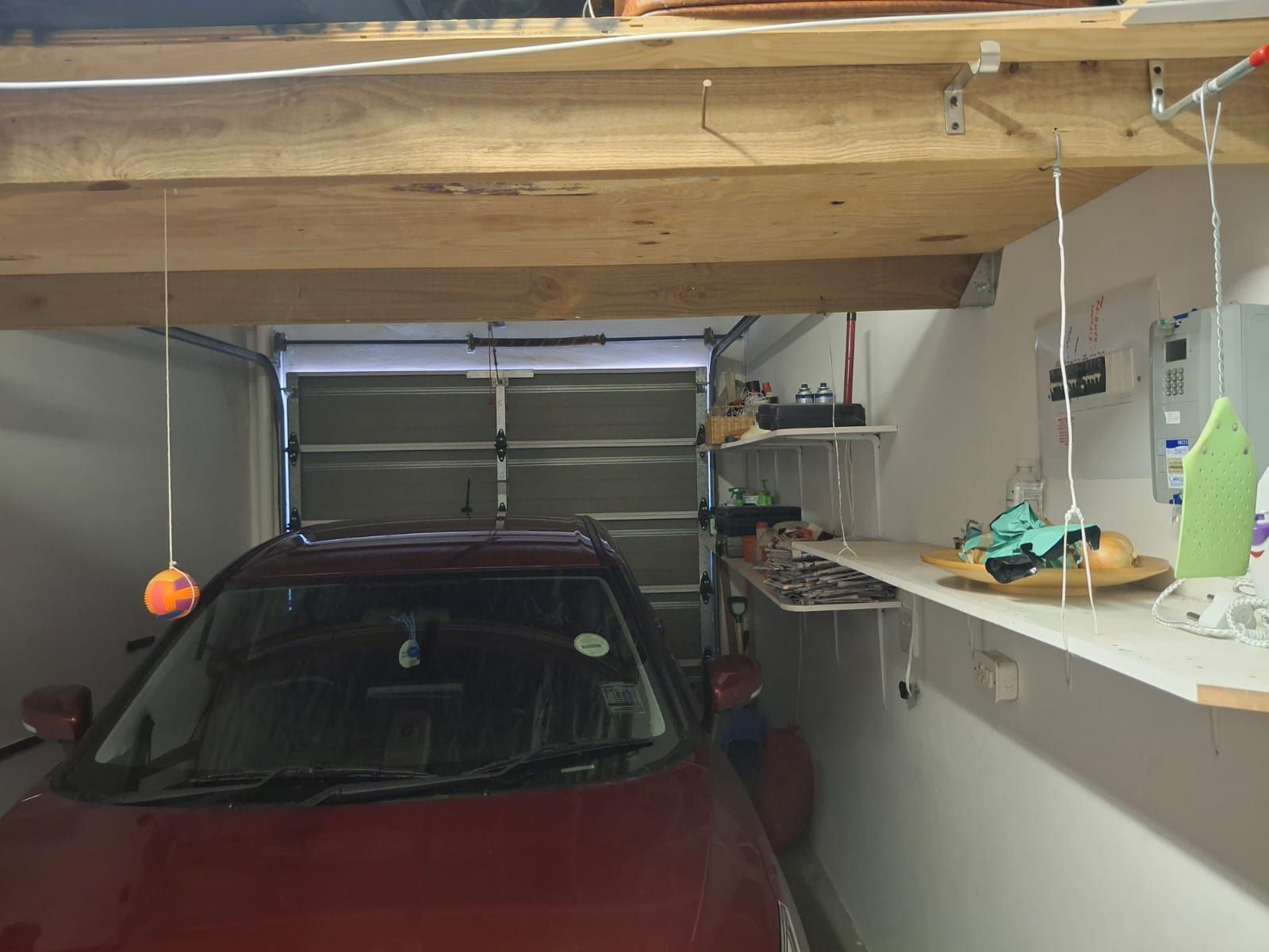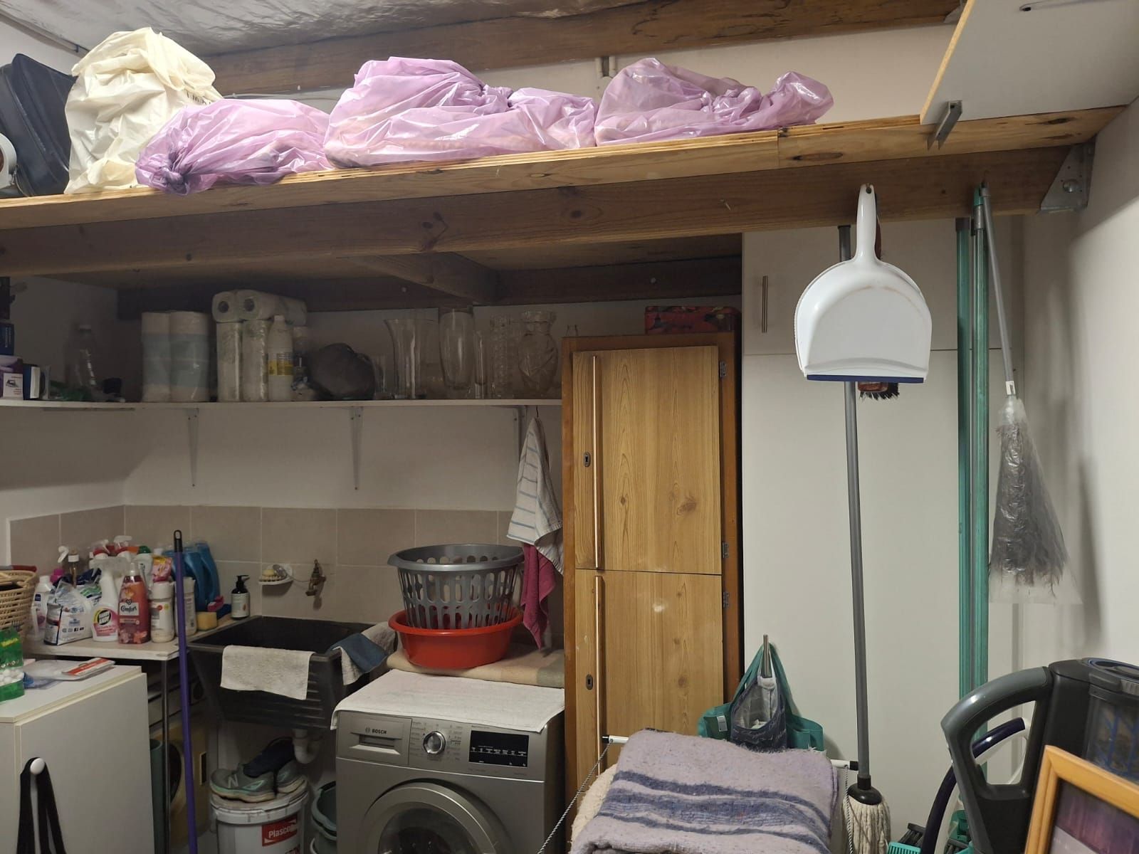 Single automated garage with built-in cupboards and laundry space for washing machine & tumble dryer