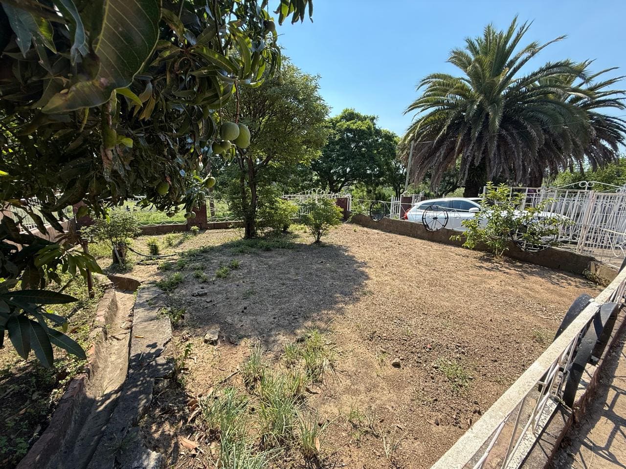 The garden is easily managed and includes two established mango trees that are currently producing. This outdoor space is secure and practical, offering both usability and privacy.