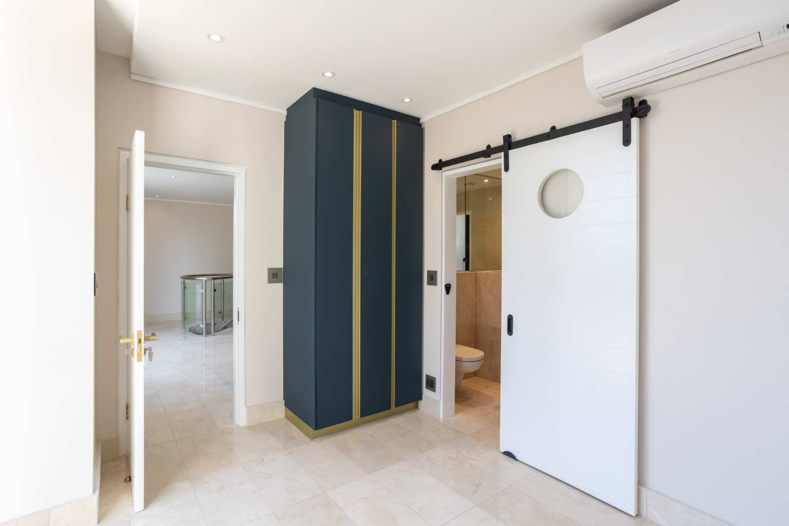 On the lower level, two spacious en-suite bedrooms feature built-in cabinetry and modern bathrooms, while a third upstairs en-suite bedroom opens onto a terrace, perfect for a peaceful morning coffee or enjoying sunset views.