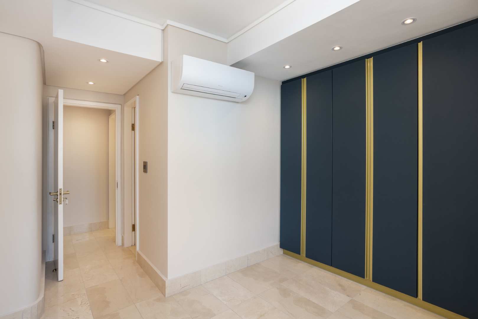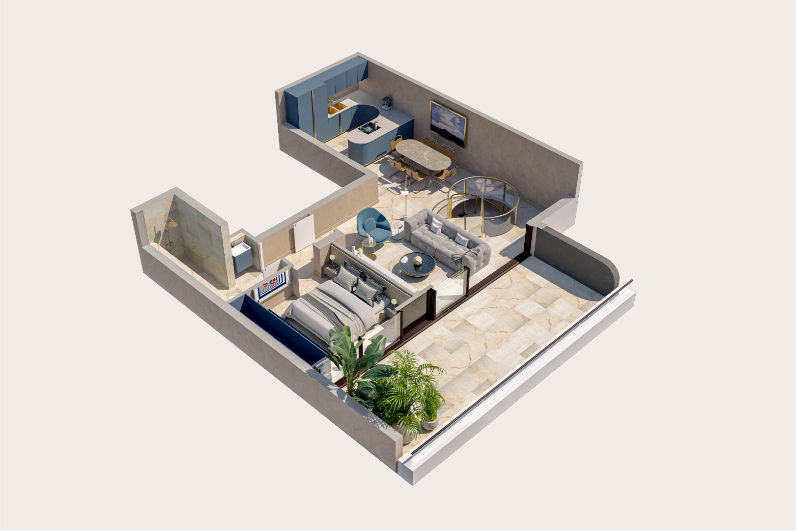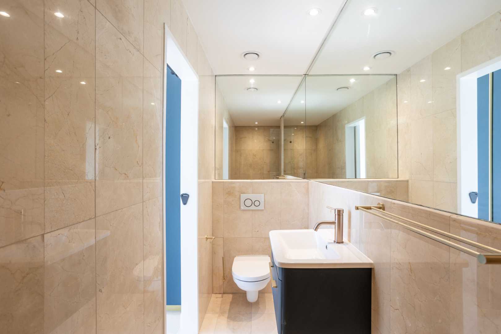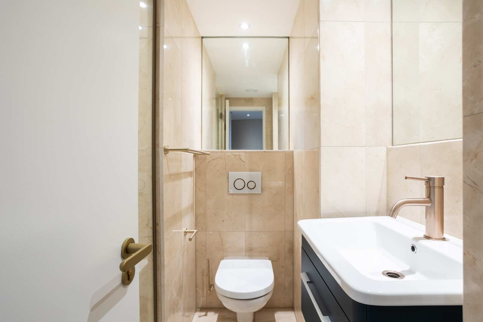 The light-filled living spaces, featuring high ceilings, large windows and contemporary finishes, create a sense of calm and sophistication. The open-plan layout seamlessly connects the kitchen, dining and lounge area to the terrace, offering effortless indoor-outdoor flow.