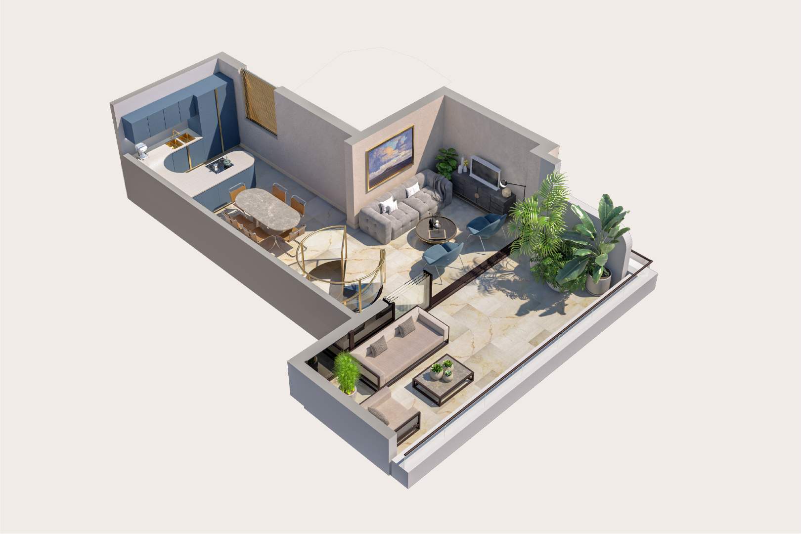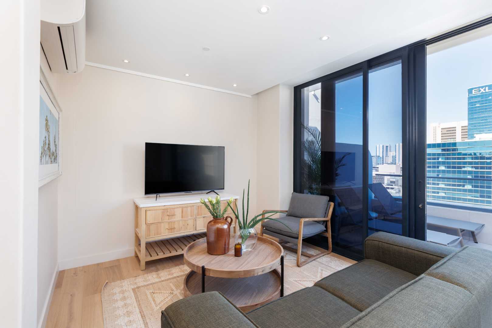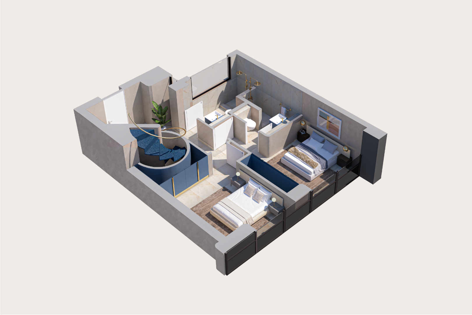 Featuring two spacious bedrooms, each finished to the highest standards with generous storage and air-conditioning for year-round comfort. Two contemporary bathrooms, styled with premium finishes, complete the home’s elegant interior.