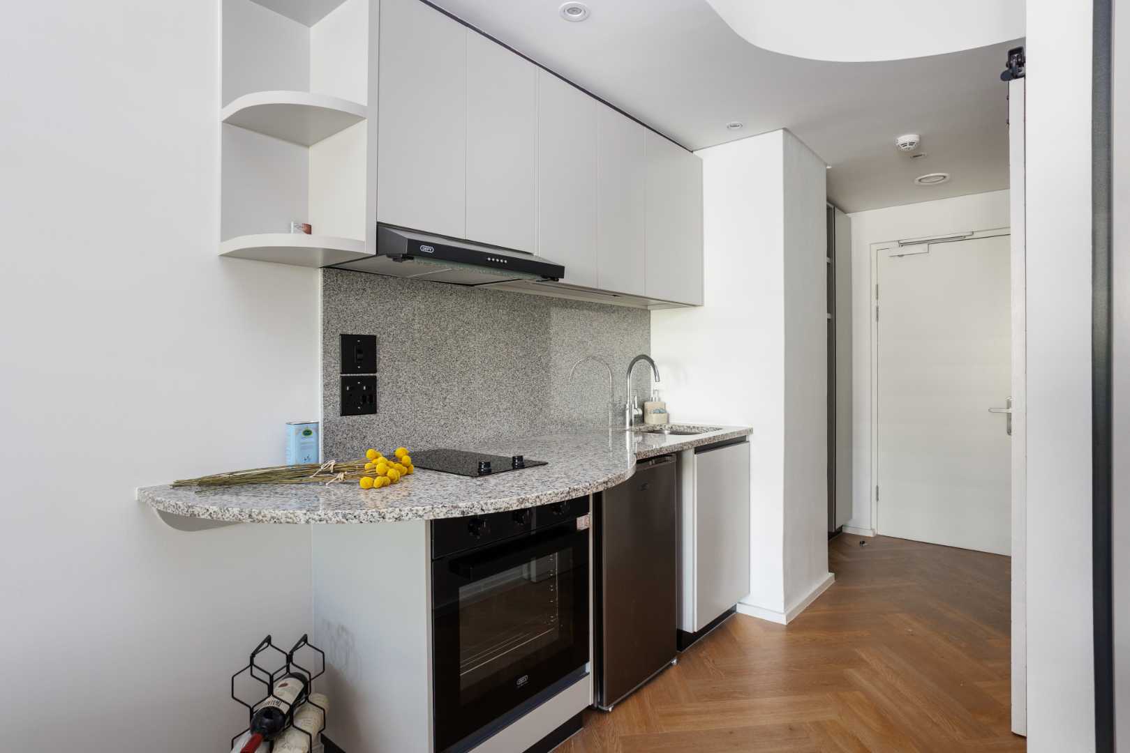 This stylish 45m2 studio apartment at Zeeland Pier delivers elevated city living with a smart, efficient layout suited to both end-users and savvy investors. The open-plan kitchen and living area flow seamlessly onto a private balcony, creating a light, airy living environment. The sleeping area is well-defined and fitted with generous built-in cupboards, complemented by a sleek contemporary bathroom, quality finishes and a timeless neutral palette.