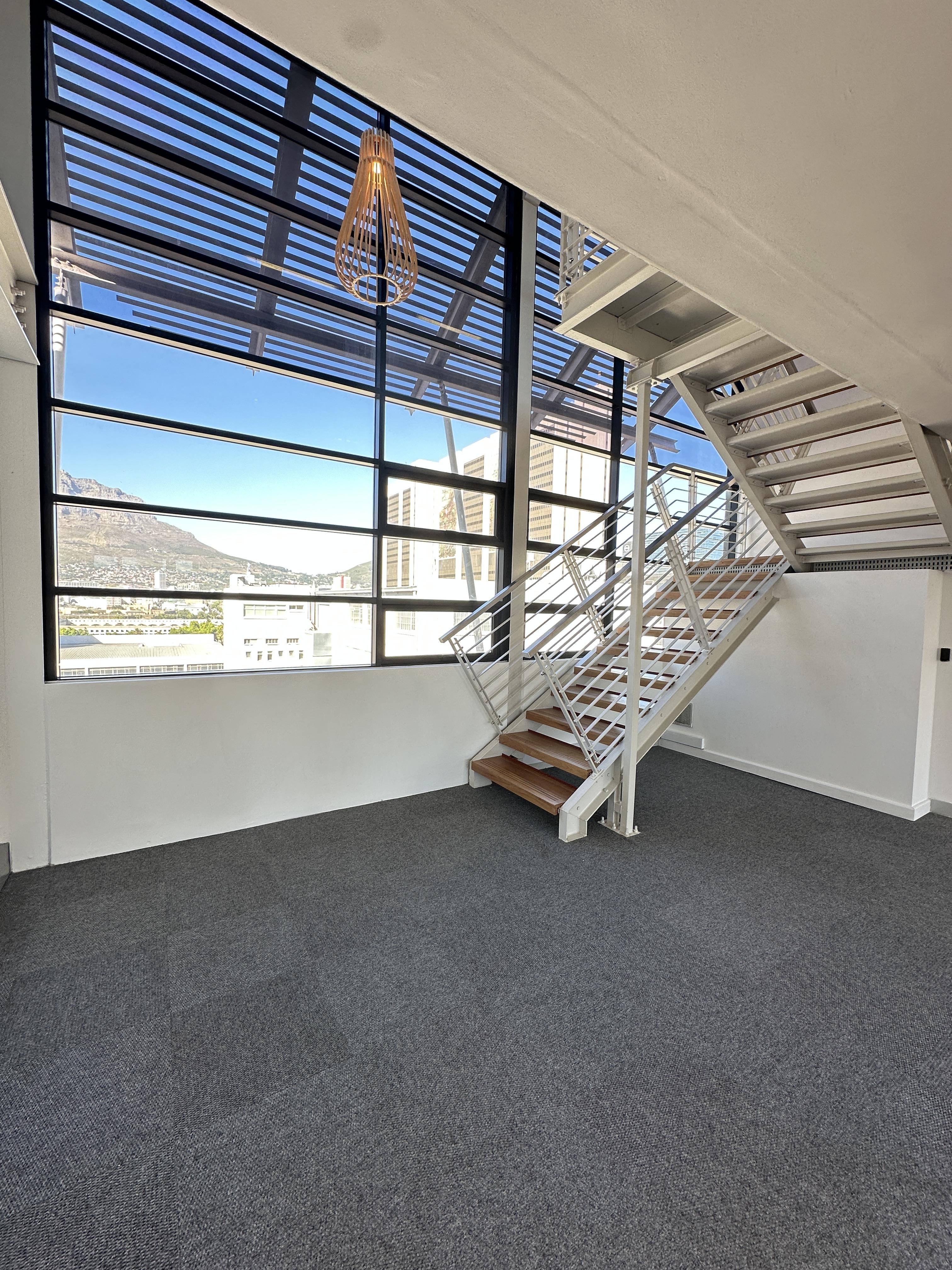 The 7th and 8th floors are leased together as a single unit, providing a total of 594m2 of high-quality office accommodation. The space comprises 534m2 of bright, open-plan offices complemented by a generous 60m2 private terrace, offering panoramic views of the city skyline and Table Mountain.