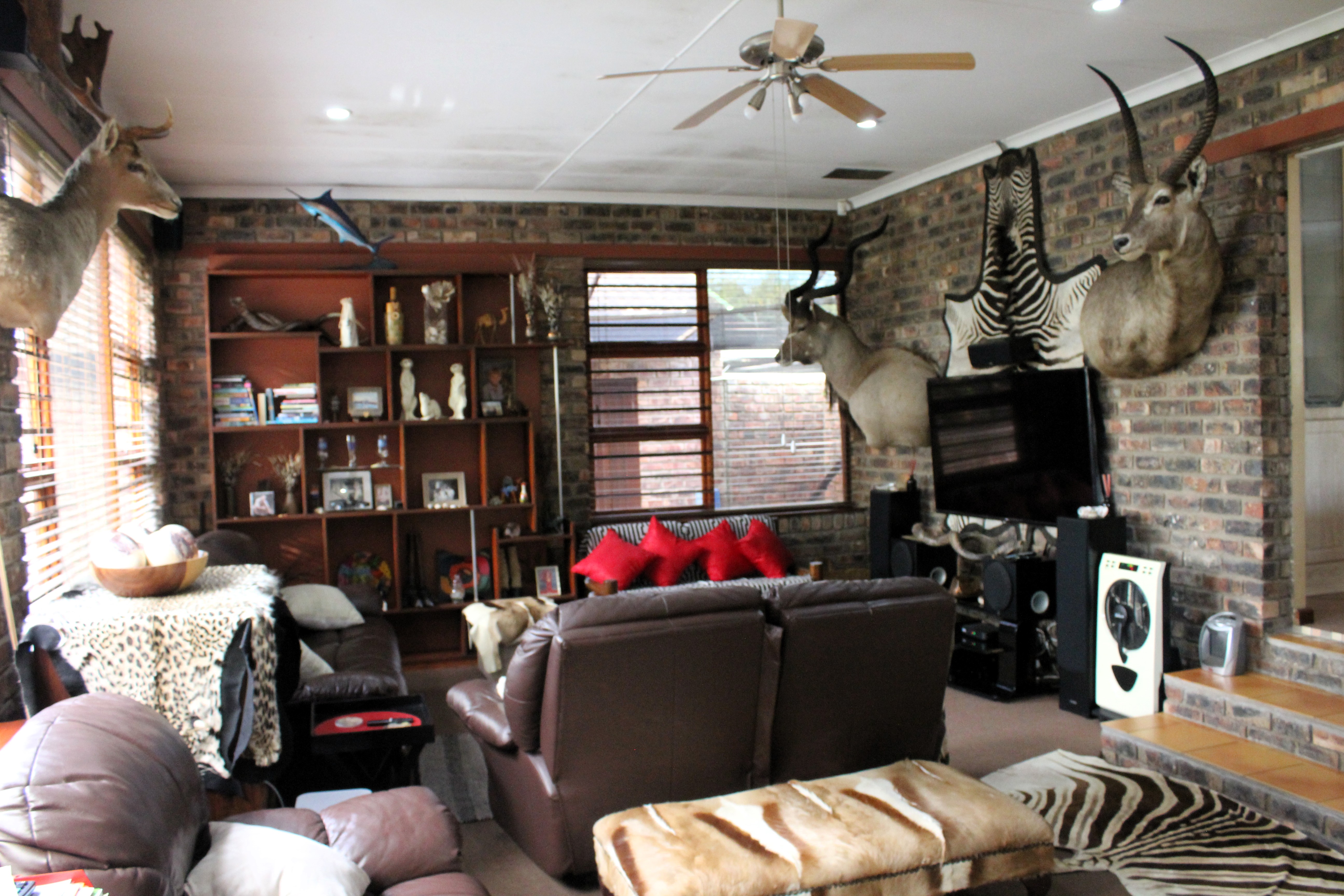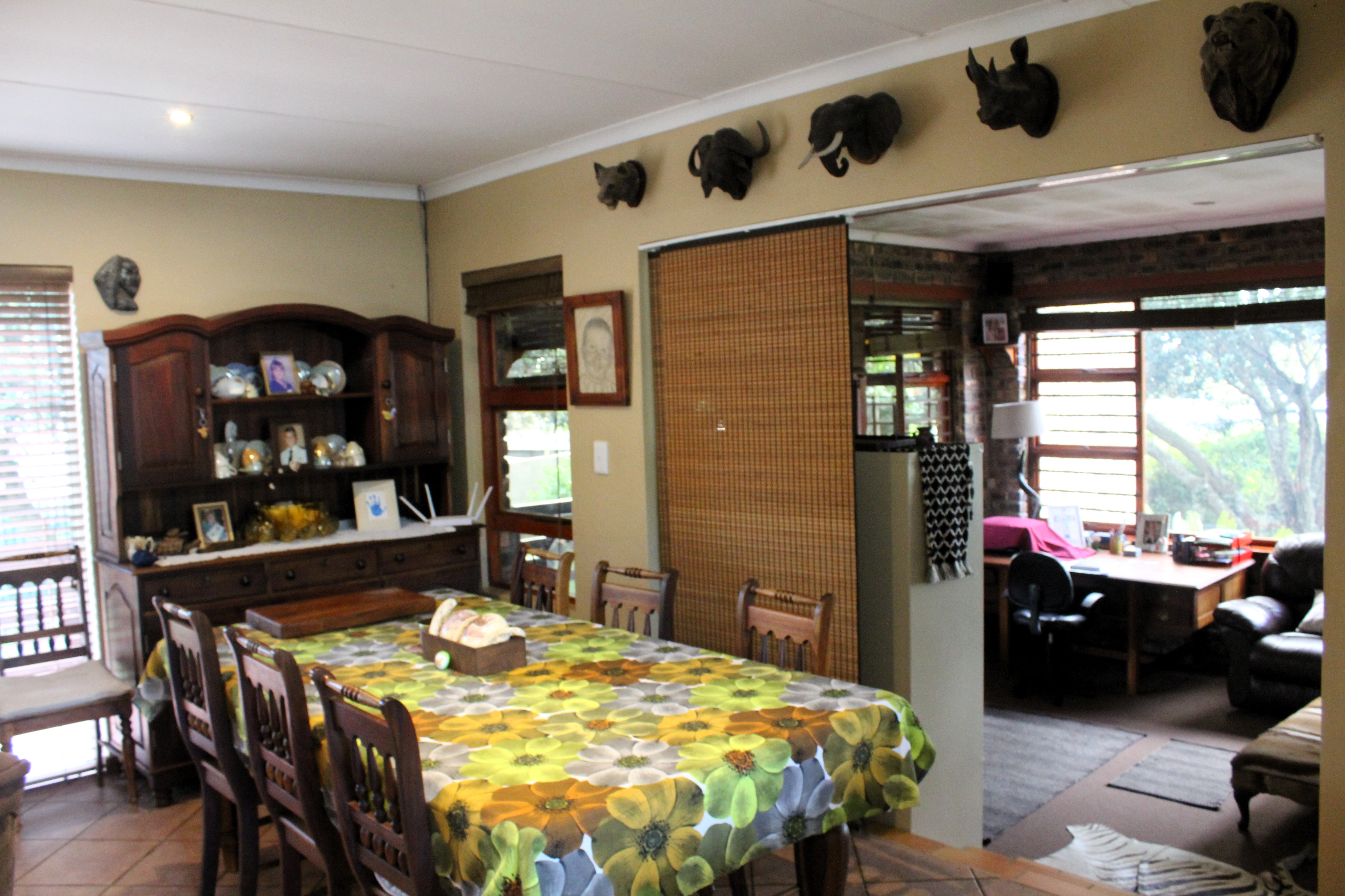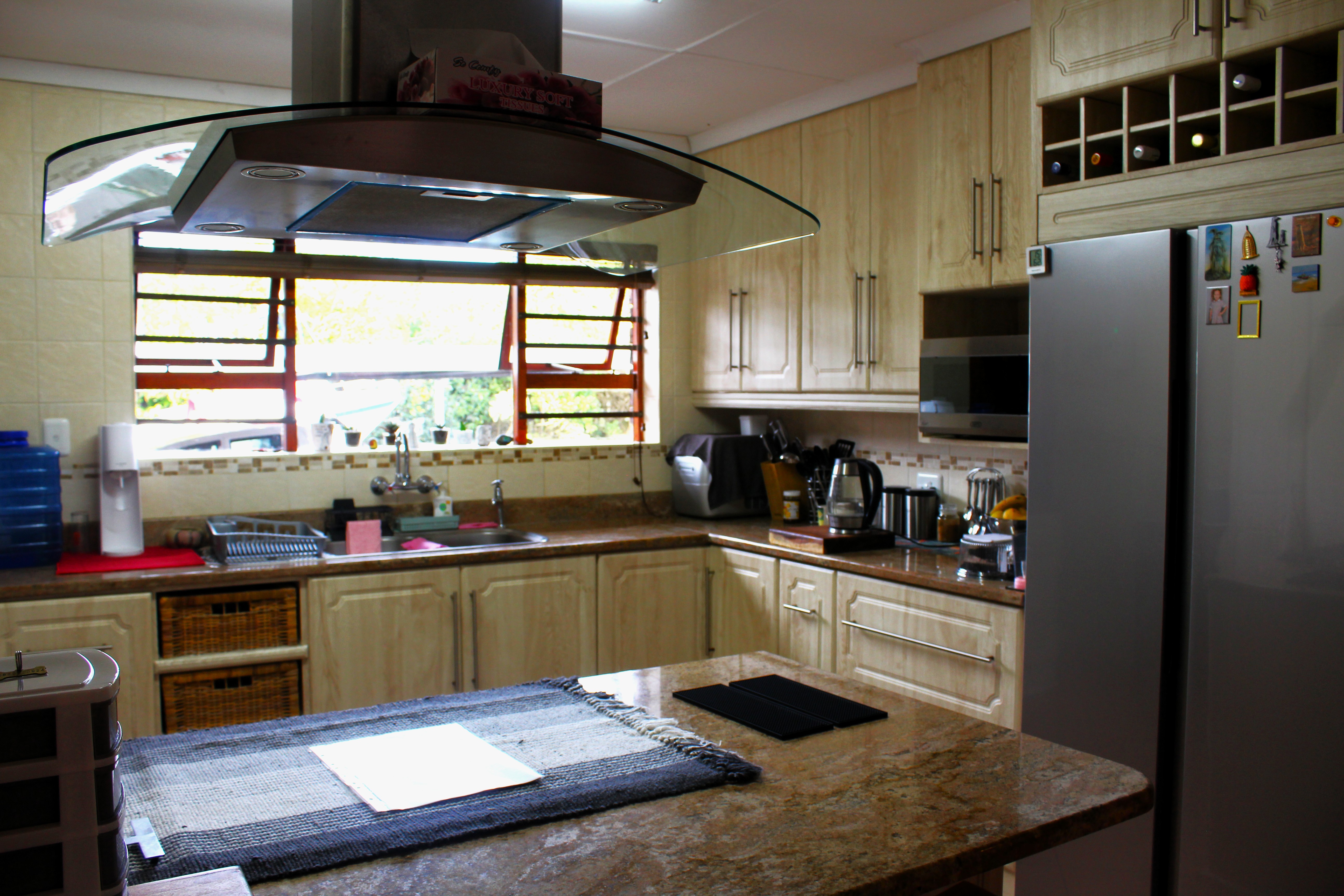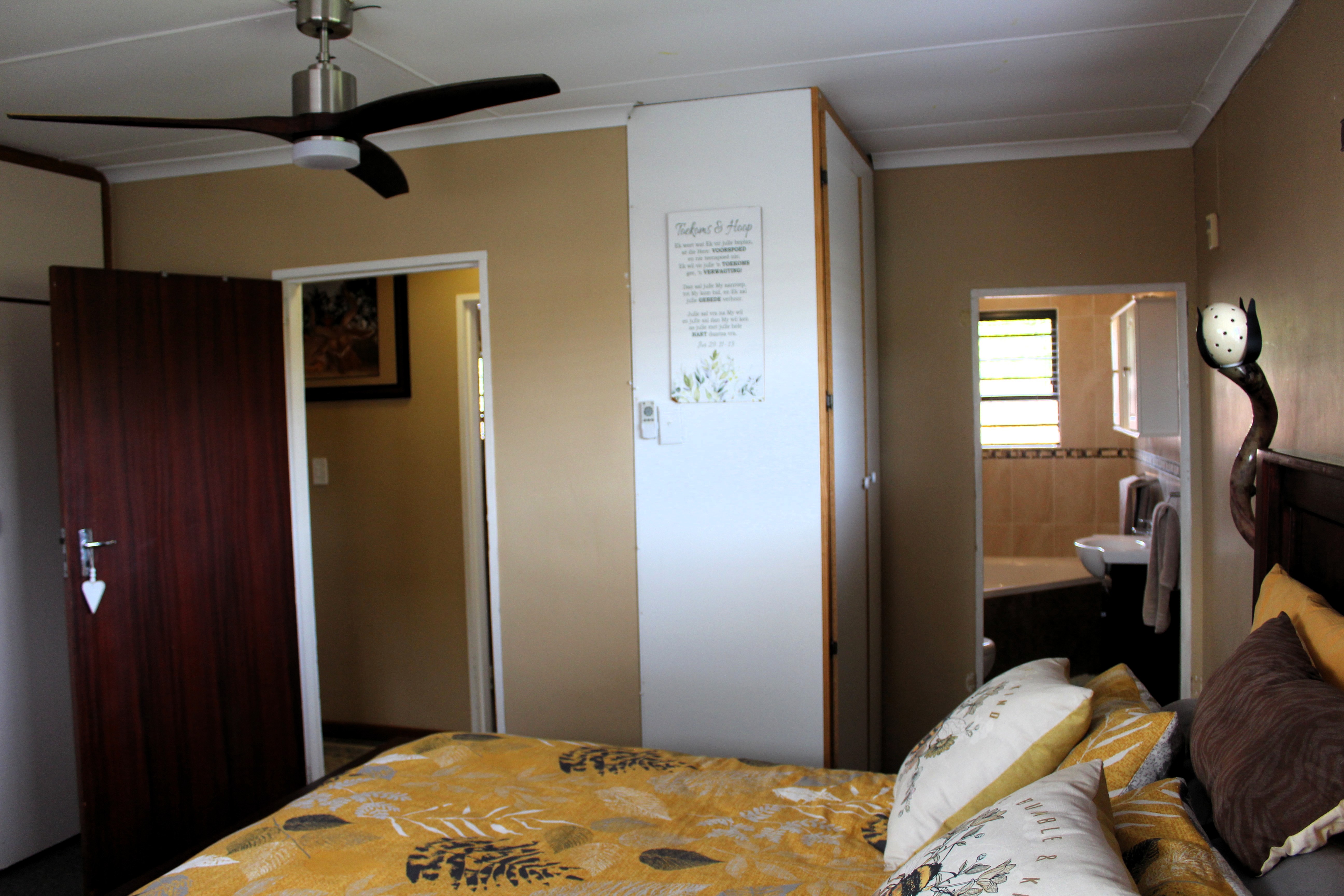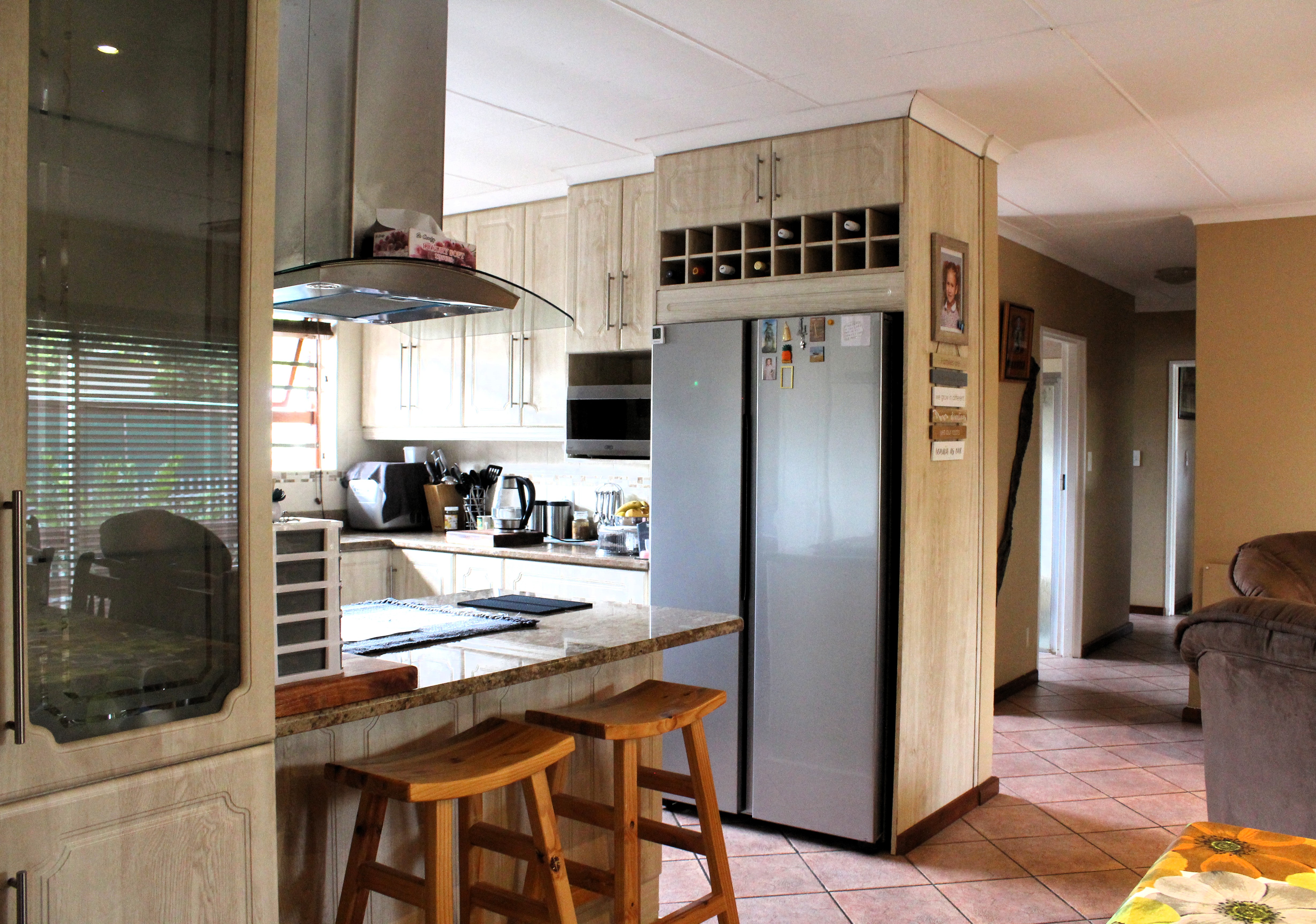 The main house is thoughtfully designed for effortless entertaining and comfortable living. The open-plan kitchen seamlessly connects to the dining and lounge areas, creating a spacious and welcoming environment. Step down into the cozy TV lounge, which opens onto a covered patio complete with a built-in braai — the perfect setting for hosting friends and family year-round.