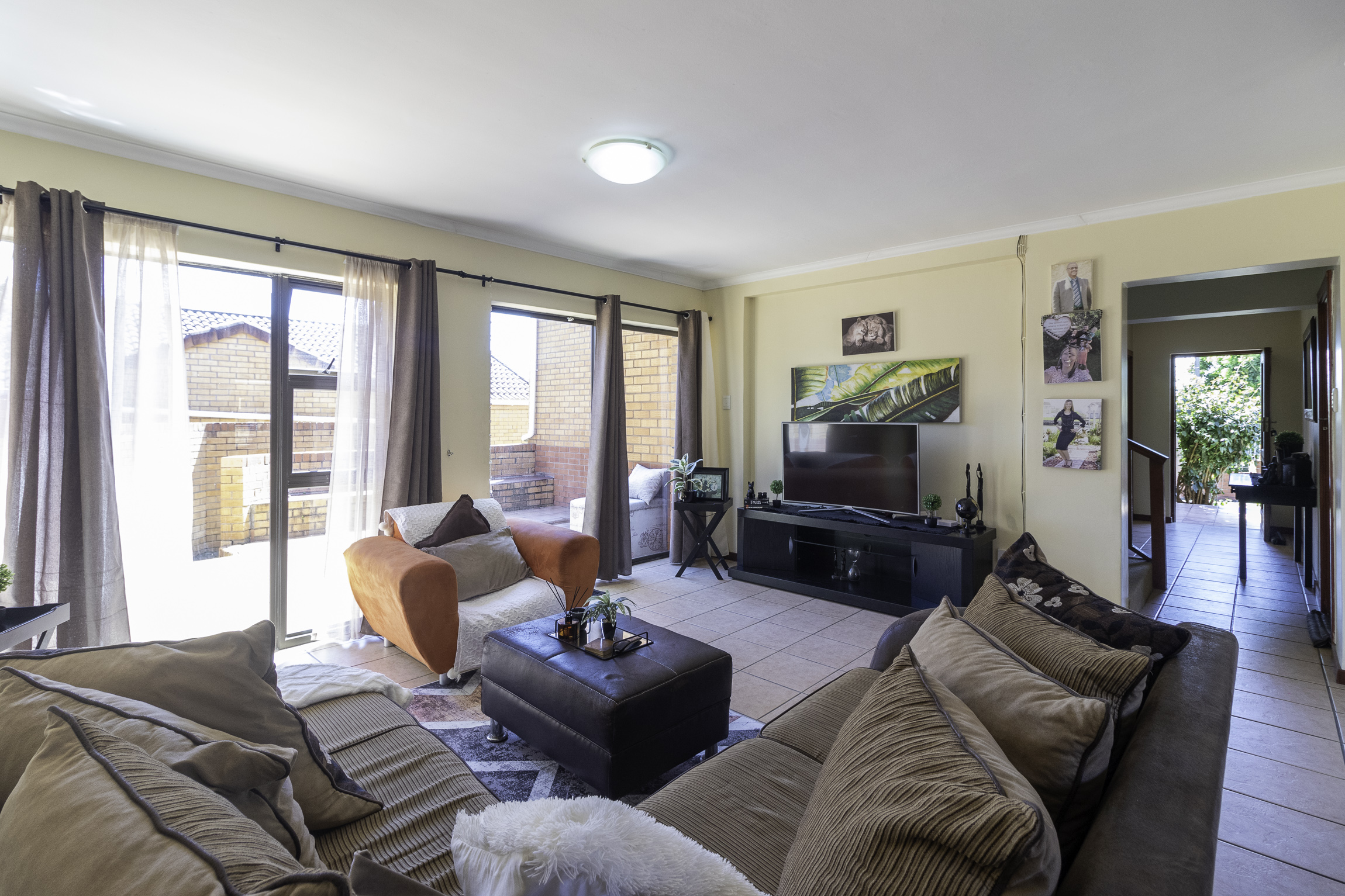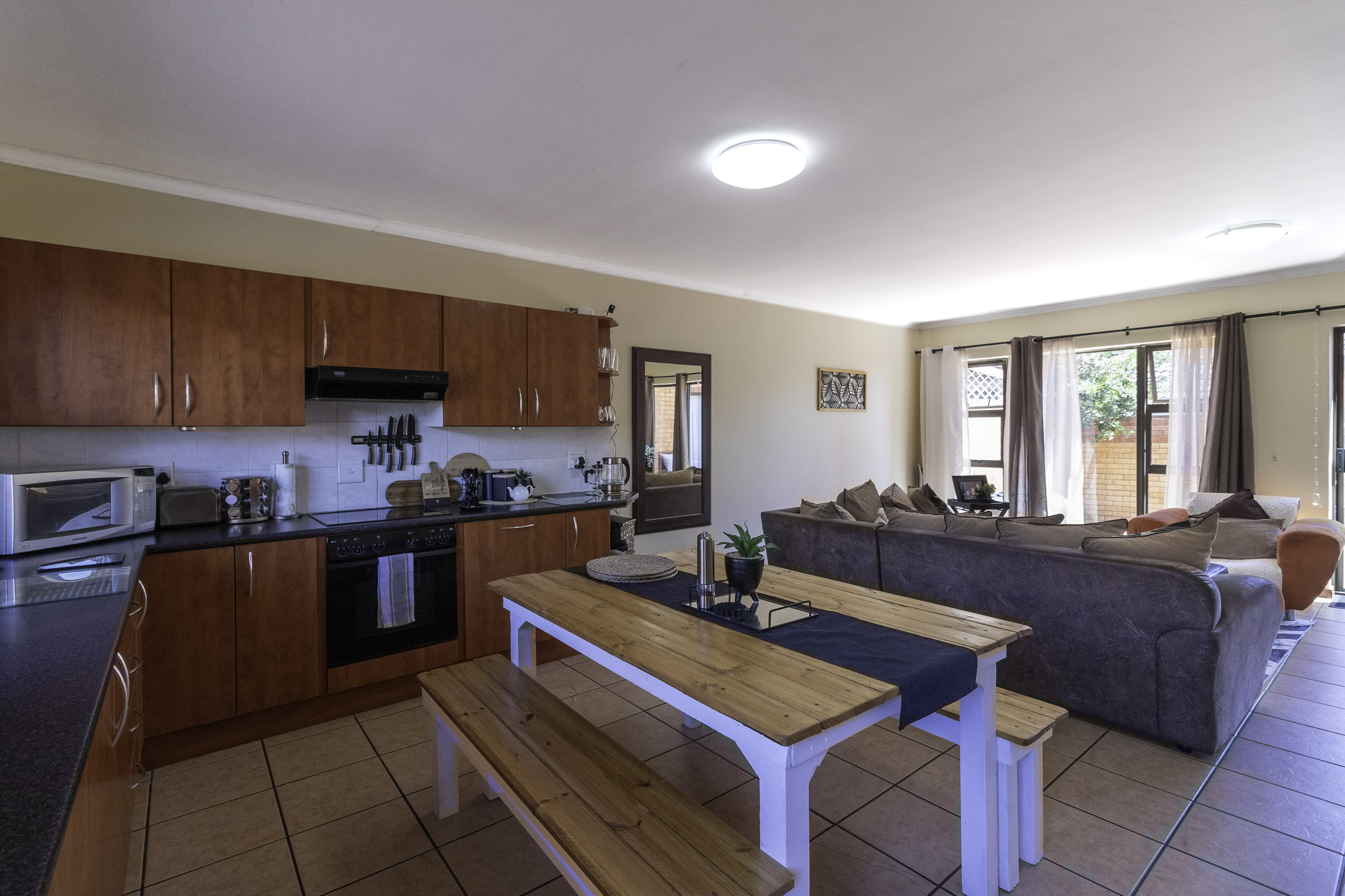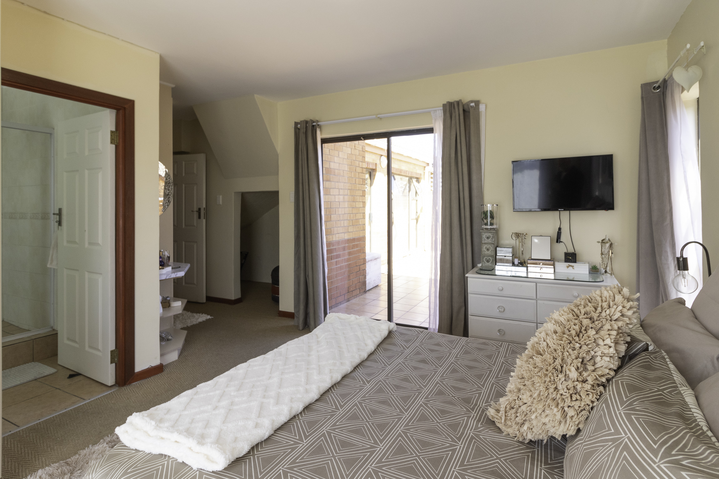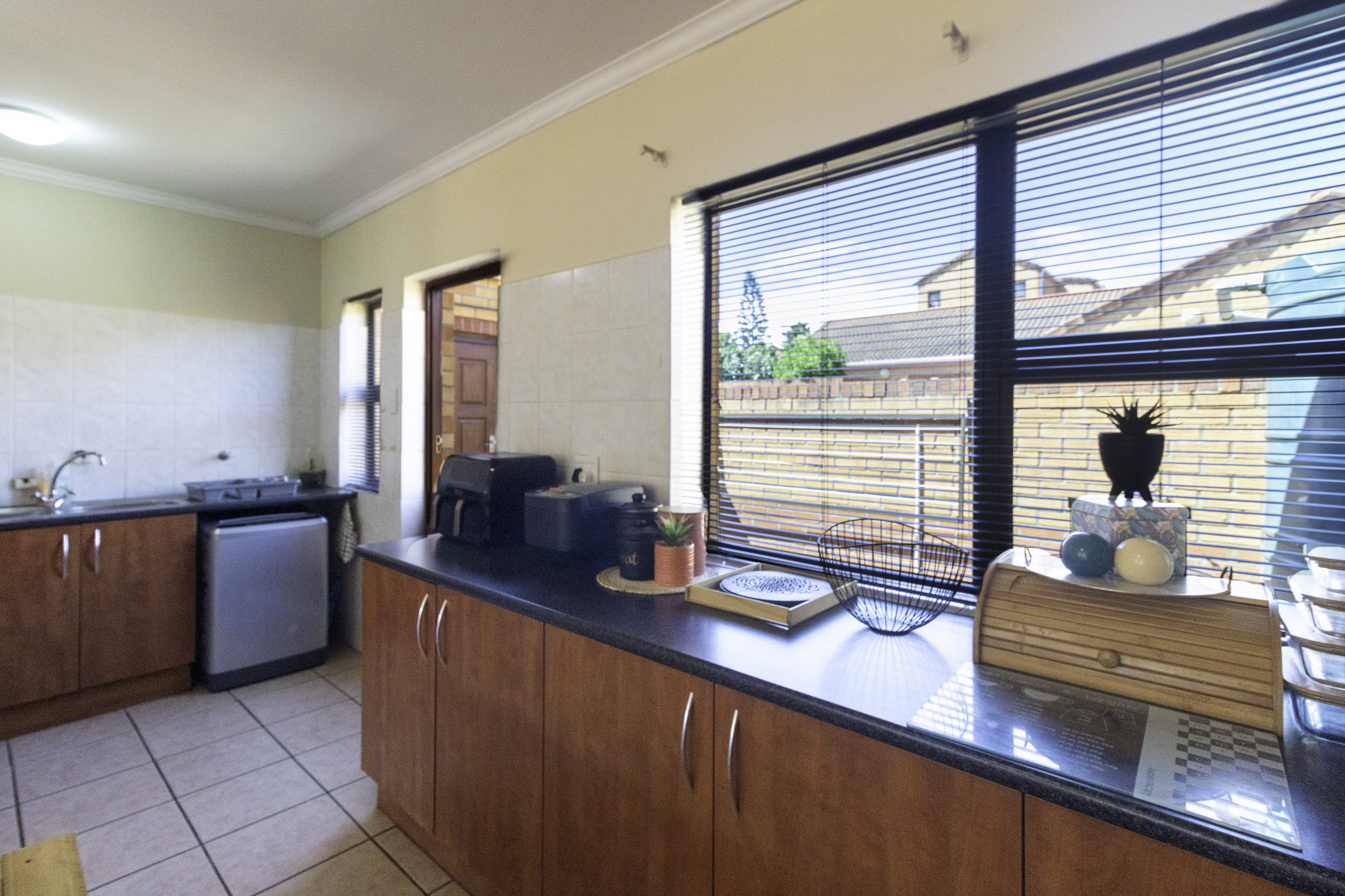 Step into a home designed for comfort and easy living in the popular Panorama View complex. With three generously proportioned bedrooms and inviting living spaces, this property is ideal for families or those who enjoy both privacy and convenience. The entrance leads into an open plan lounge and dining area that creates a welcoming atmosphere for family time or entertaining friends. A practical kitchen finished in melamin flows out to a private courtyard where a rainwater tank adds to the home’s functionality and sustainability. The main bedroom, complete with en-suite bathroom, is conveniently located downstairs alongside a guest toilet. There is direct access to the double garage with an automated door. Upstairs, two additional bedrooms and a full bathroom provide space for children, guests, or even a home office. Outside, a low maintenance garden offers room to relax in the sun or host casual braais without the upkeep of a large yard. The secure complex environment adds peace of mind, making it a great place to put down roots. If you’re looking for a property that combines comfort, practicality, and security, this townhouse is well worth viewing.