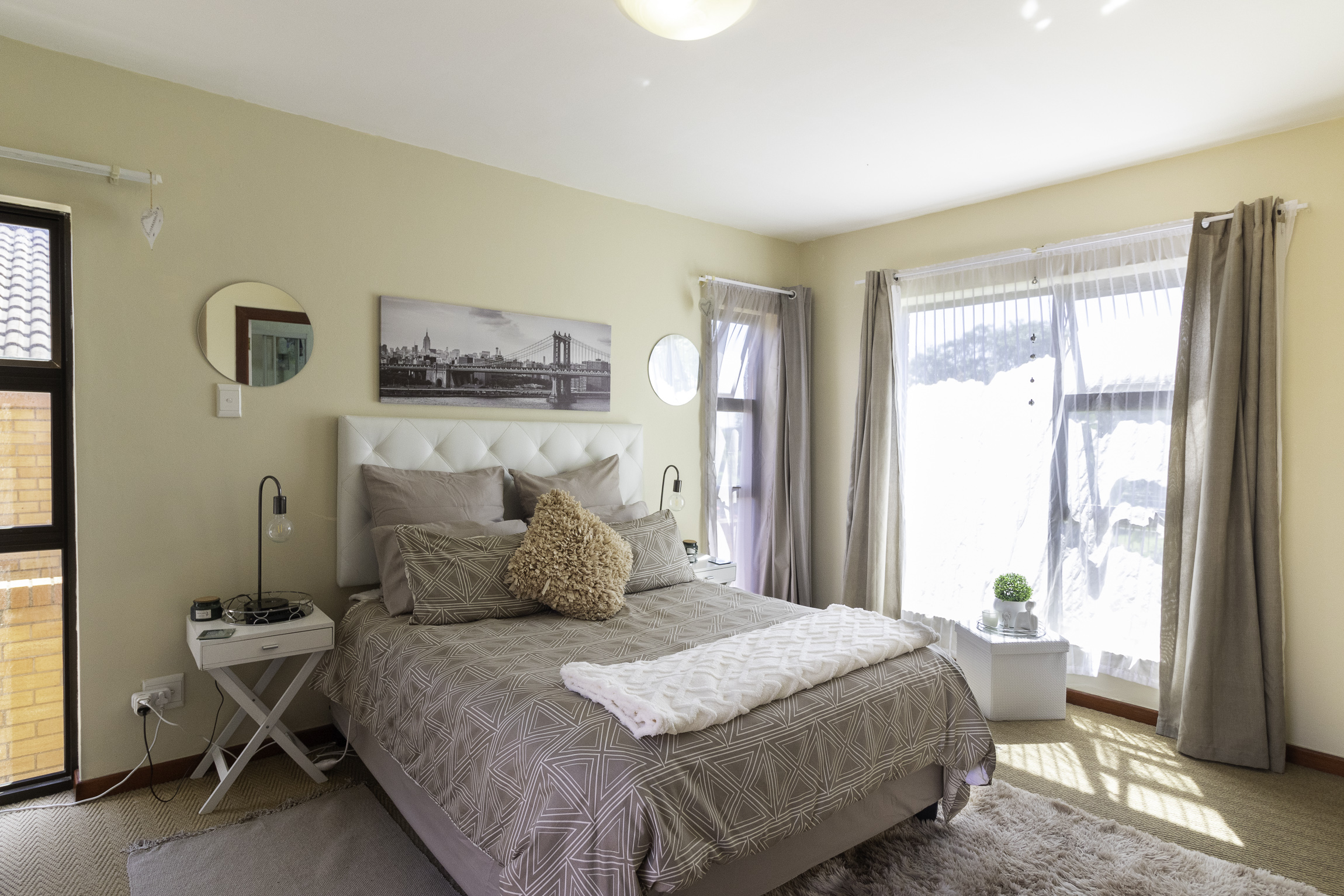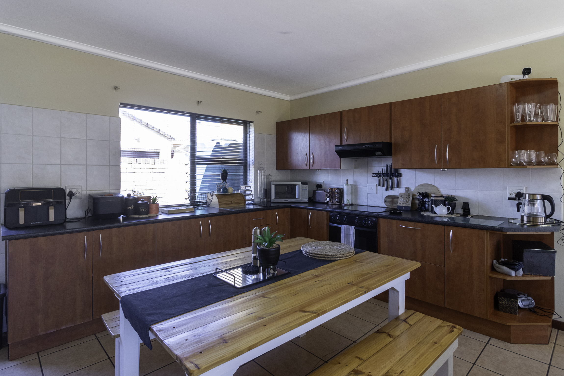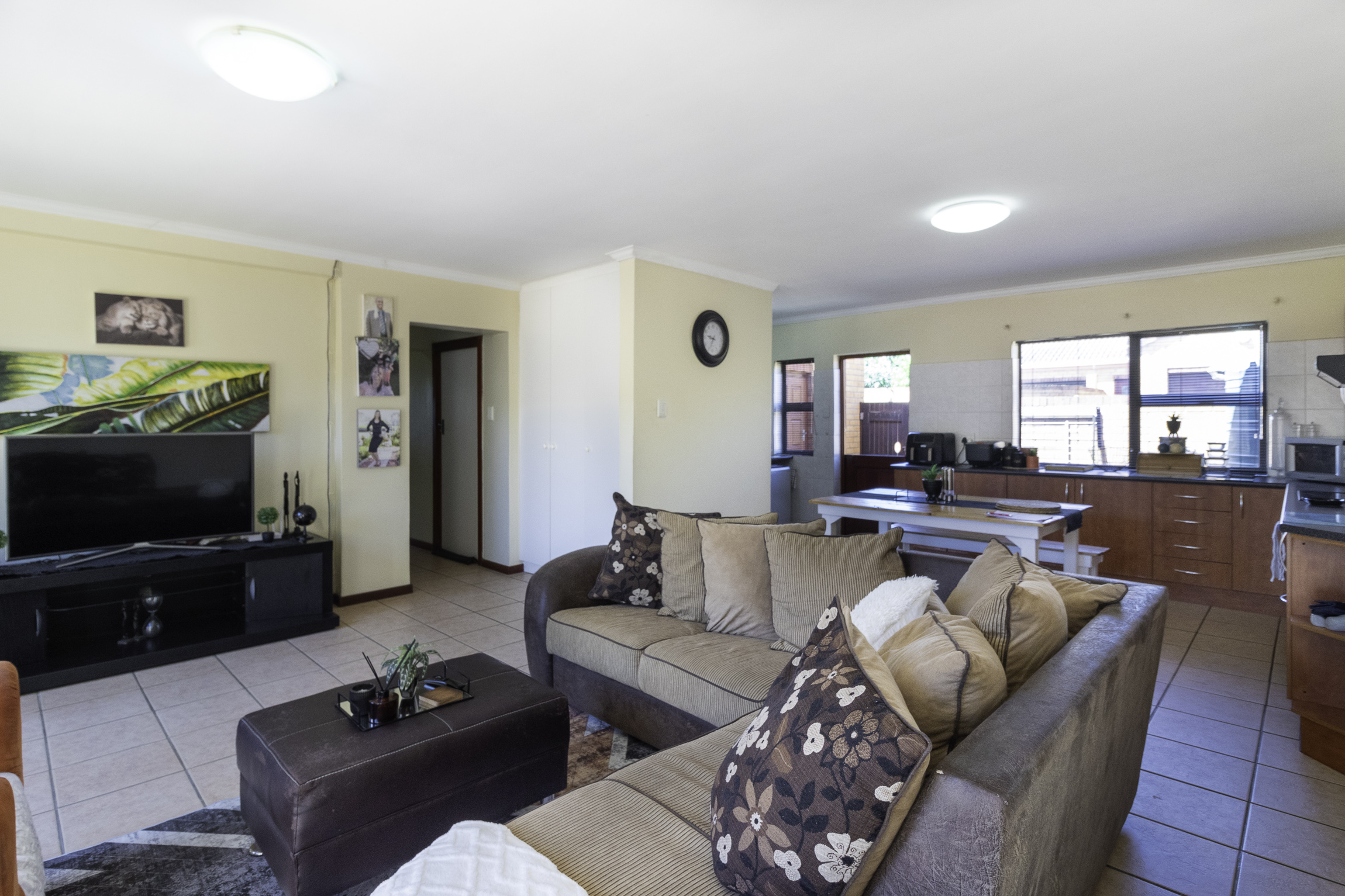 Step into a home designed for comfort and easy living in the popular Panorama View complex. With three generously proportioned bedrooms and inviting living spaces, this property is ideal for families or those who enjoy both privacy and convenience. The entrance leads into an open plan lounge and dining area that creates a welcoming atmosphere for family time or entertaining friends. A practical kitchen finished in melamin flows out to a private courtyard where a rainwater tank adds to the home’s functionality and sustainability. The main bedroom, complete with en-suite bathroom, is conveniently located downstairs alongside a guest toilet. There is direct access to the double garage with an automated door. Upstairs, two additional bedrooms and a full bathroom provide space for children, guests, or even a home office. Outside, a low maintenance garden offers room to relax in the sun or host casual braais without the upkeep of a large yard. The secure complex environment adds peace of mind, making it a great place to put down roots. If you’re looking for a property that combines comfort, practicality, and security, this townhouse is well worth viewing.