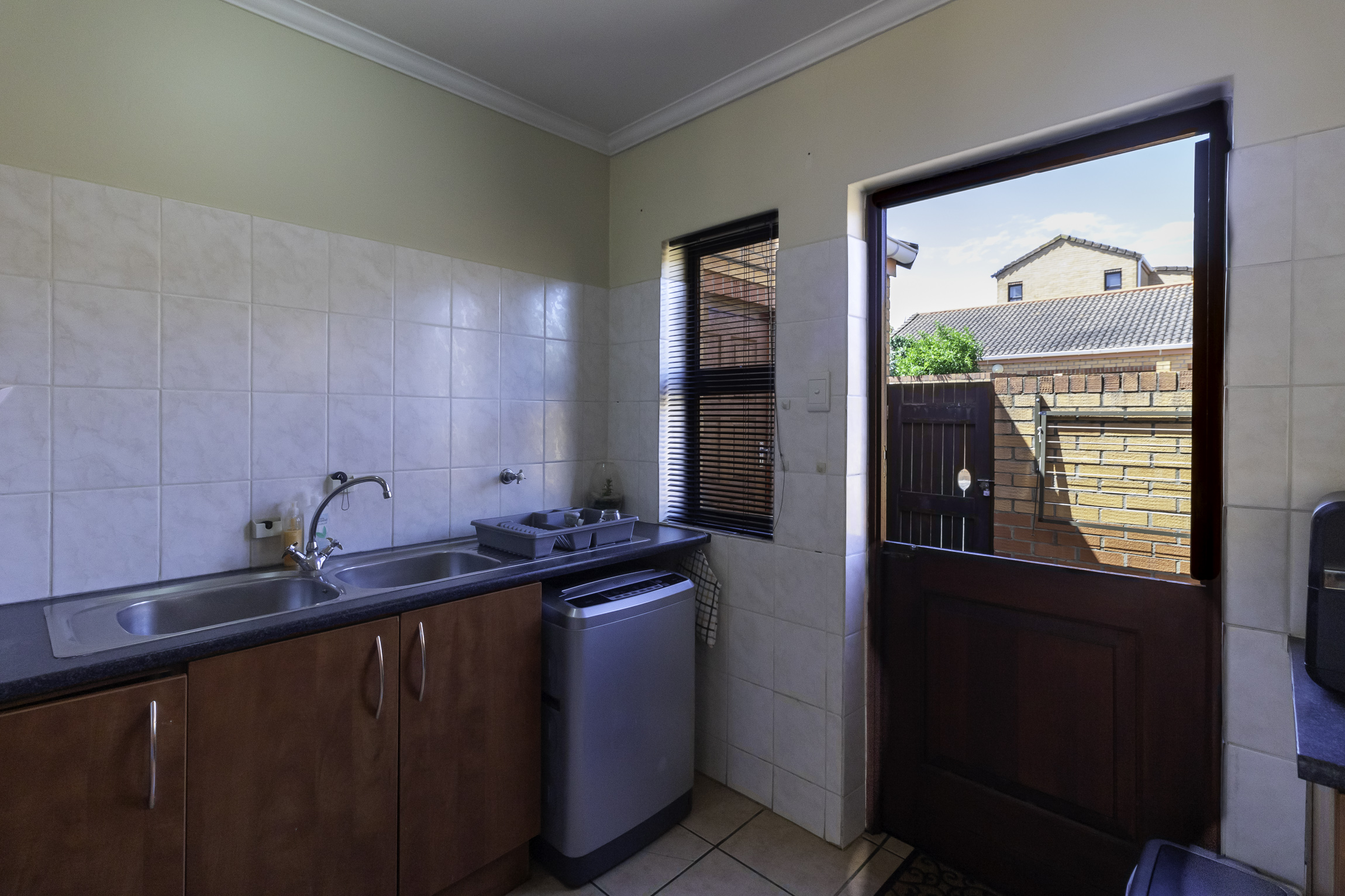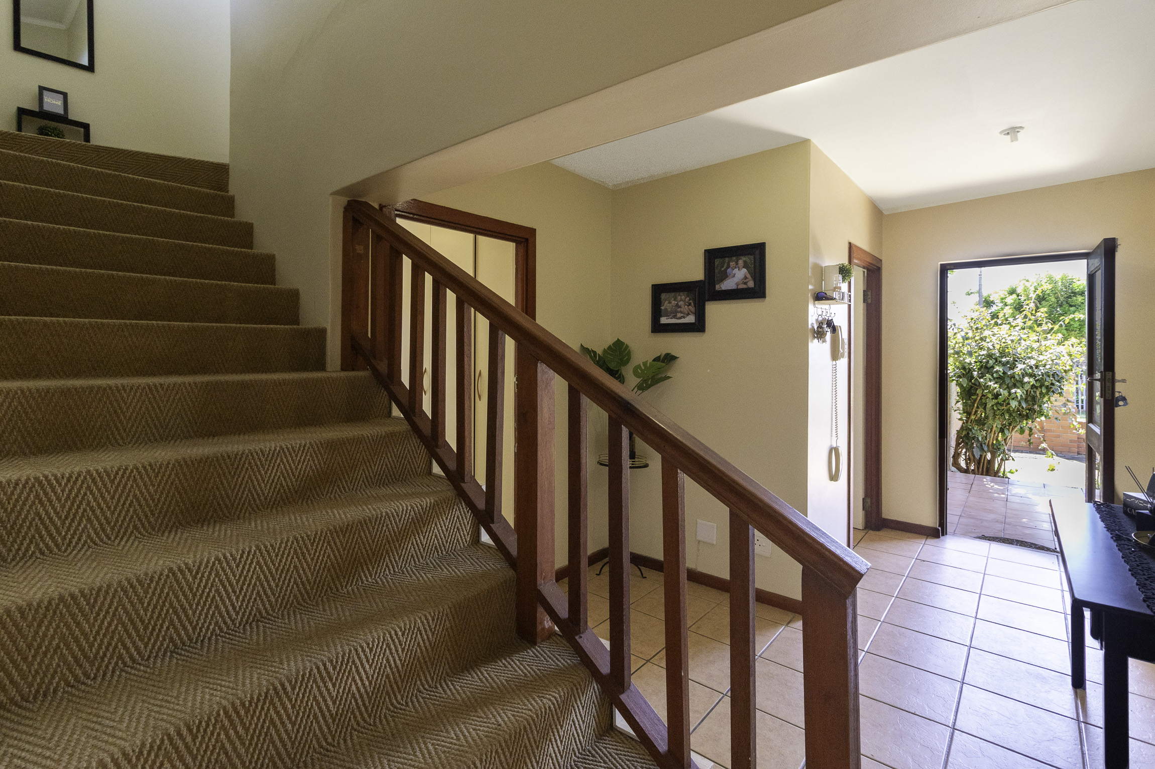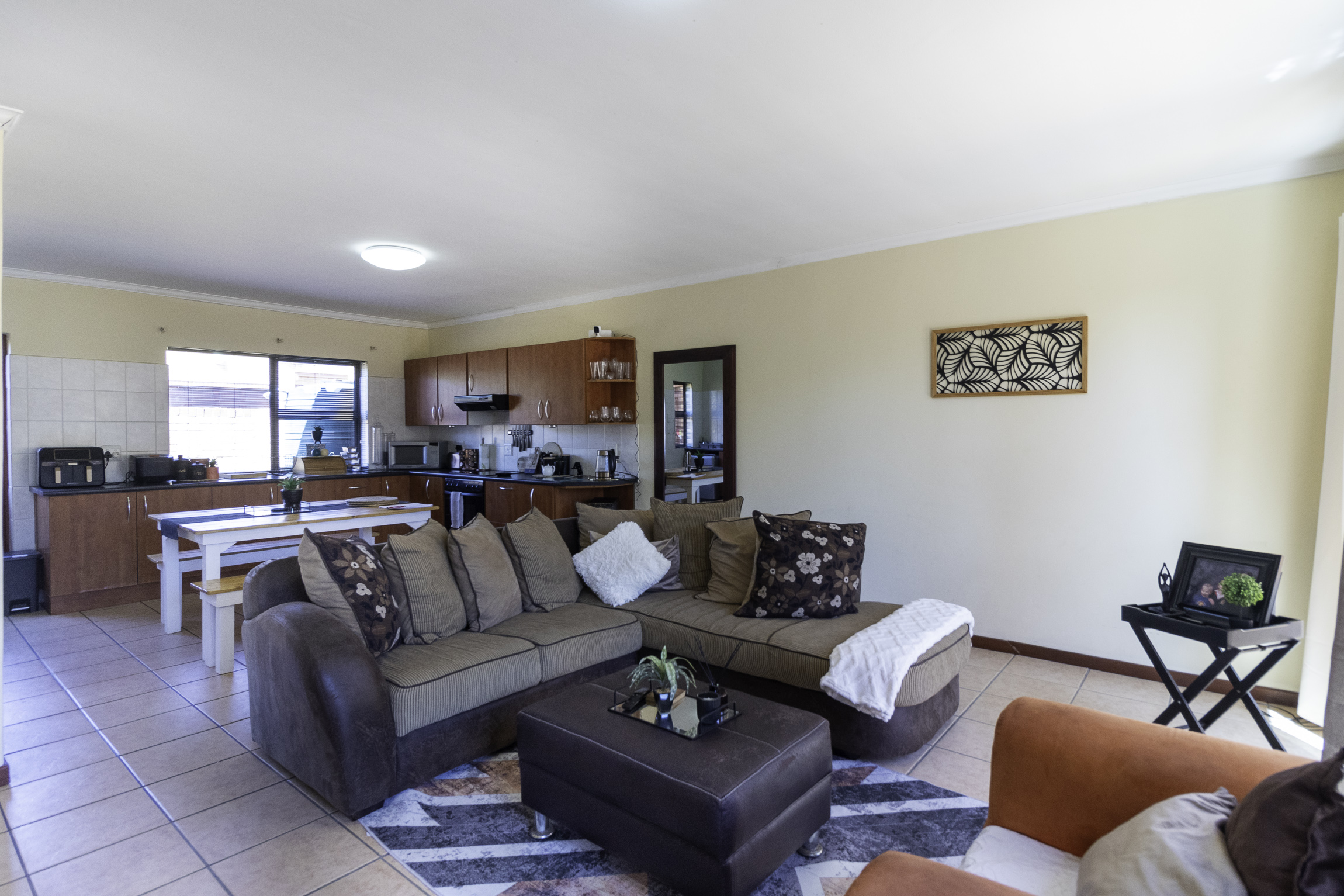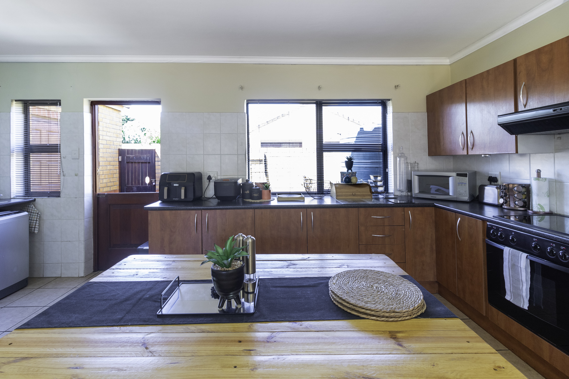 Step into a home designed for comfort and easy living in the popular Panorama View complex. With three generously proportioned bedrooms and inviting living spaces, this property is ideal for families or those who enjoy both privacy and convenience. The entrance leads into an open plan lounge and dining area that creates a welcoming atmosphere for family time or entertaining friends. A practical kitchen finished in melamin flows out to a private courtyard where a rainwater tank adds to the home’s functionality and sustainability. The main bedroom, complete with en-suite bathroom, is conveniently located downstairs alongside a guest toilet. There is direct access to the double garage with an automated door. Upstairs, two additional bedrooms and a full bathroom provide space for children, guests, or even a home office. Outside, a low maintenance garden offers room to relax in the sun or host casual braais without the upkeep of a large yard. The secure complex environment adds peace of mind, making it a great place to put down roots. If you’re looking for a property that combines comfort, practicality, and security, this townhouse is well worth viewing.