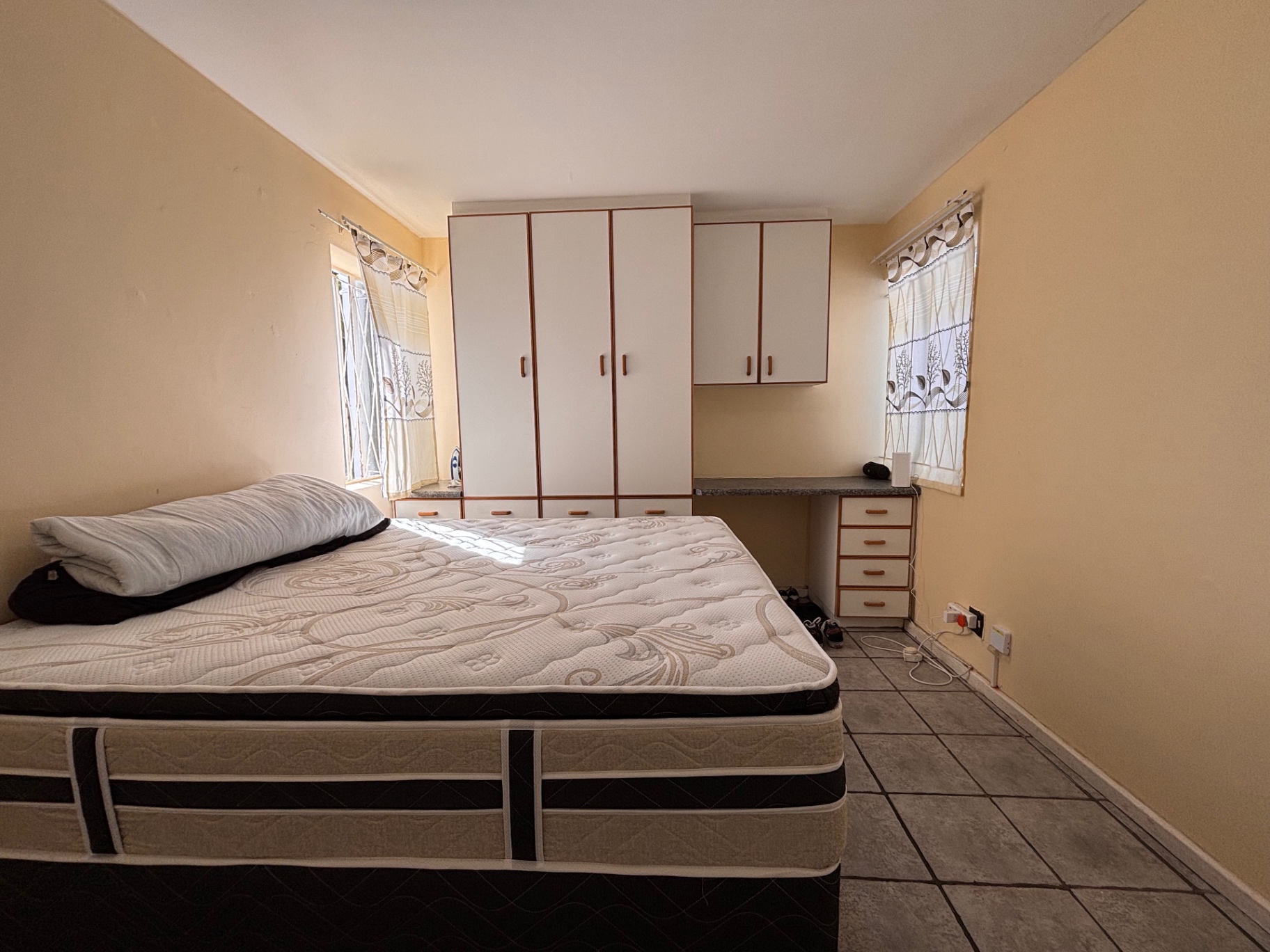 The bedroom is quite spacious, with a plethora of built-in cupboards, while the bathroom is neat, featuring a bath. The unit includes one designated parking bay within a gated complex, ensuring convenience and peace of mind.