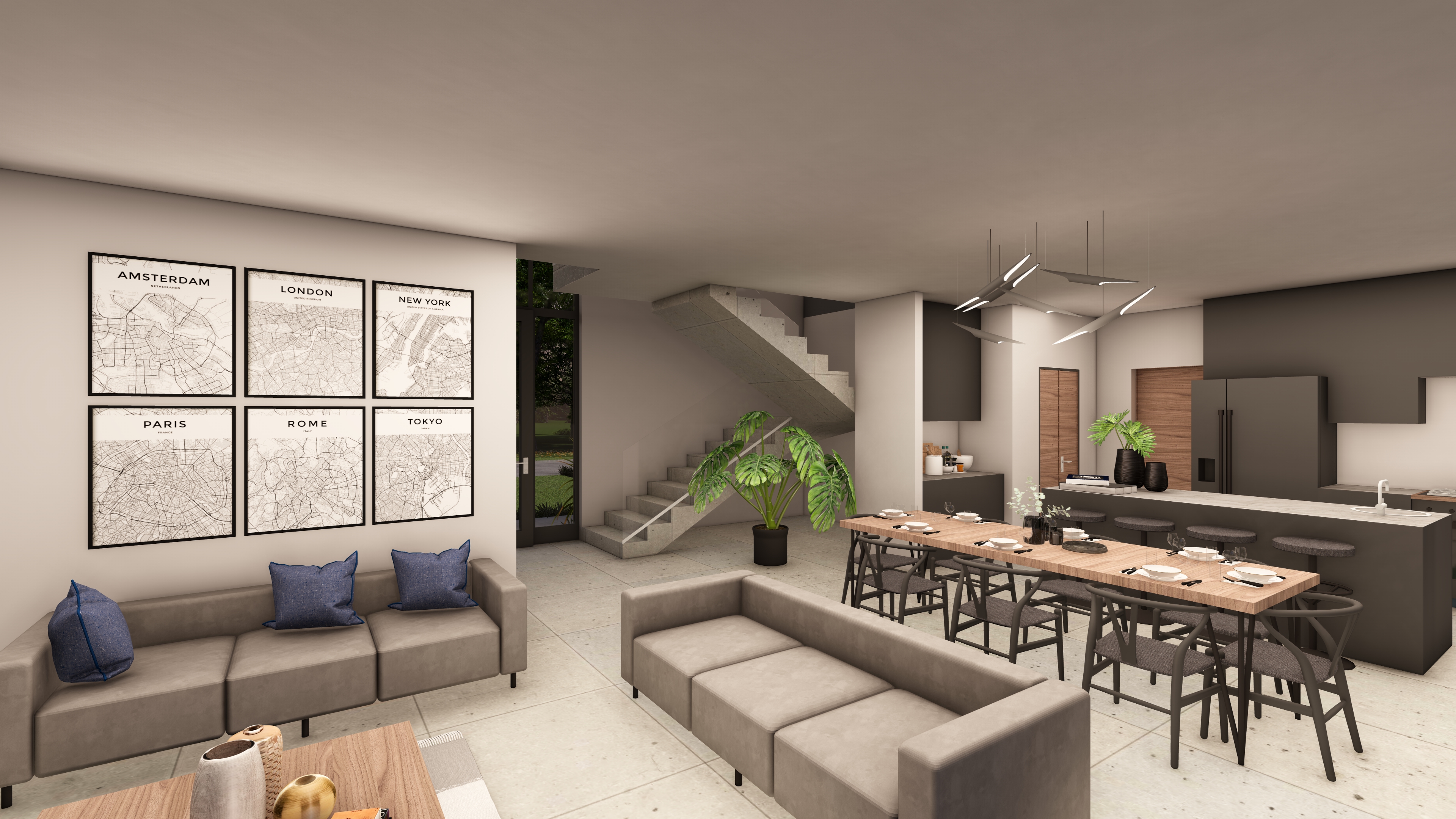 Upstairs, a cozy pajama lounge awaits, offering a serene retreat for unwinding. The spacious main bedroom features an en-suite bathroom, while two additional well-sized bedrooms share a stylishly appointed bathroom.