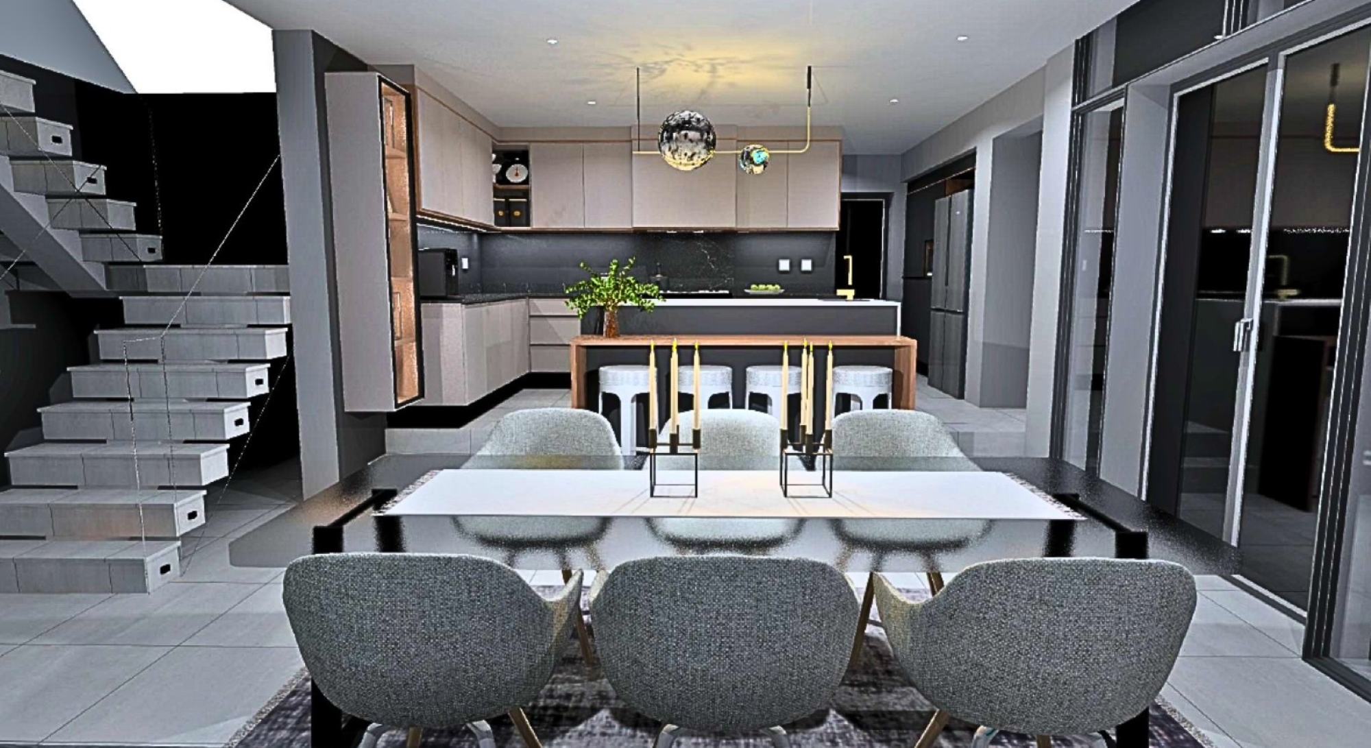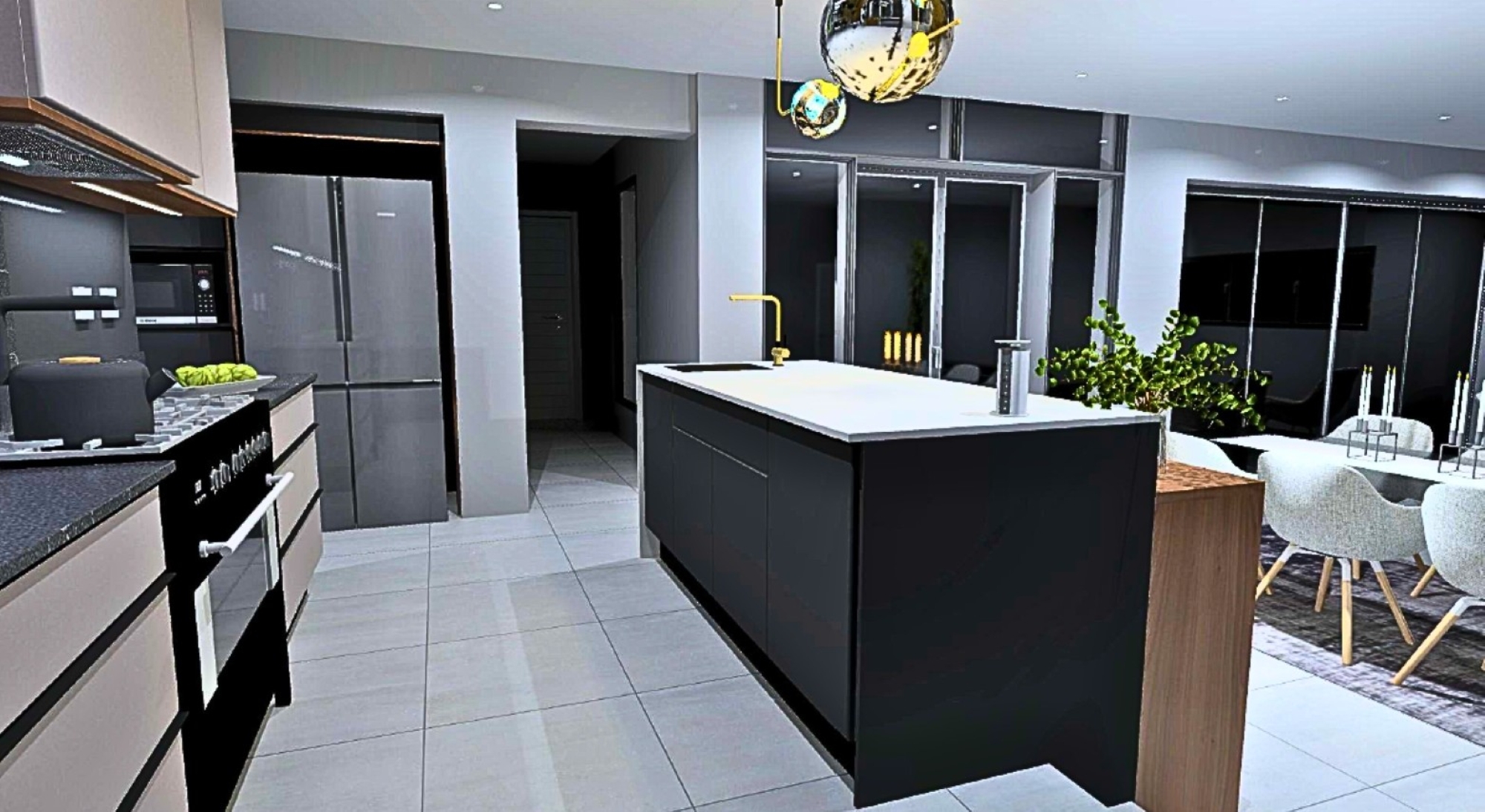 Welcome to this elegant, modern double-story home situated in the desirable Fountainbrook Estate. Upon entering through the double doors, you’re greeted by a spacious open-plan living room, dining room, and kitchen. The kitchen is well-appointed with a separate scullery for added convenience and functionality.