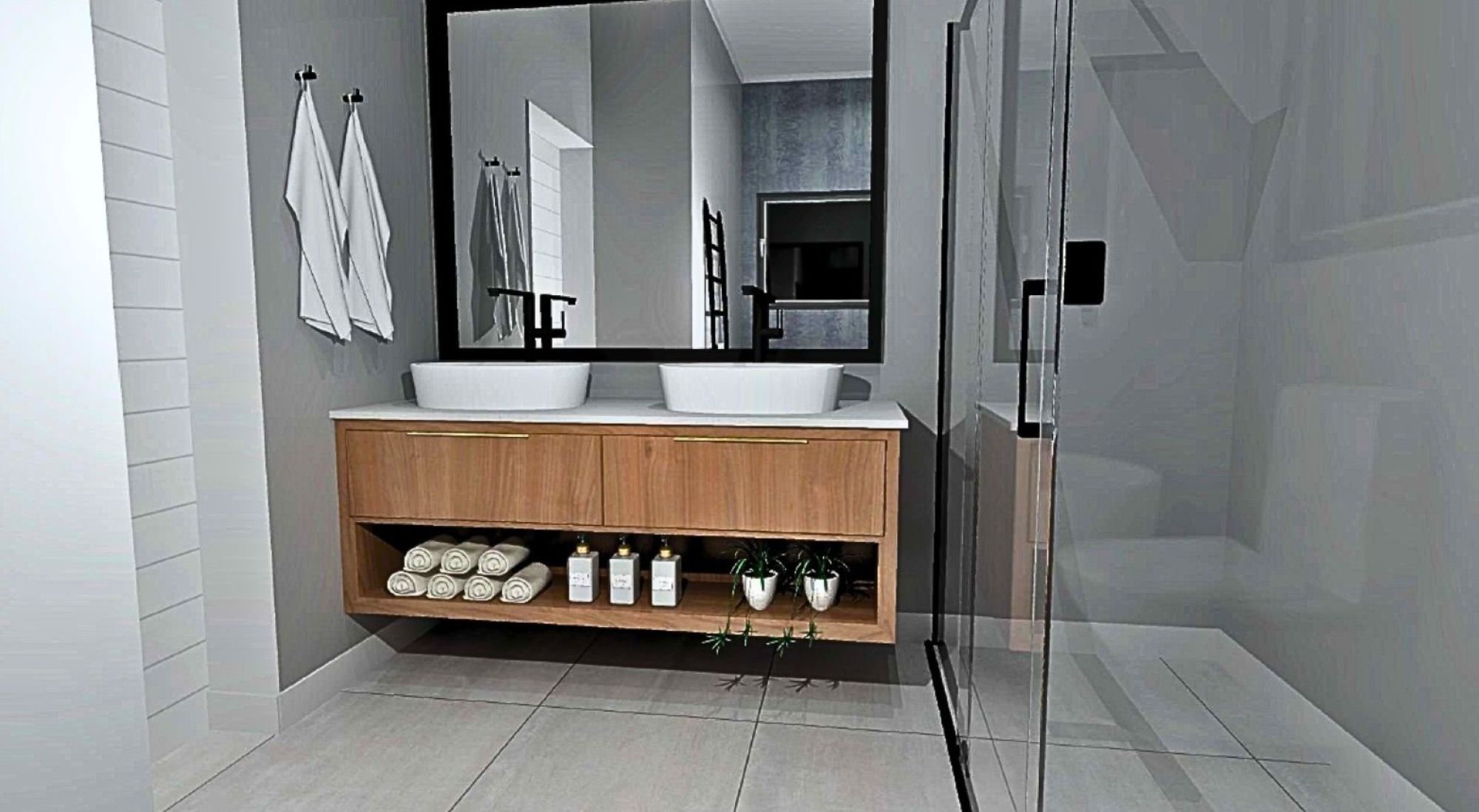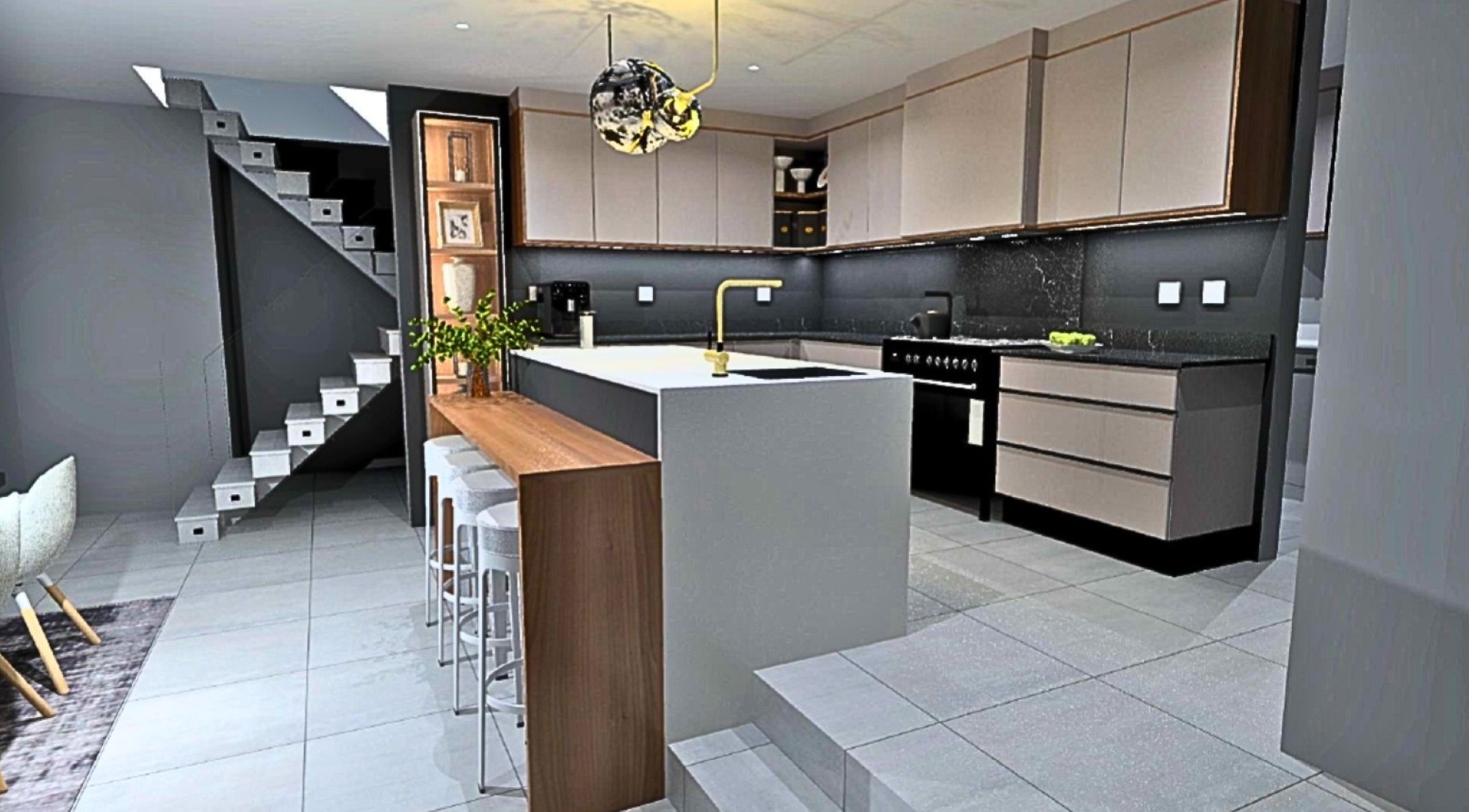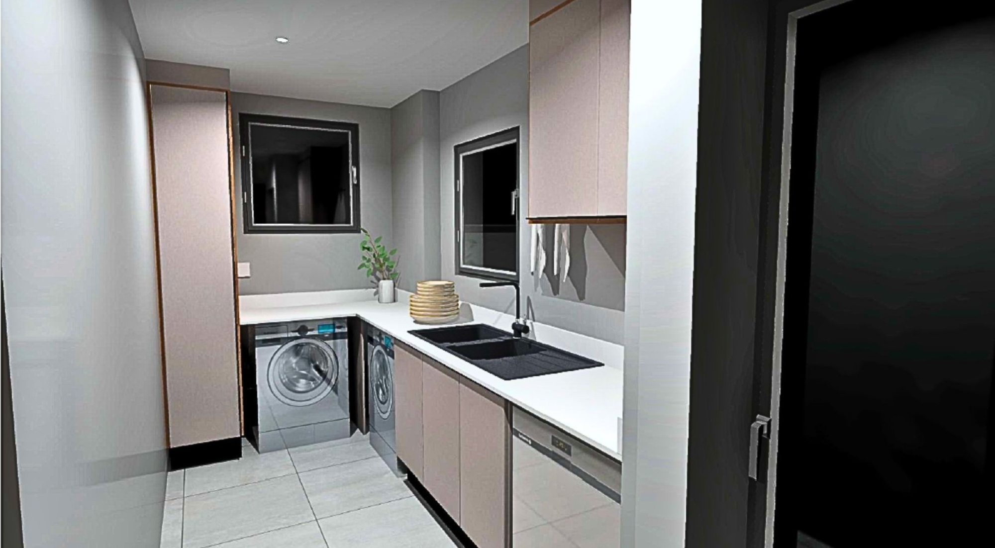 To the right of the living and dining areas, you’ll find a comfortable guest bedroom and a separate bathroom, offering privacy and comfort. On the left of the kitchen, a versatile staff room with a full en-suite bathroom is perfect for use as a study or as additional living space. At the end of the hallway, you can directly access the double garage.