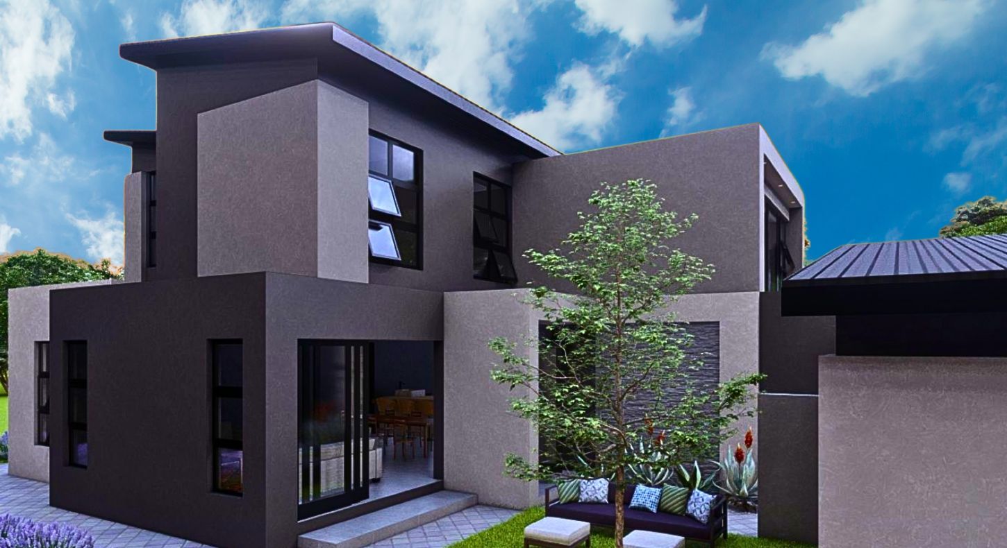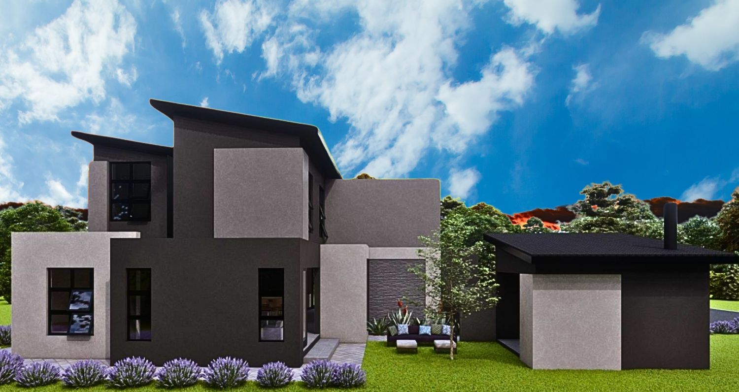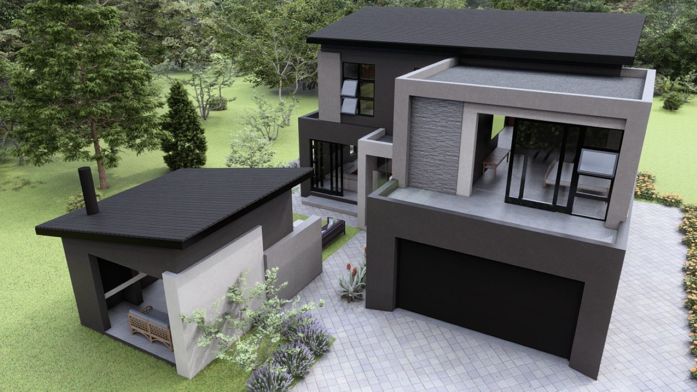 Upon entering, you are welcomed through a covered porch into a bright, open-plan layout featuring a large, modern kitchen, dining room, and lounge. The kitchen is a chef’s dream, offering ample space, contemporary finishes, and a separate scullery that leads to a convenient kitchen yard. The scullery also provides direct access to the double garage, enhancing the home's practicality. To the right of the kitchen, you'll find stairs leading to the first floor, while across from the stairs is a comfortable guest bedroom and a separate full guest bathroom.