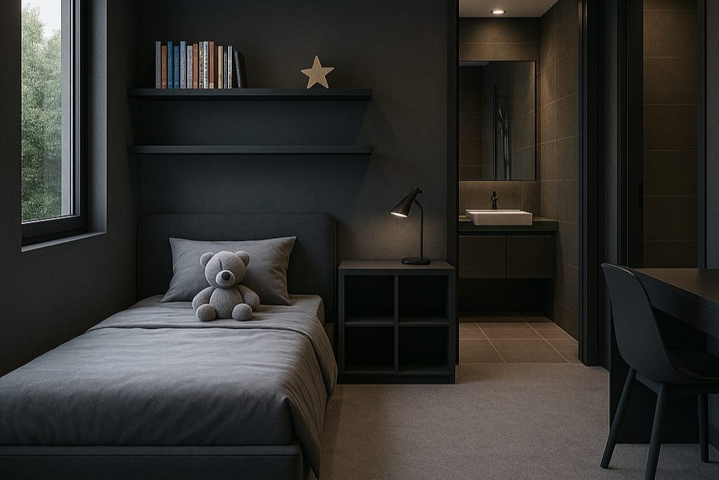 Upstairs, a spacious pajama lounge serves as a cozy family retreat, leading to four bedrooms, three bathrooms, and a private study or home office. The main bedroom features a private balcony, walk-in closet, and a luxurious en-suite bathroom, while one additional bedroom also offers an en-suite. The remaining bedrooms share a well-appointed family bathroom.