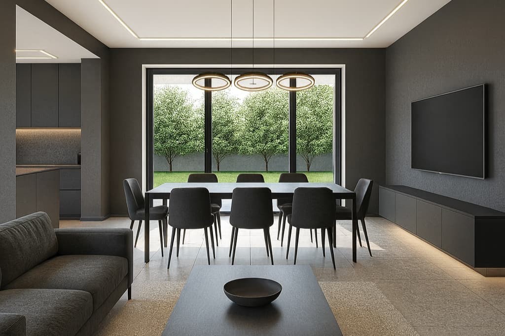 Step inside your dream home, where open-plan living creates a seamless flow between the kitchen, dining area, and lounge. The modern kitchen features a spacious center island with seating and a prep bowl, complemented by a separate scullery with direct access to the double garage. Large windows fill the home with natural light, enhancing the sense of space and connection to the outdoors.