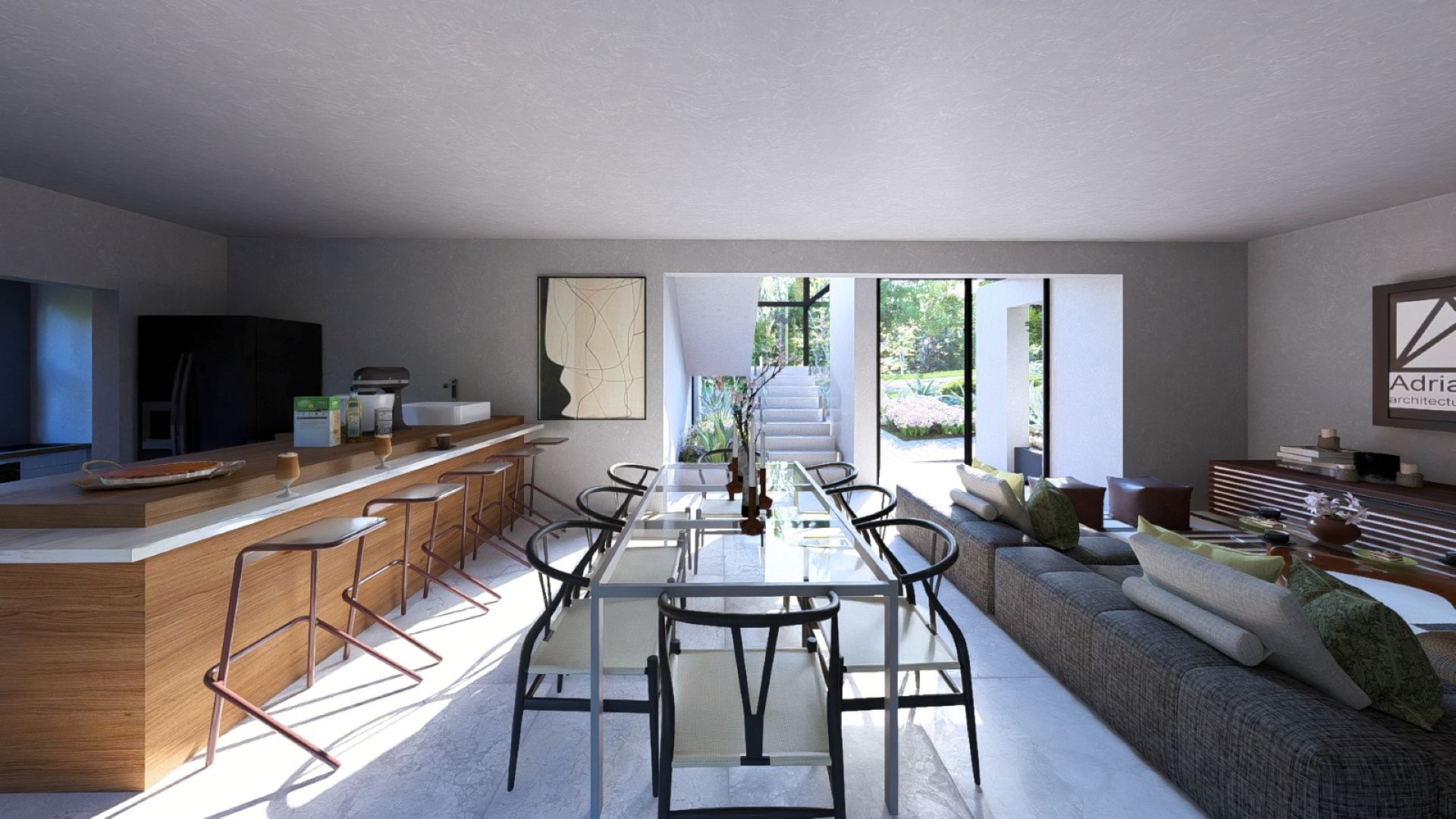 On the ground floor, you’ll also find a guest bedroom with a sliding glass door leading to the garden, along with a separate guest bathroom.