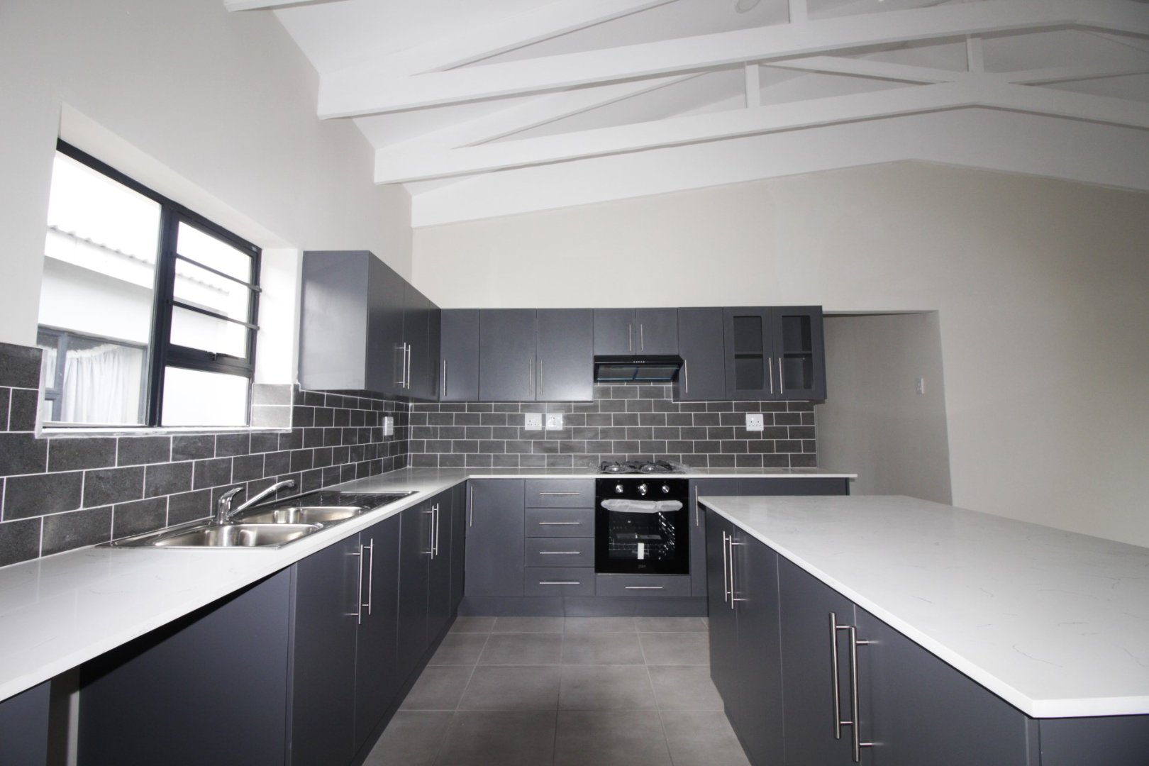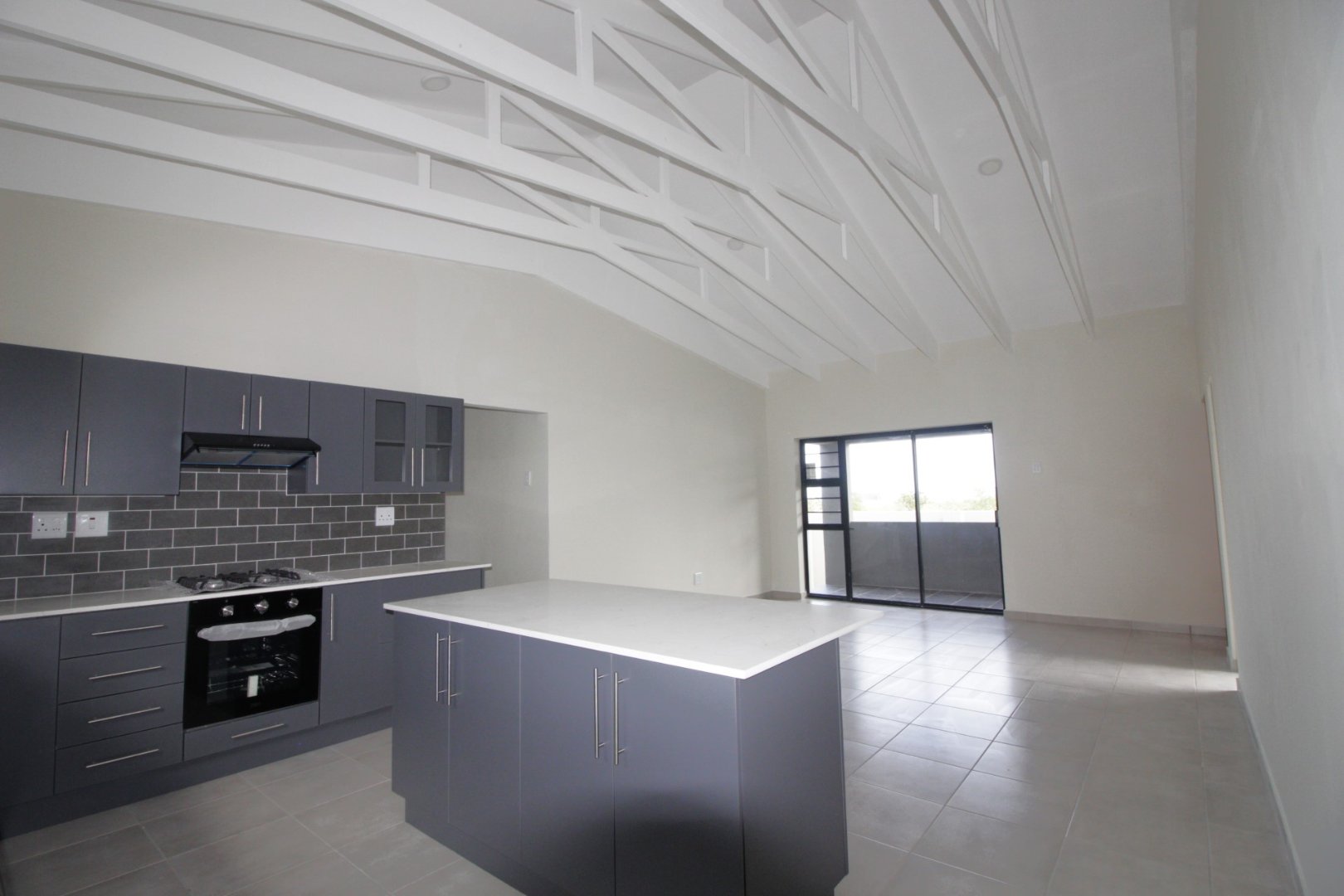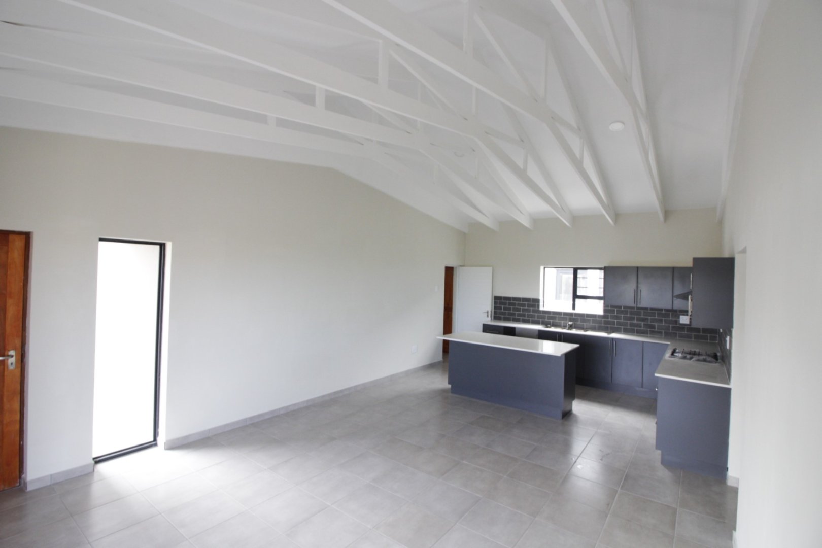 Open trusses in the kitchen and lounge, creating a light and spacious feel