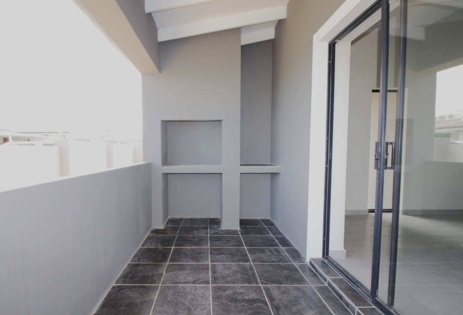 A lounge with sliding doors leading out to a semi-enclosed braai area – perfect for year-round entertaining