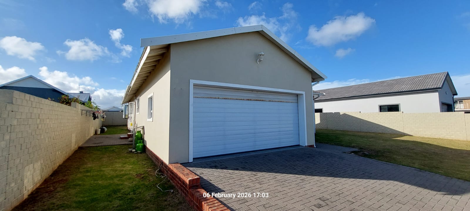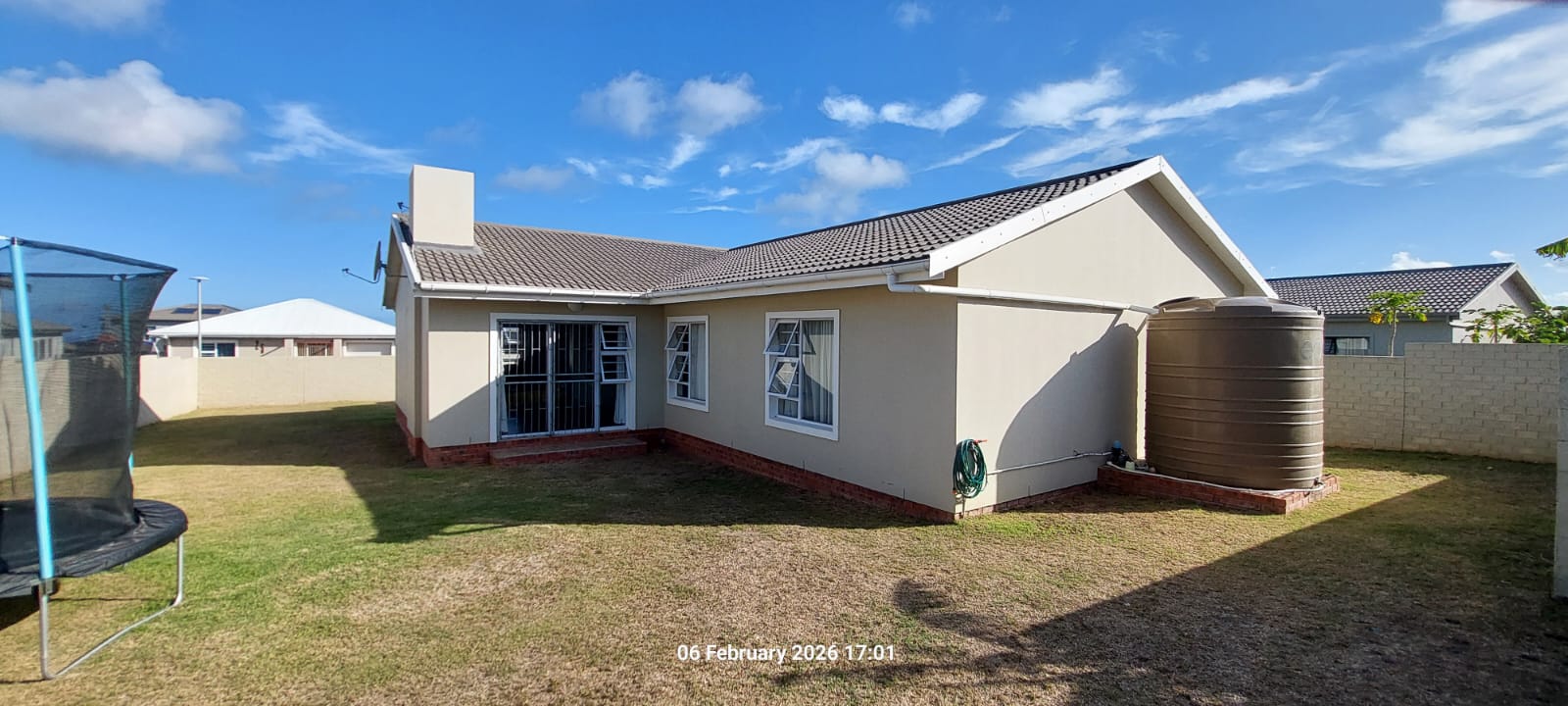 The home features a durable tile roof and neat plastered walls, complemented by a paved driveway, electric gate, and double automated garage, ensuring both convenience and peace of mind. Energy efficiency is a standout feature, with a gas geyser, electric geyser, and prepaid electricity, helping to keep running costs under control. A rain-fed JoJo tank with pump adds further practicality.